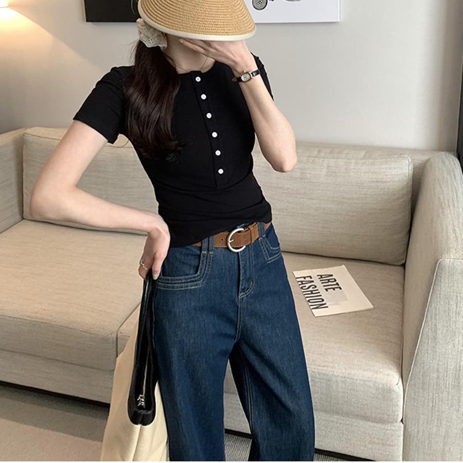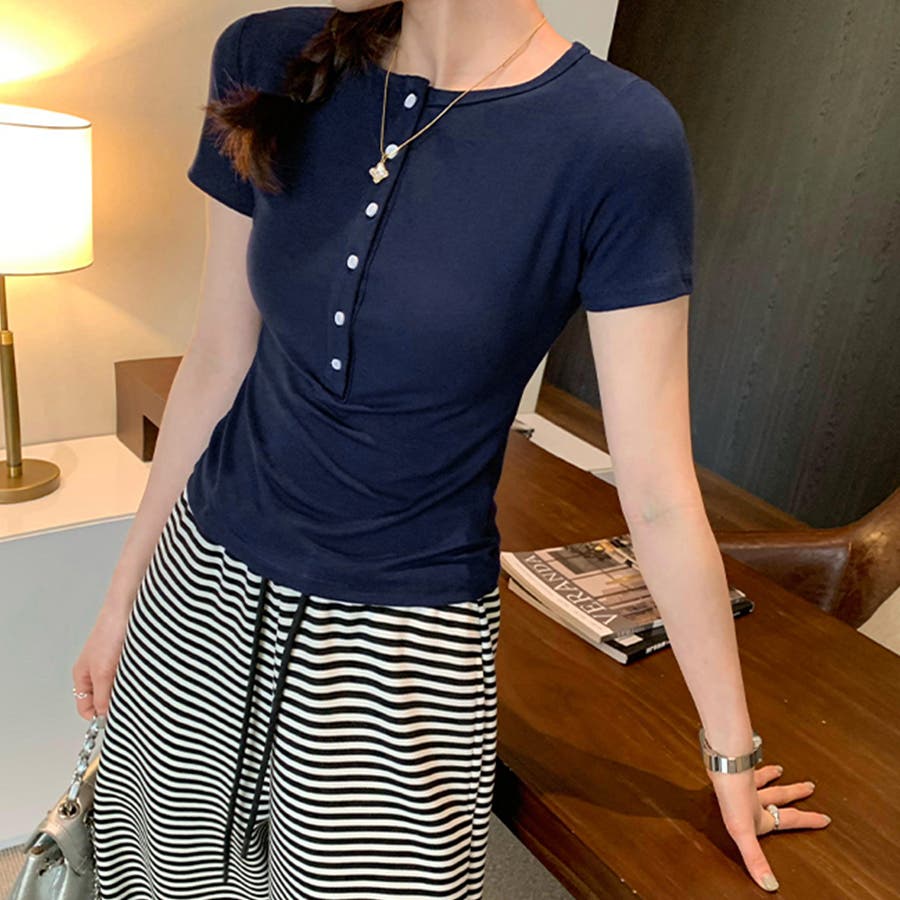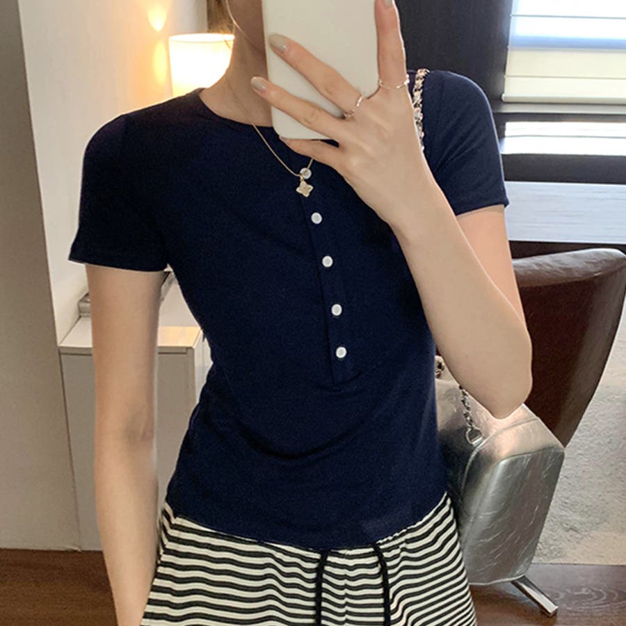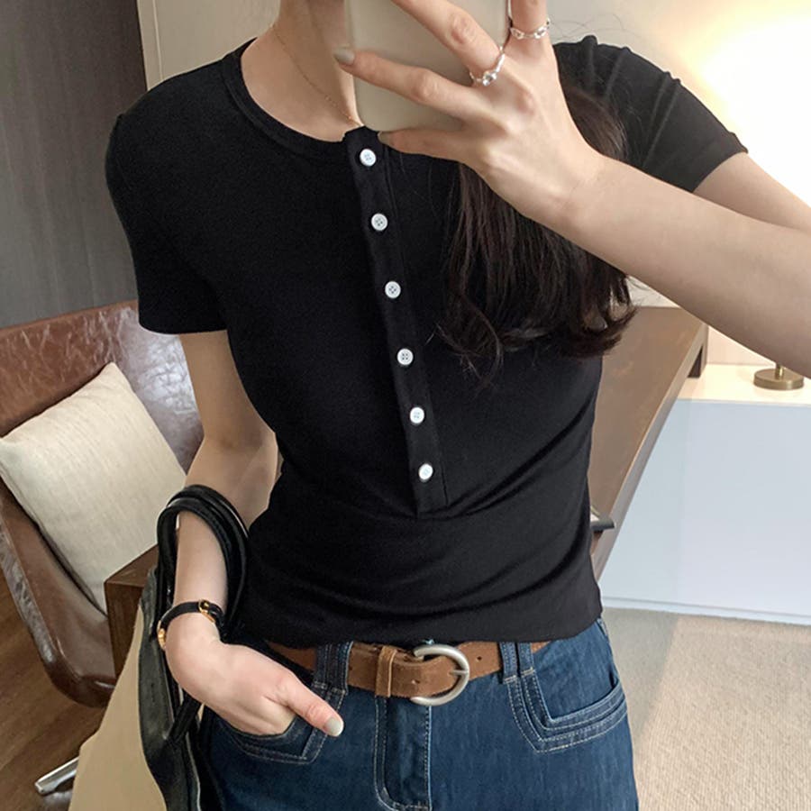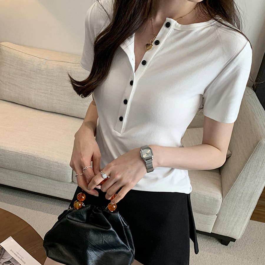 ハーフボタンヘンリーネックトップス