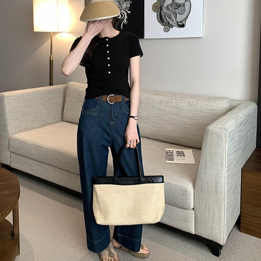 カジュアルなボトムスとも相性抜群ですが、大人綺麗め系のスカートやパンツなどのボトムスと合わせて綺麗めにまとめるのも◎。