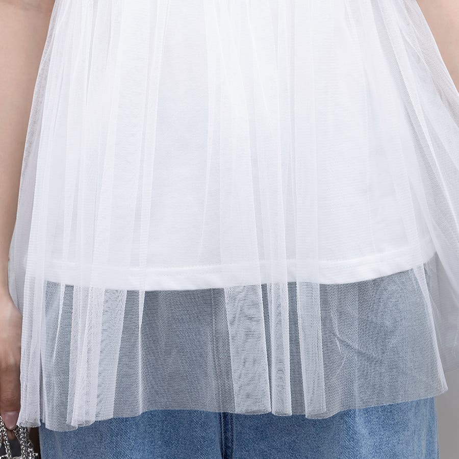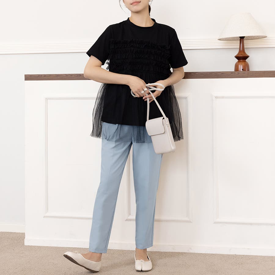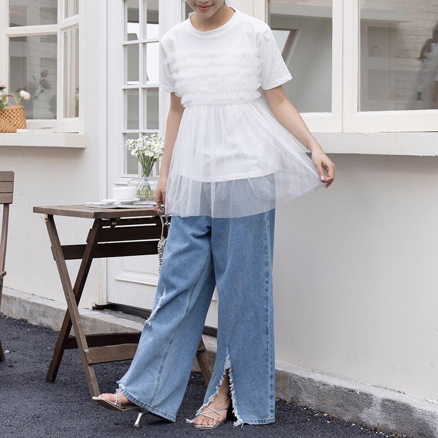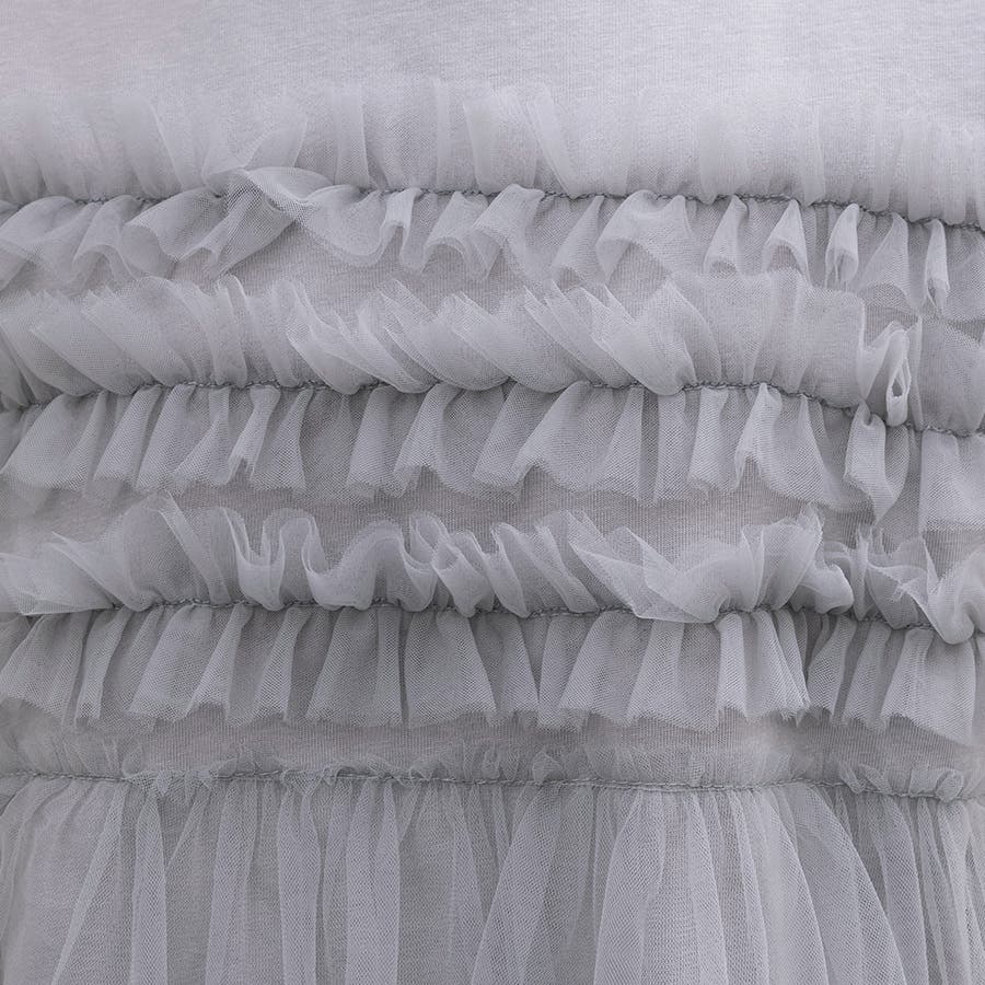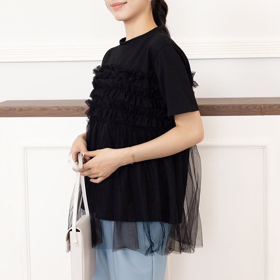 チュールドッキングがチャームポイントのガーリーなドッキング半袖Tシャツ新登場♪