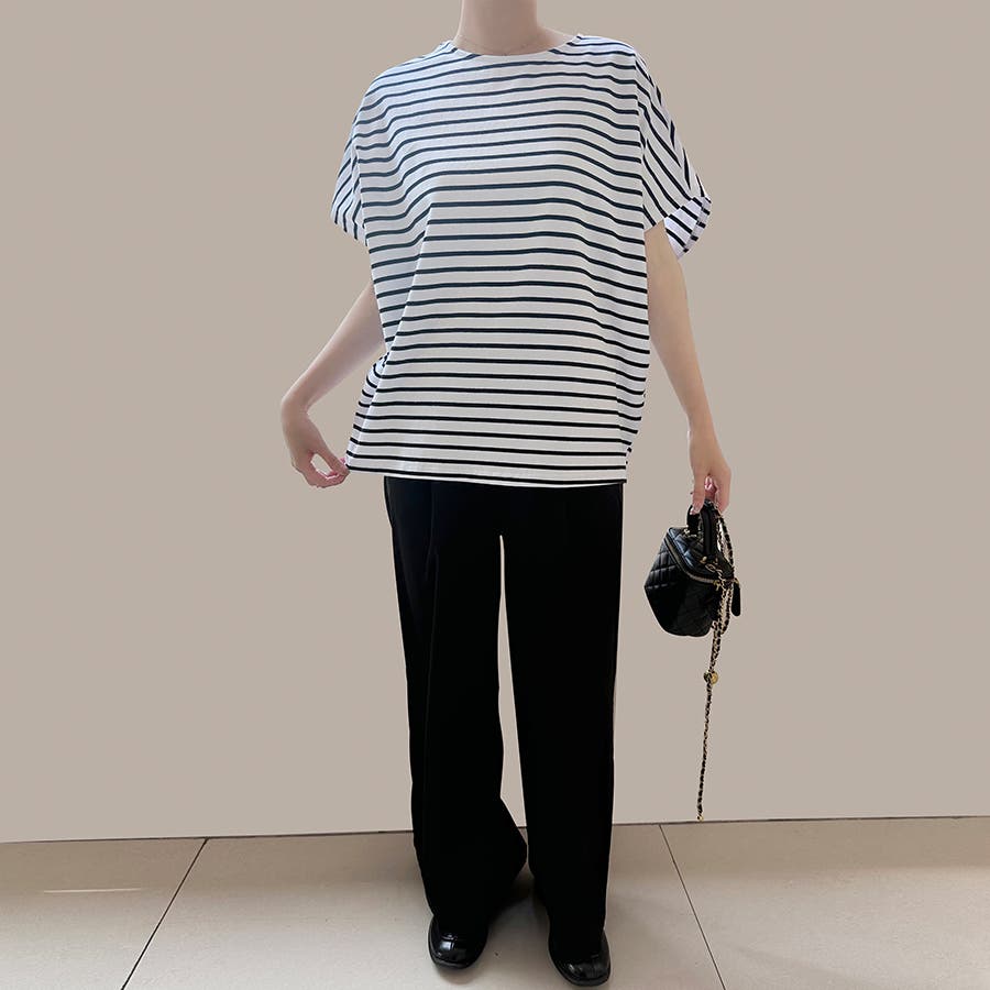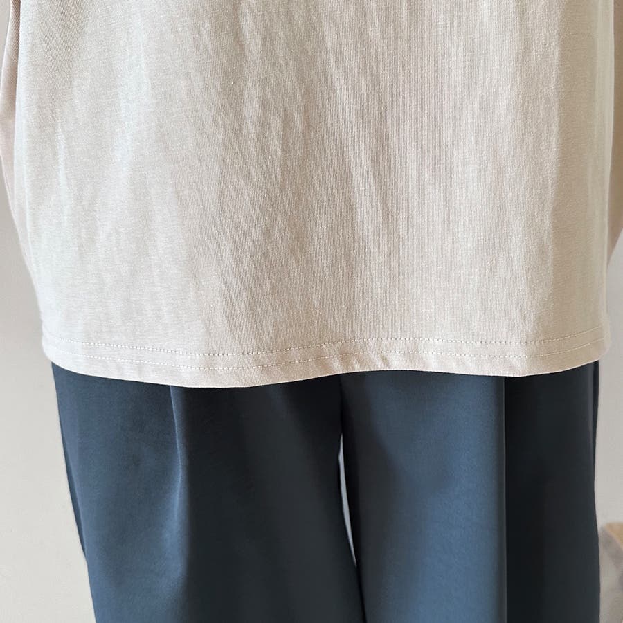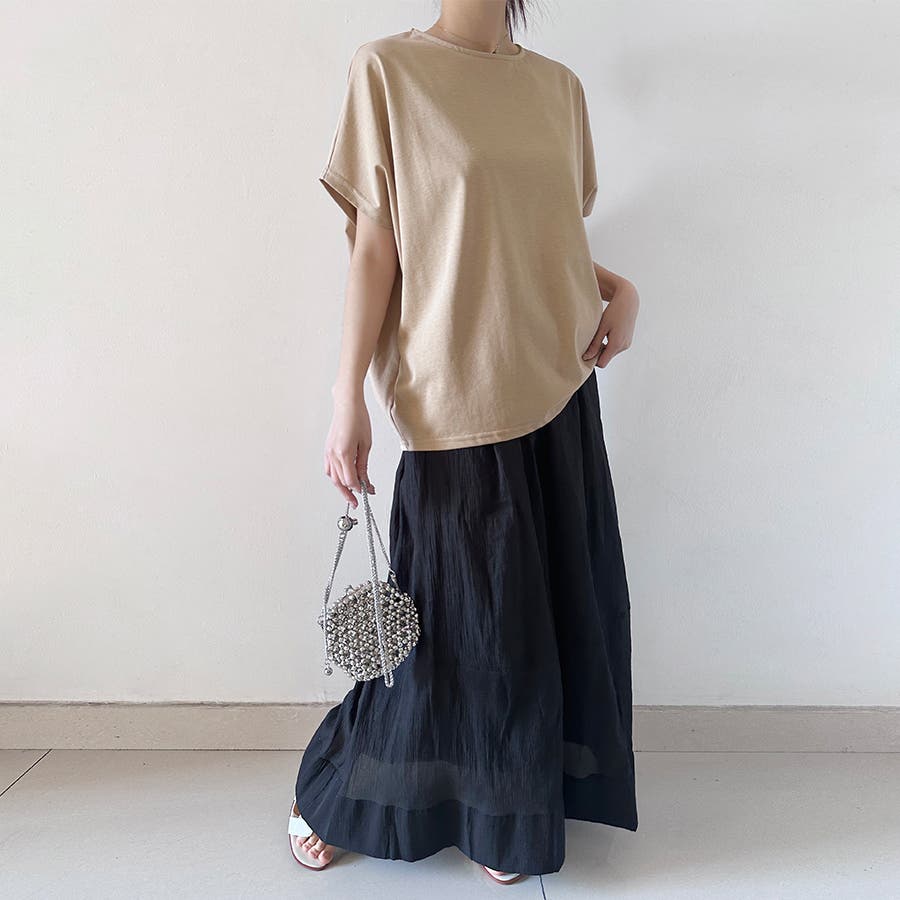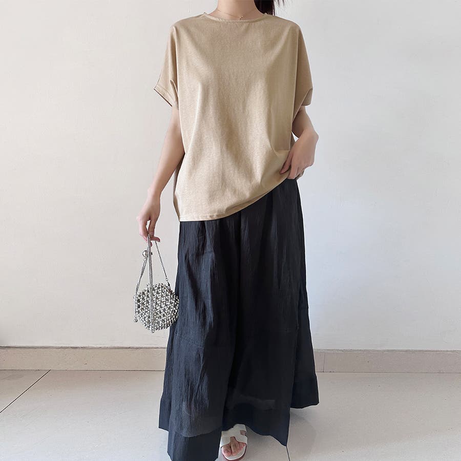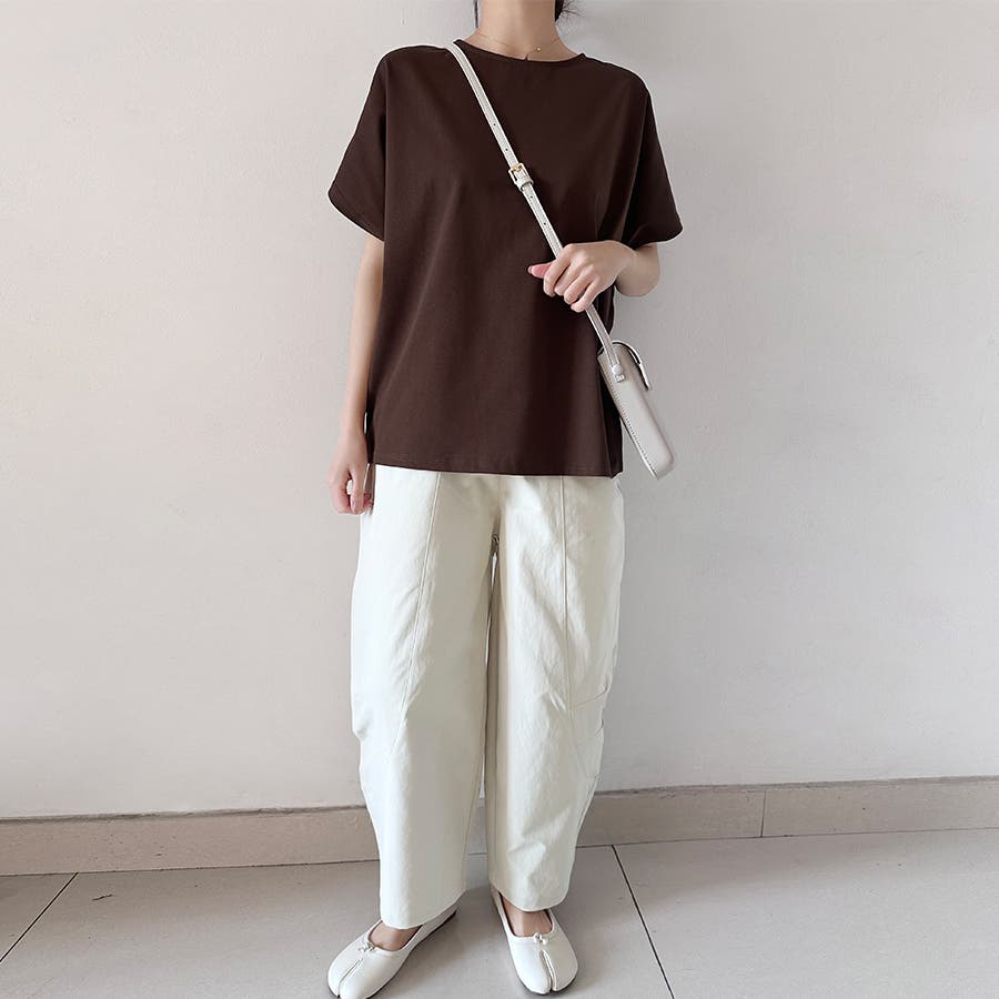 シンプルデザインのため幅広いボトムスと相性抜群。