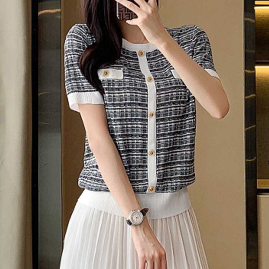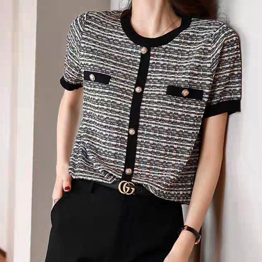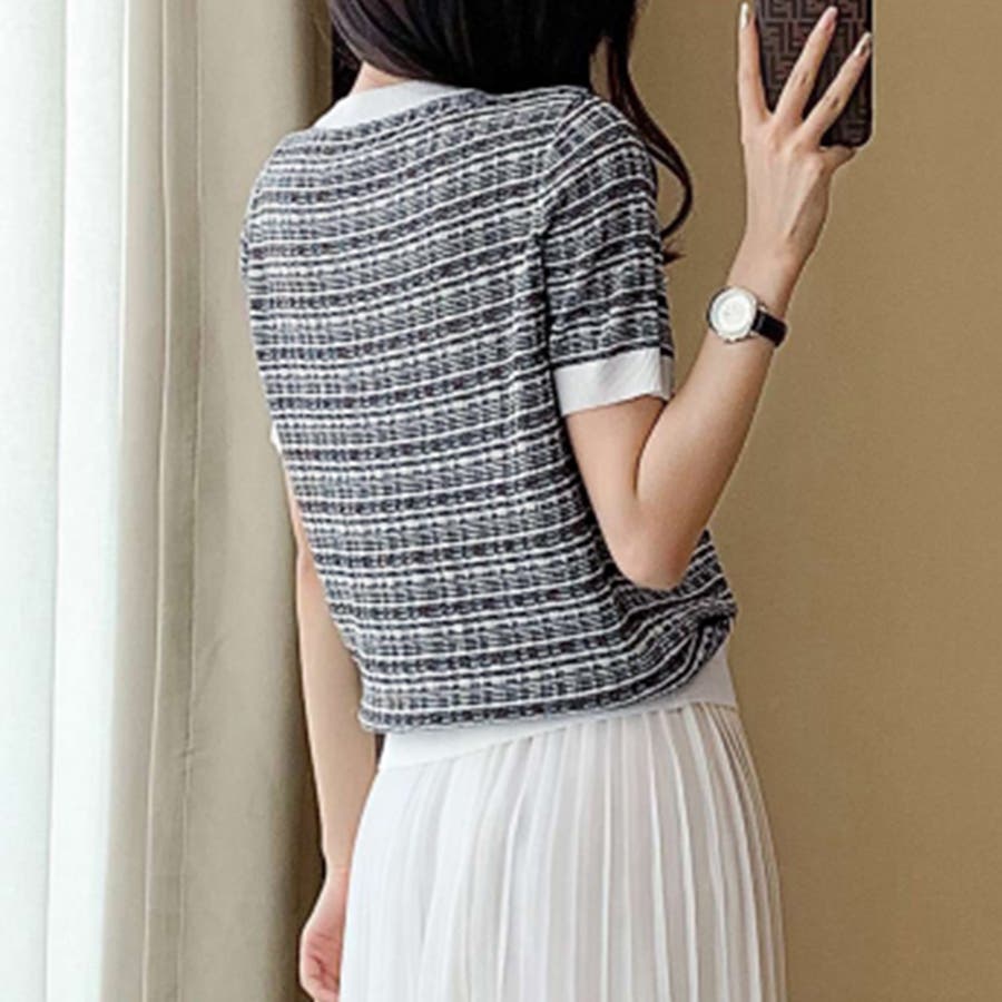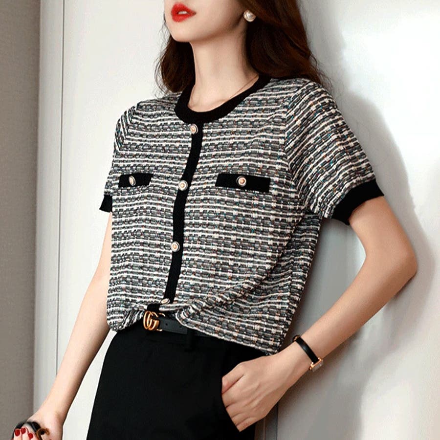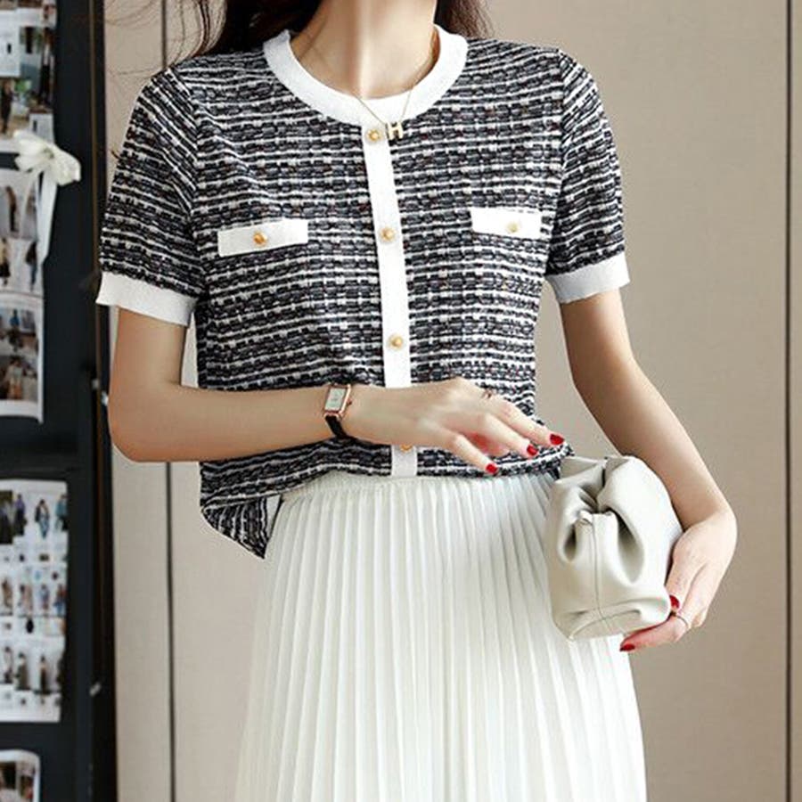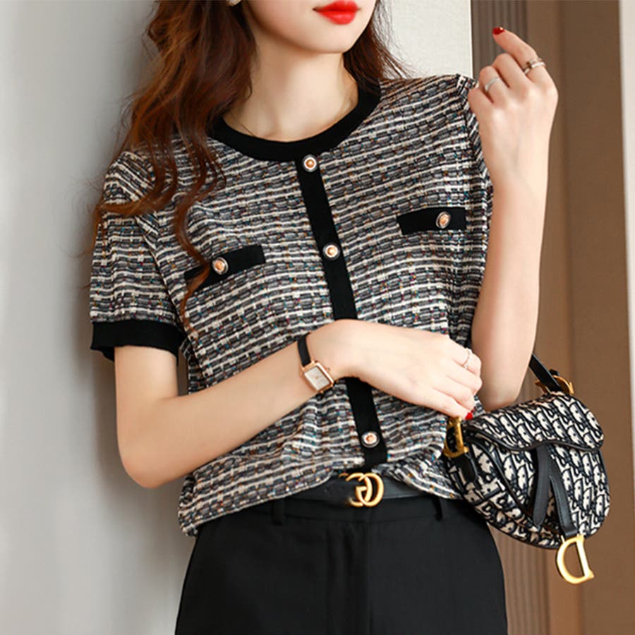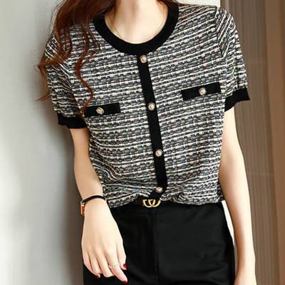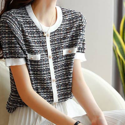 ペ女性らしさを演出するツイード風デザインがチャームポイントの春夏のおすすめエレガントブラウスが新登場♪