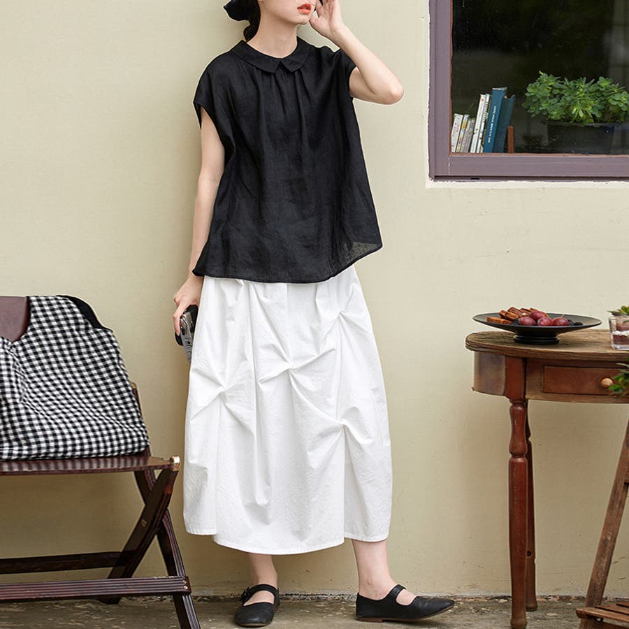 ボトムスはシンプルなもの、柄ものどちらでも相性抜群で着回し力◎。