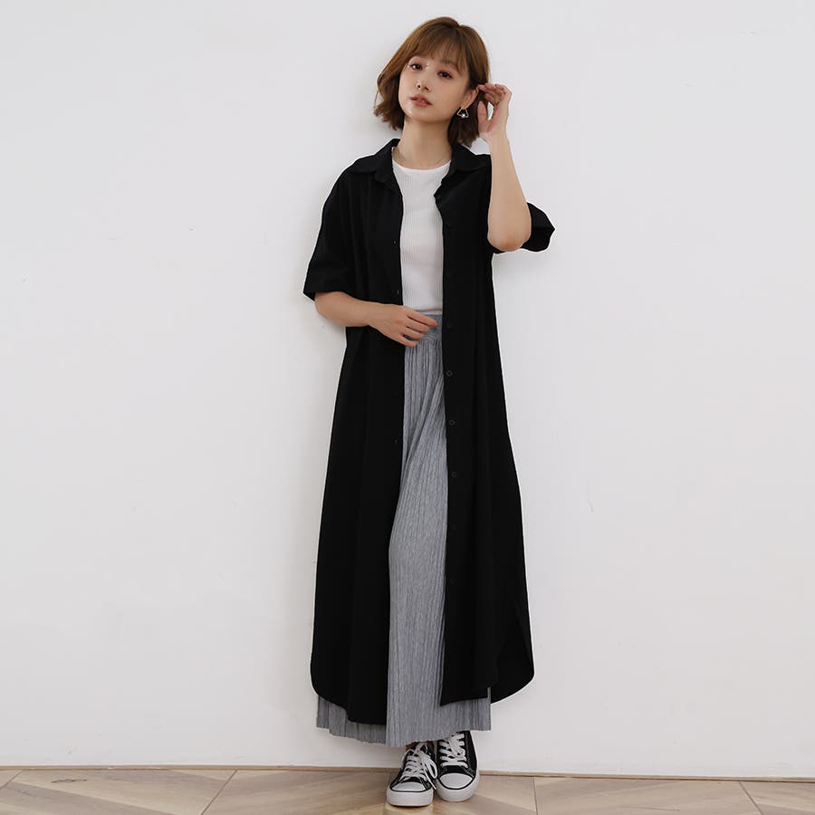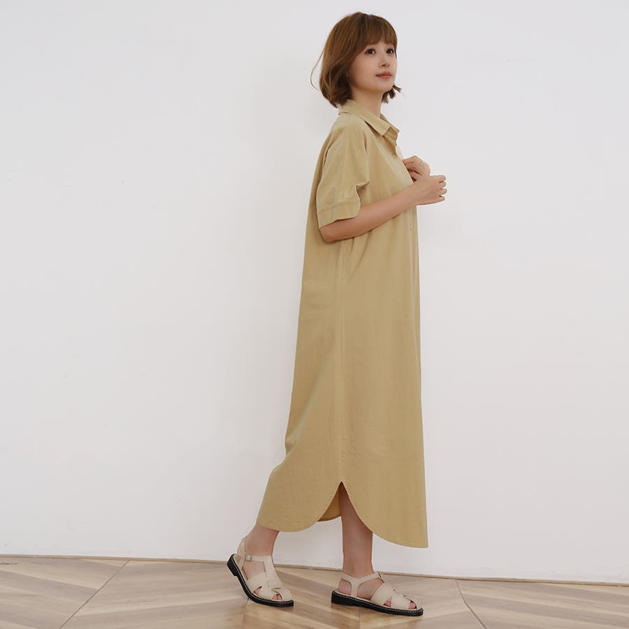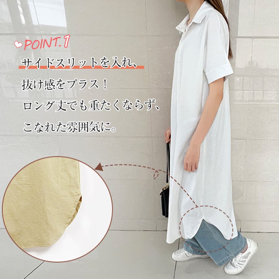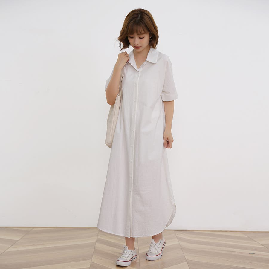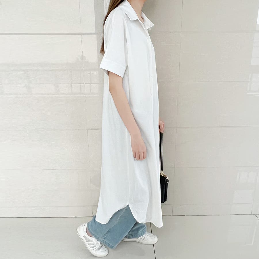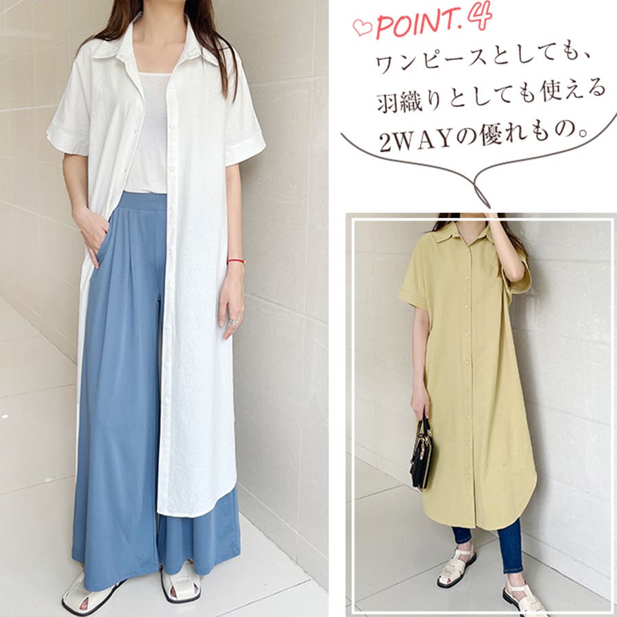 一枚でシャツワンピースとしてはもちろん、フロントボタンを開けてロングシャツとして羽織っても可愛い。