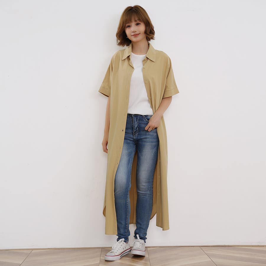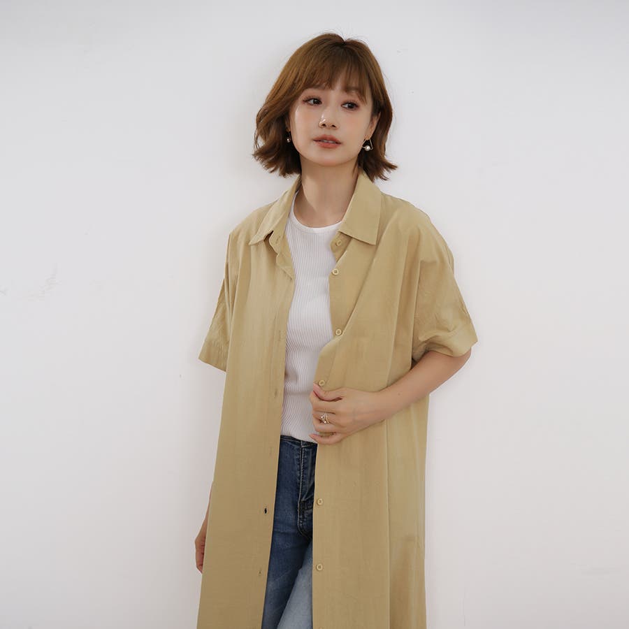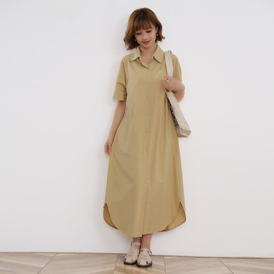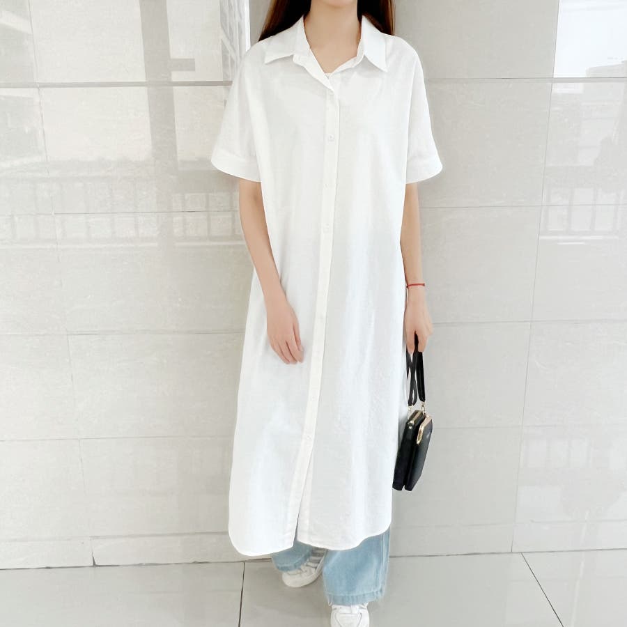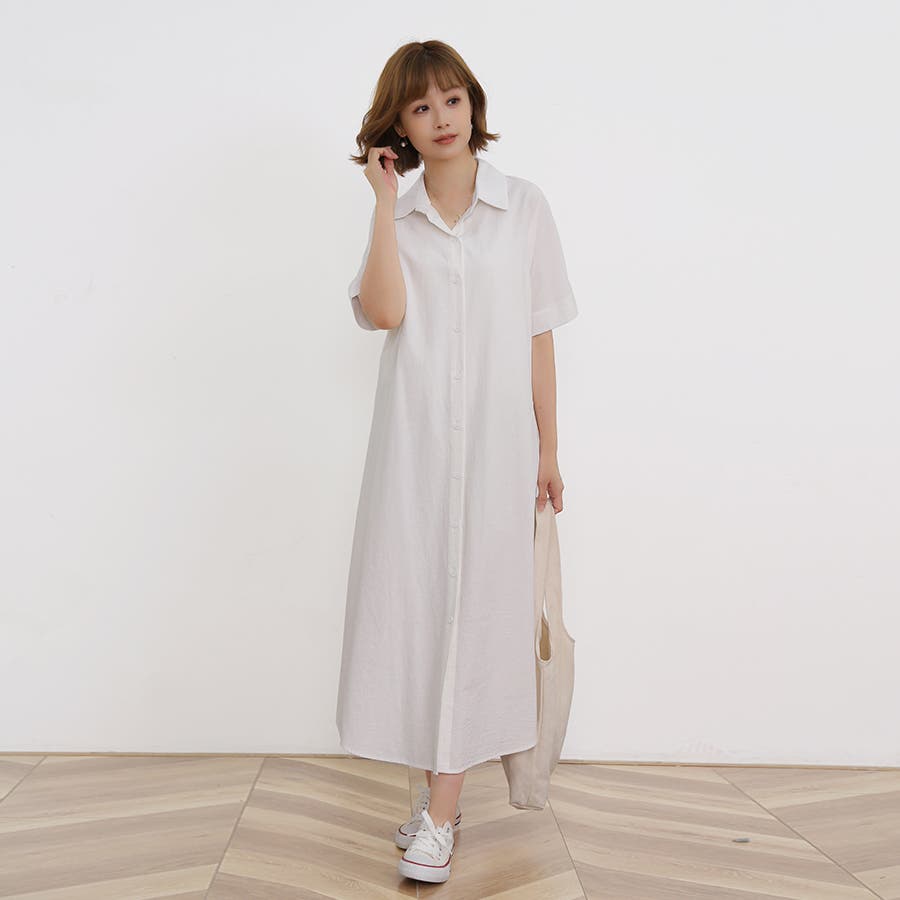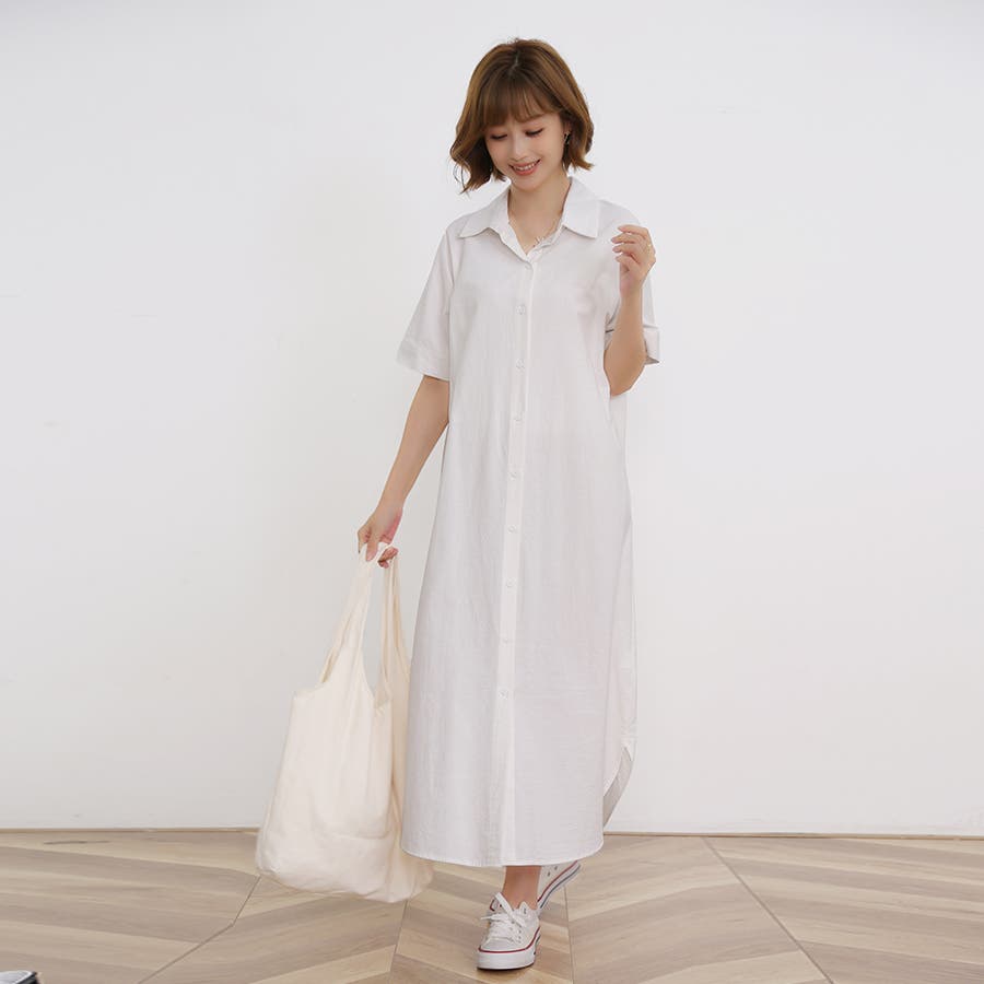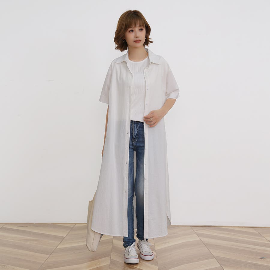 一枚でシャツワンピースとしてはもちろん、フロントボタンを開けてロングシャツとして羽織っても可愛い。