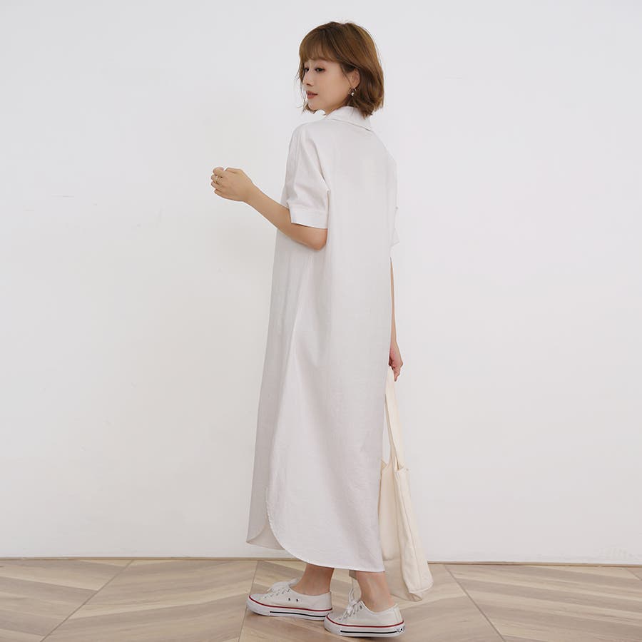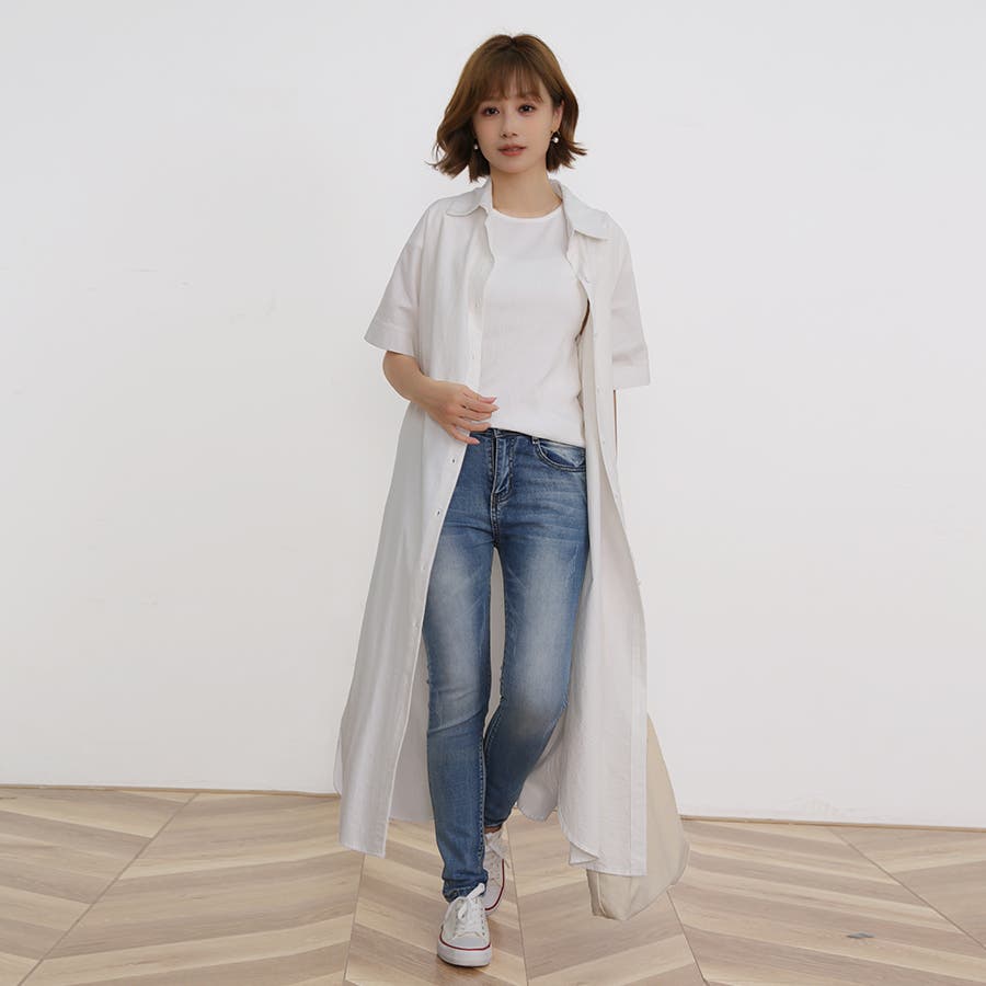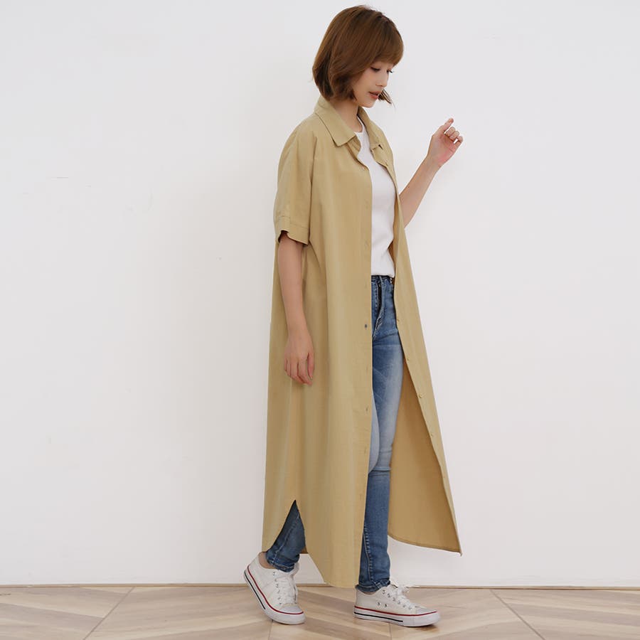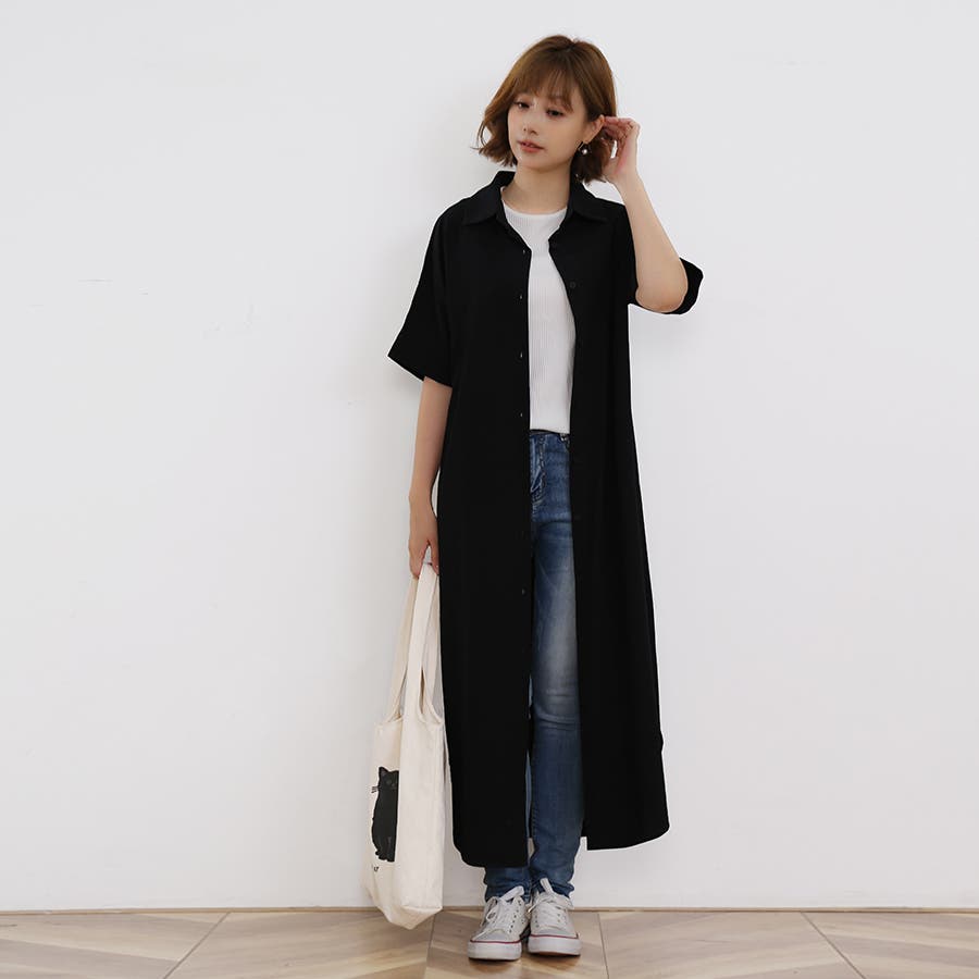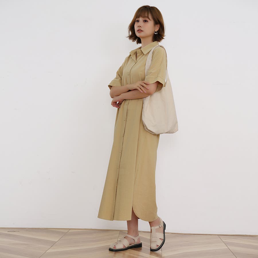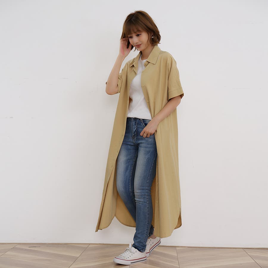 一枚でシャツワンピースとしてはもちろん、フロントボタンを開けてロングシャツとして羽織っても可愛い。