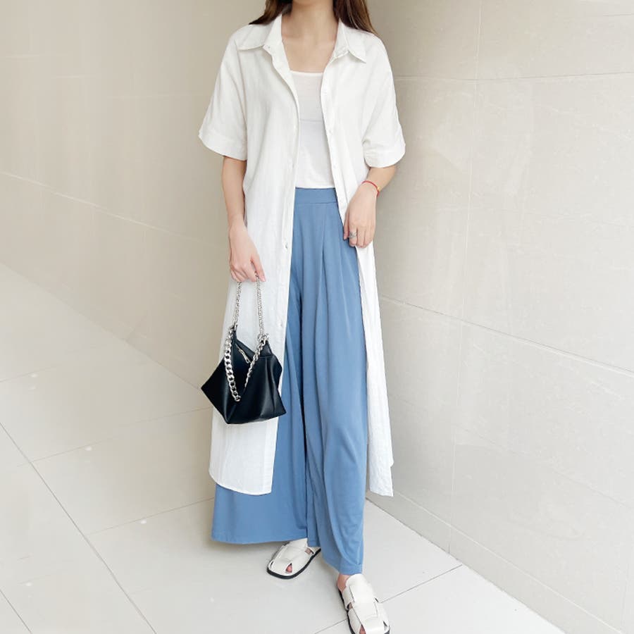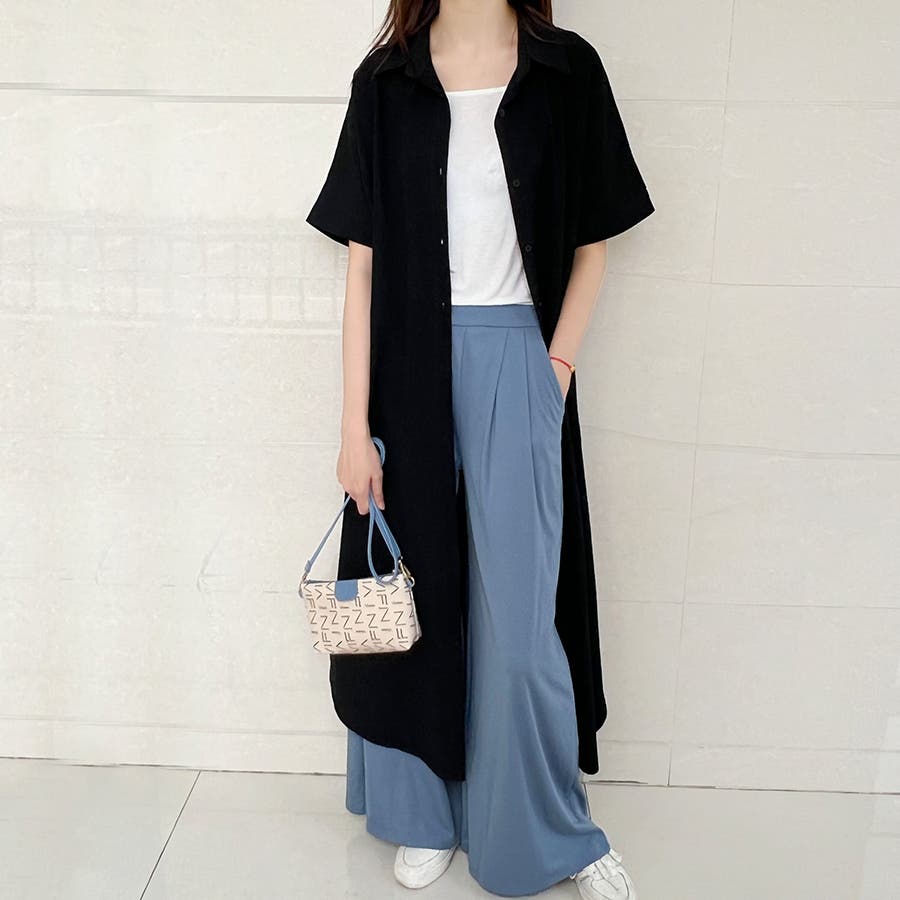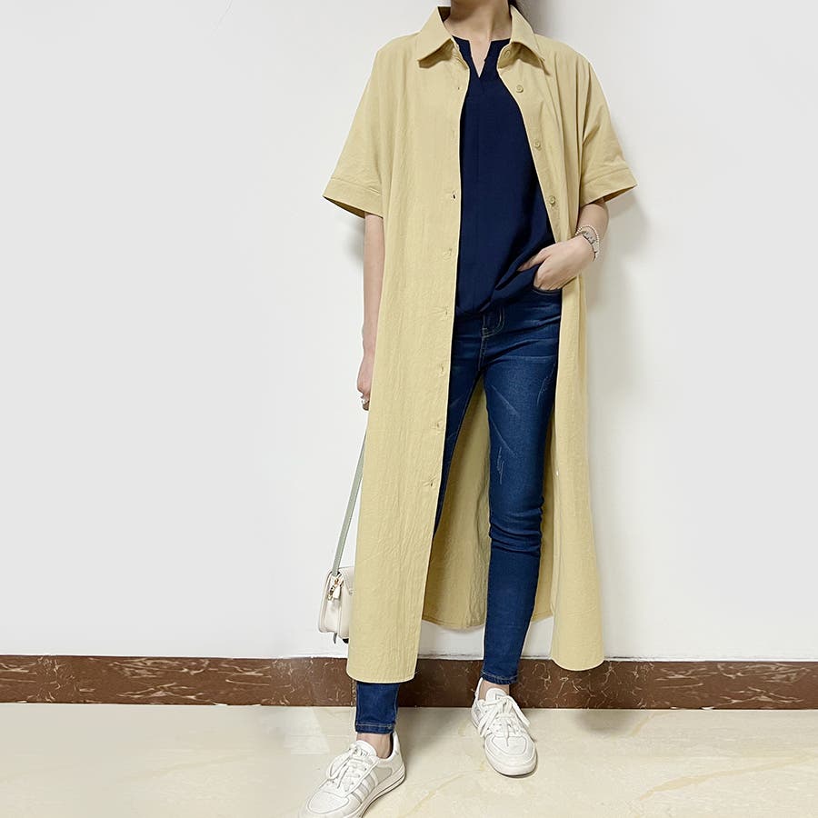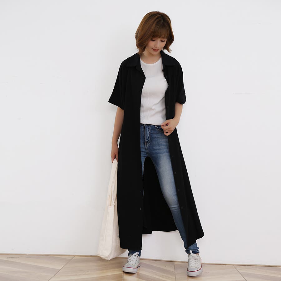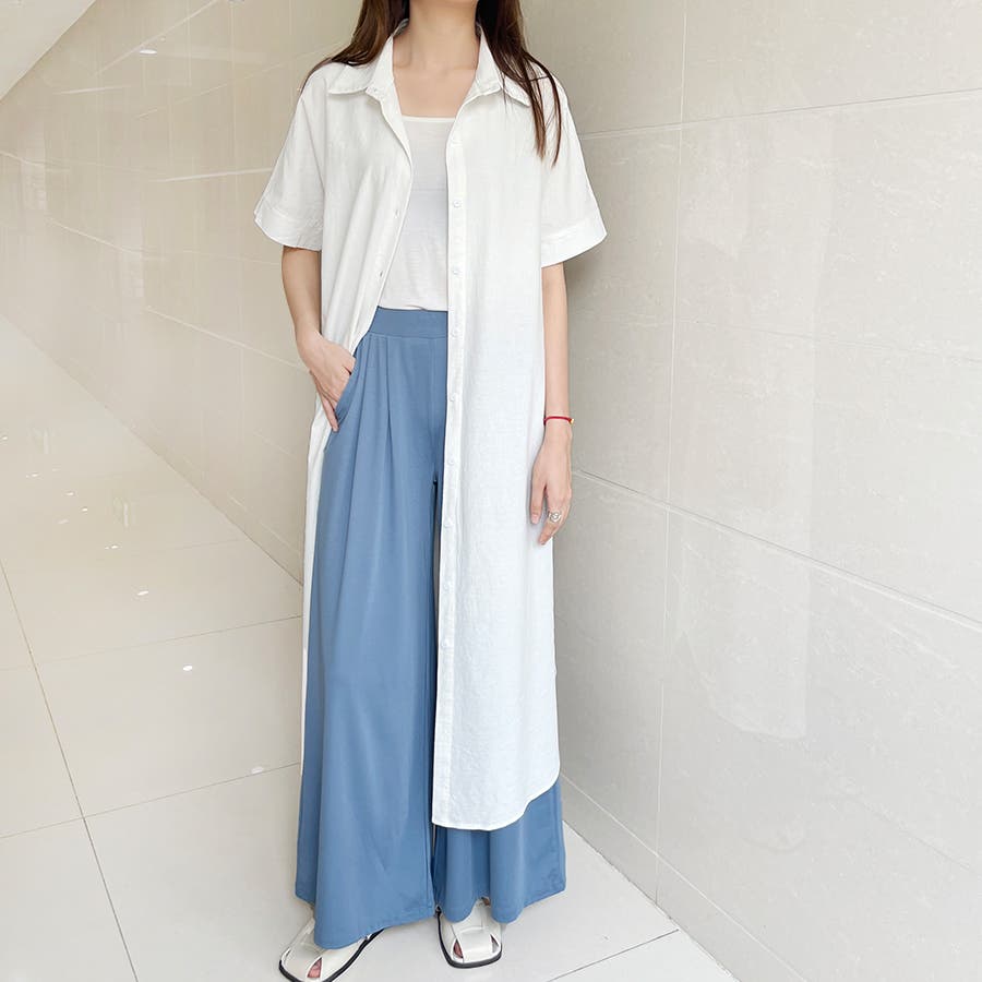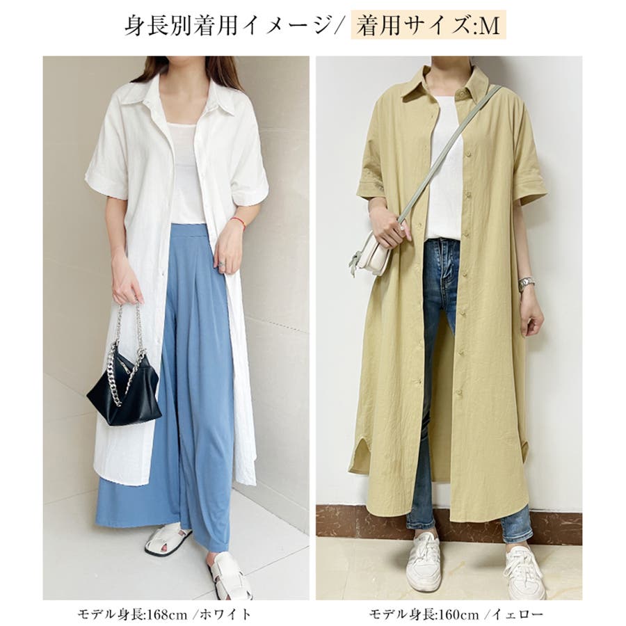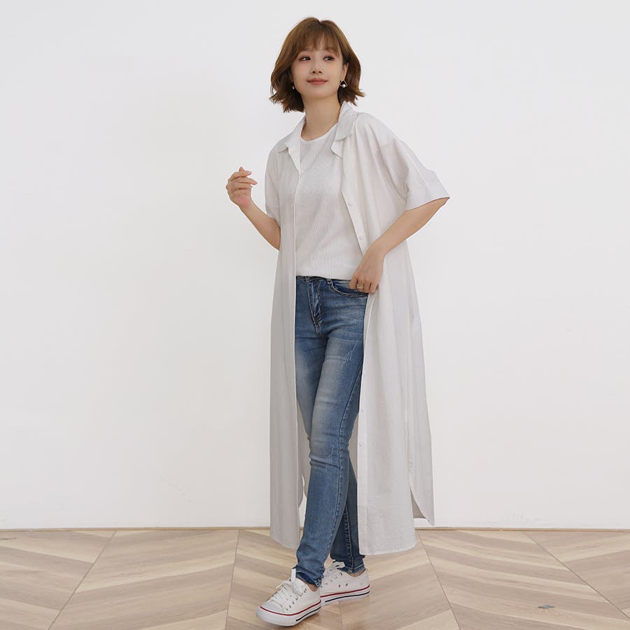 一枚でシャツワンピースとしてはもちろん、フロントボタンを開けてロングシャツとして羽織っても可愛い。