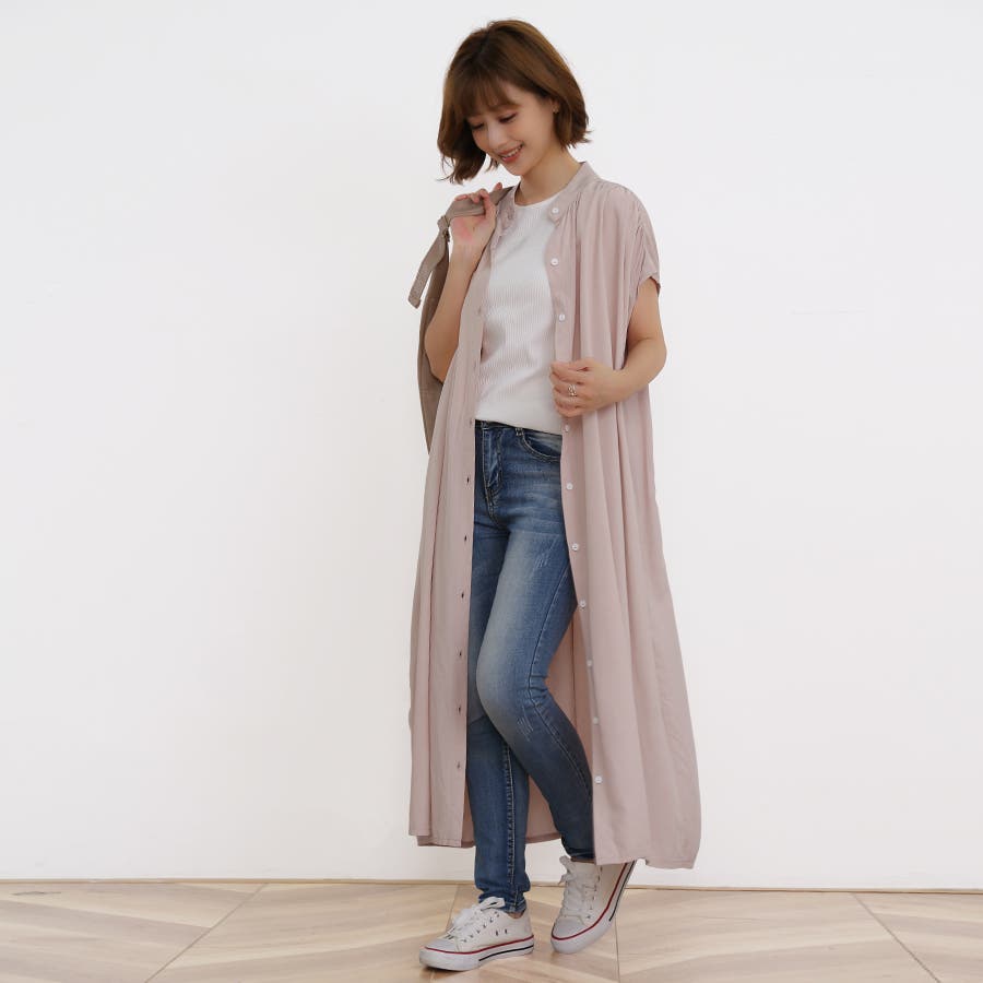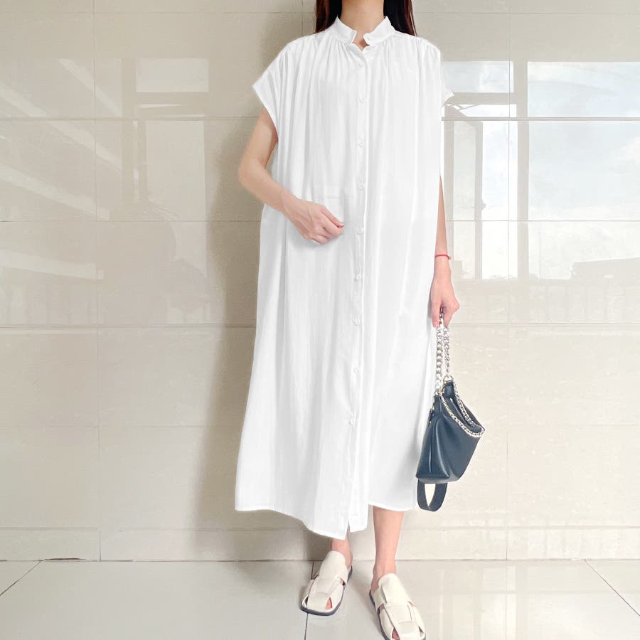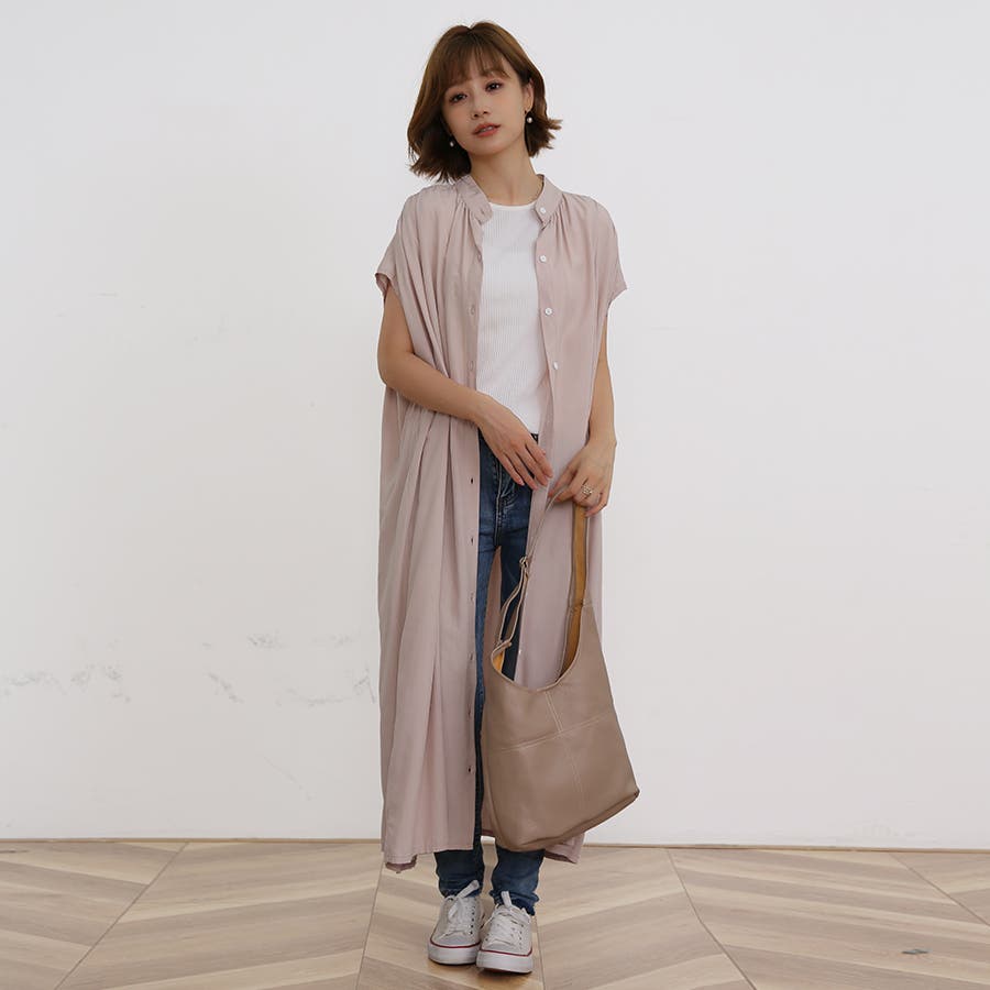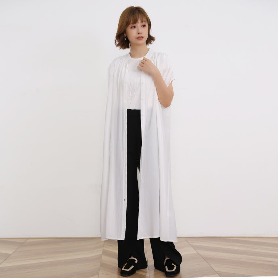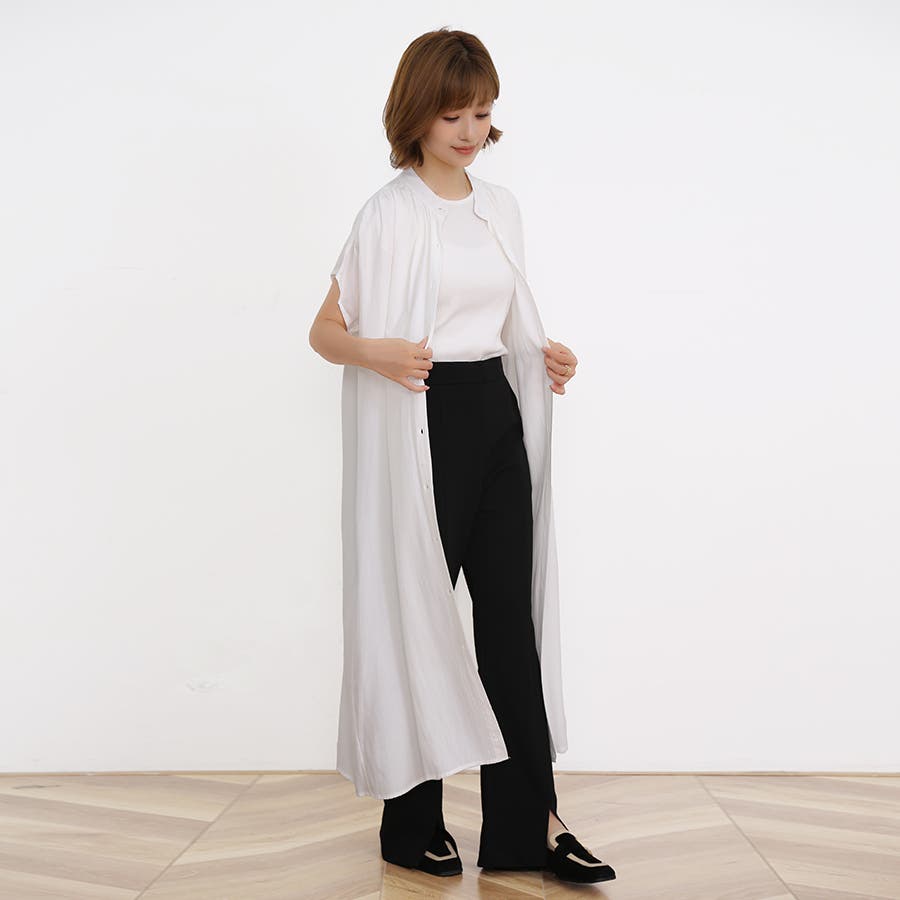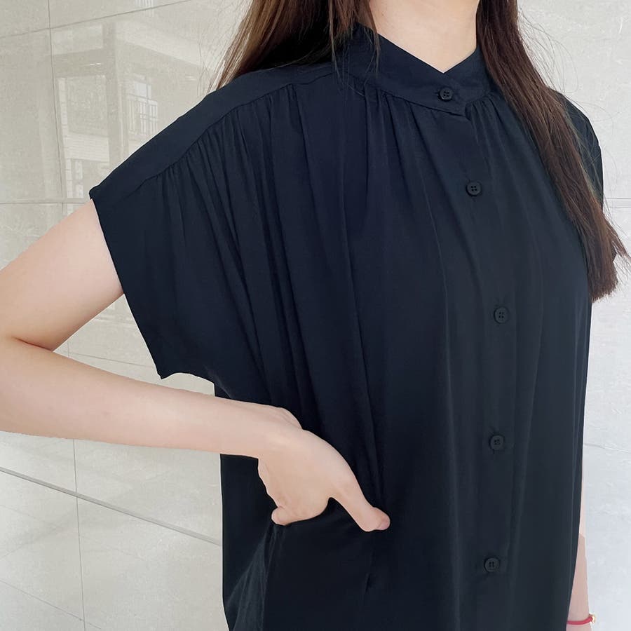きちんと感のあるバンドカラーで品の良い洒落感をプラス!
