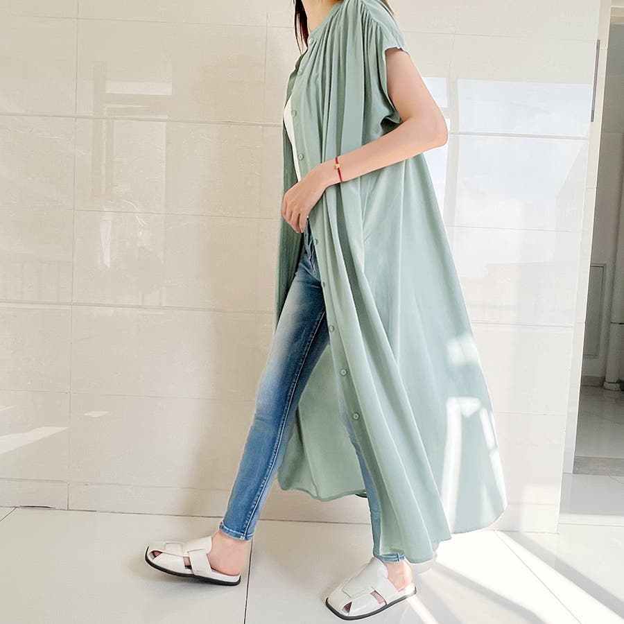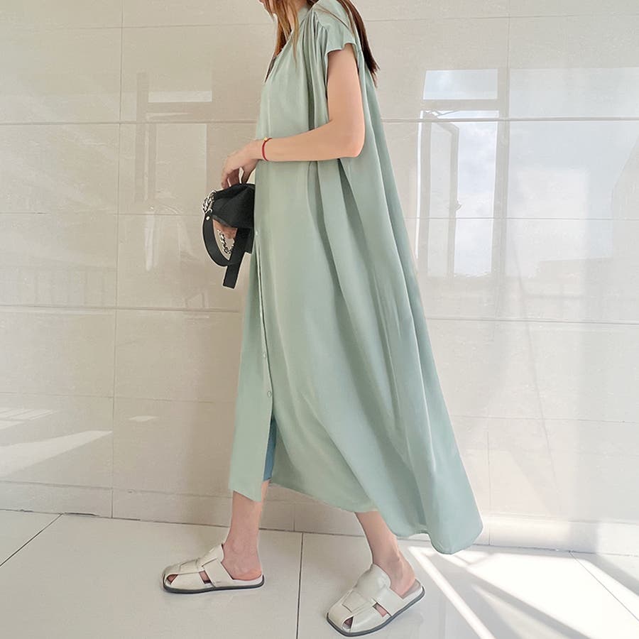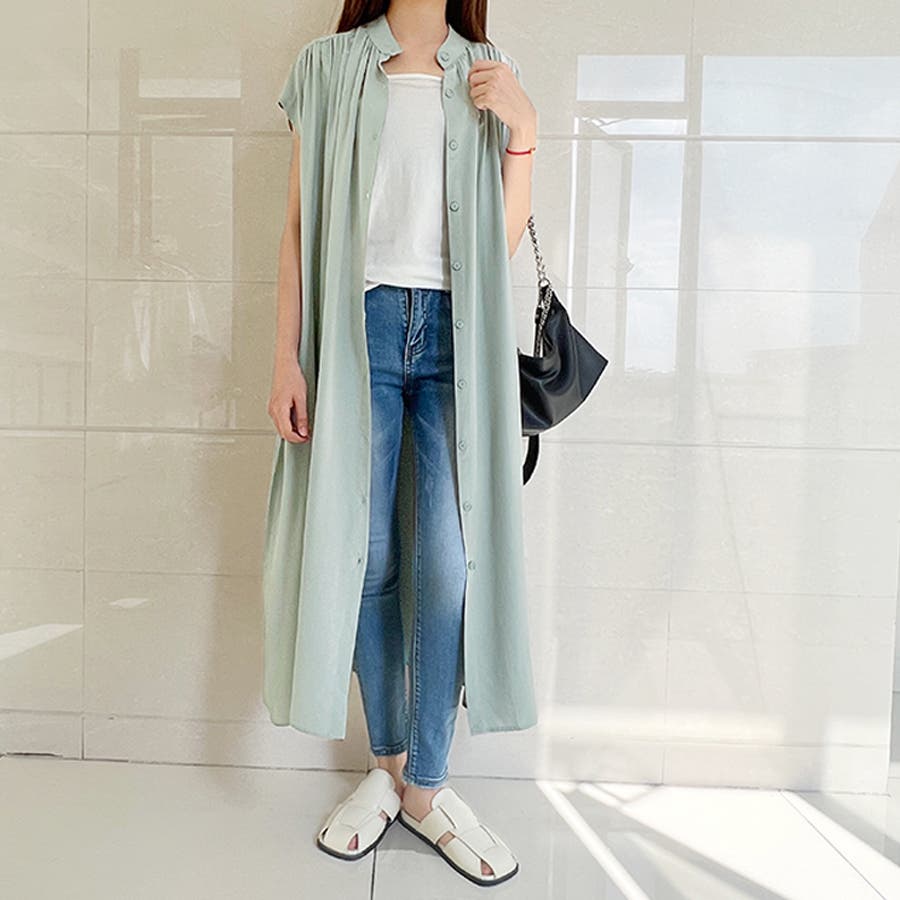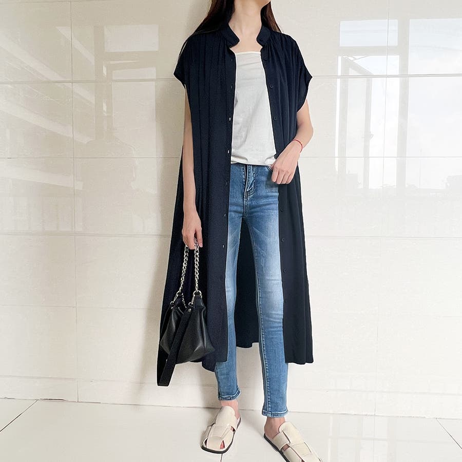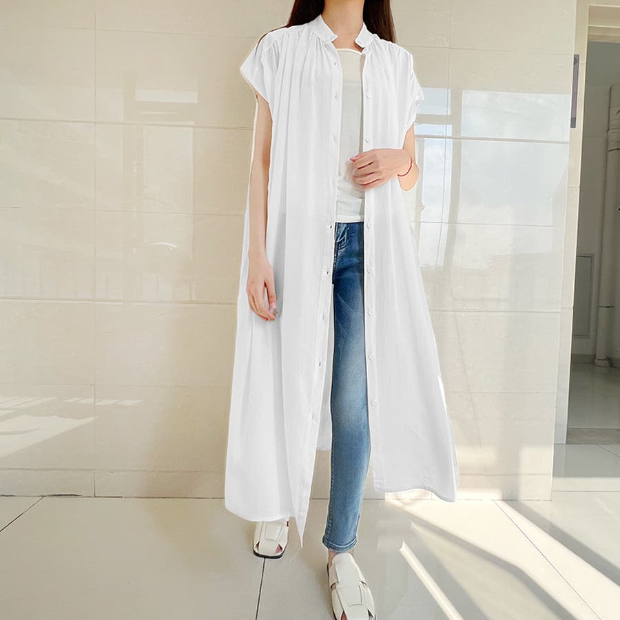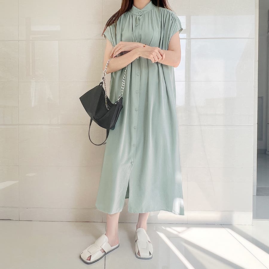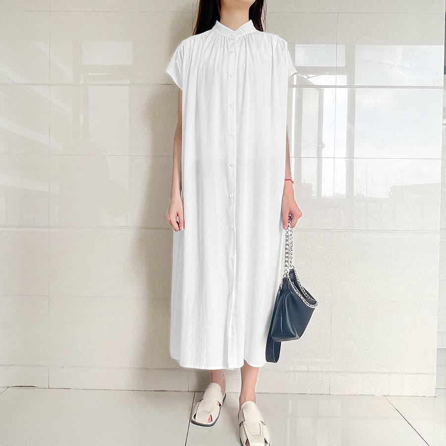 きちんと感のあるバンドカラーで品の良い洒落感をプラス!
