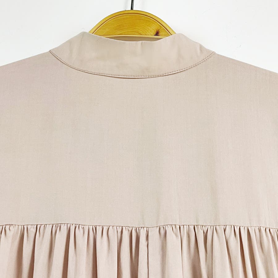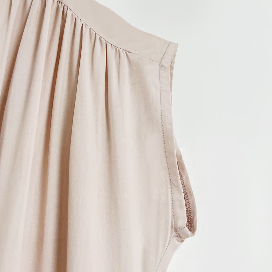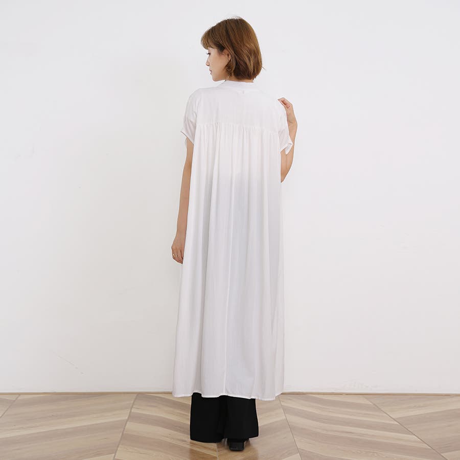バックにはギャザーを細かく入れ、全体的に縦強調する落ち感を生み出します。