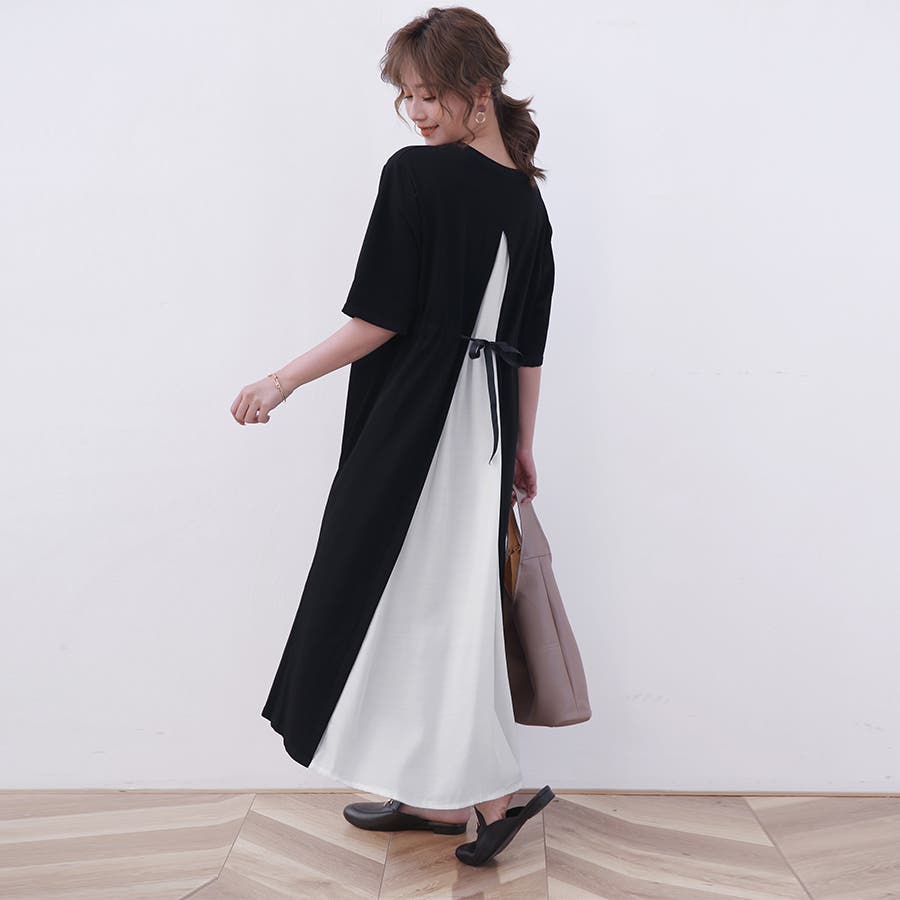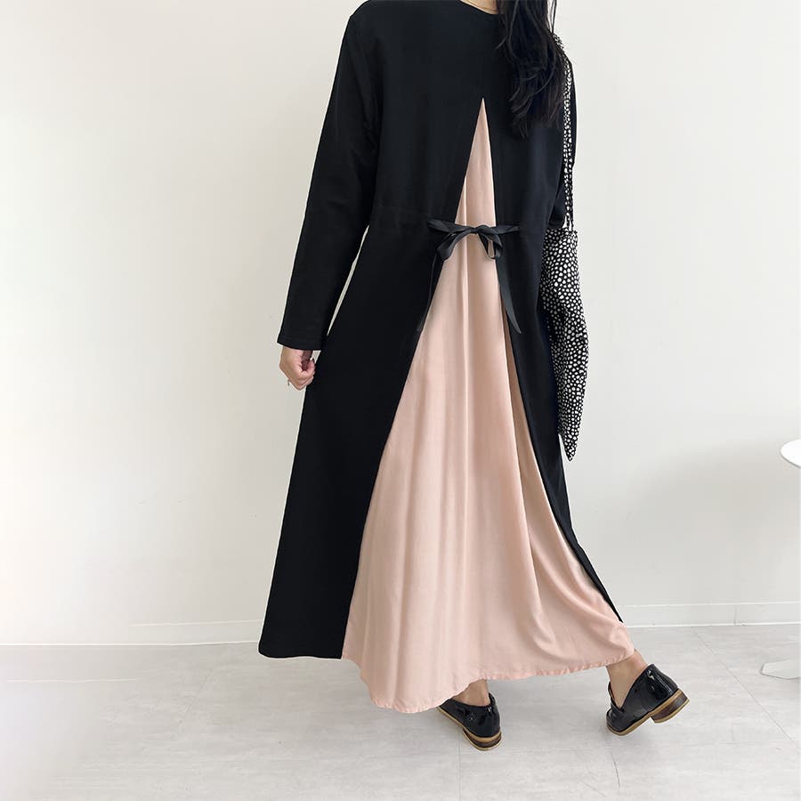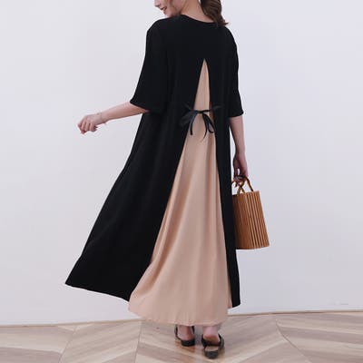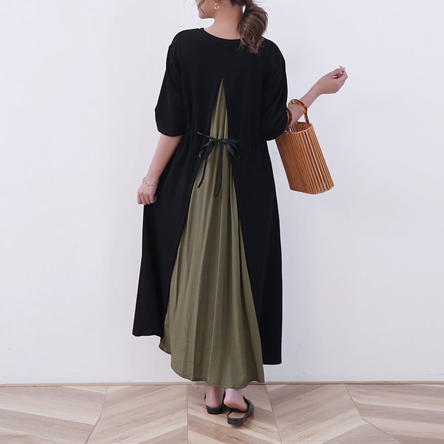 一枚でキマるバックスリットレイヤード風ワンピース。