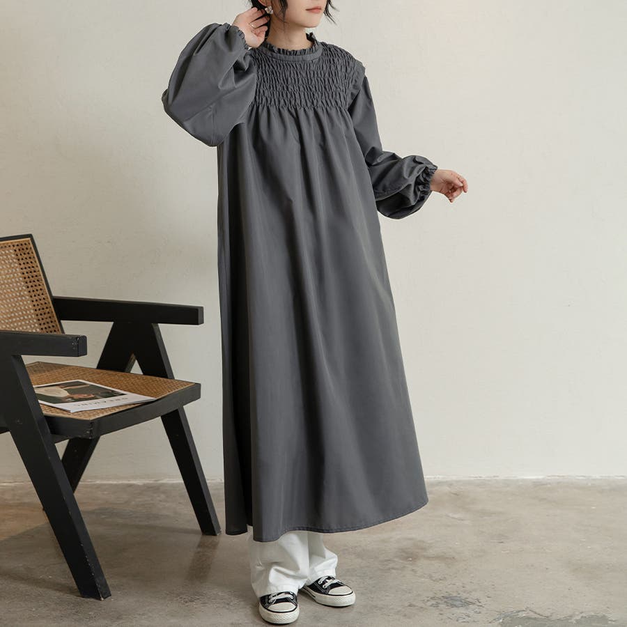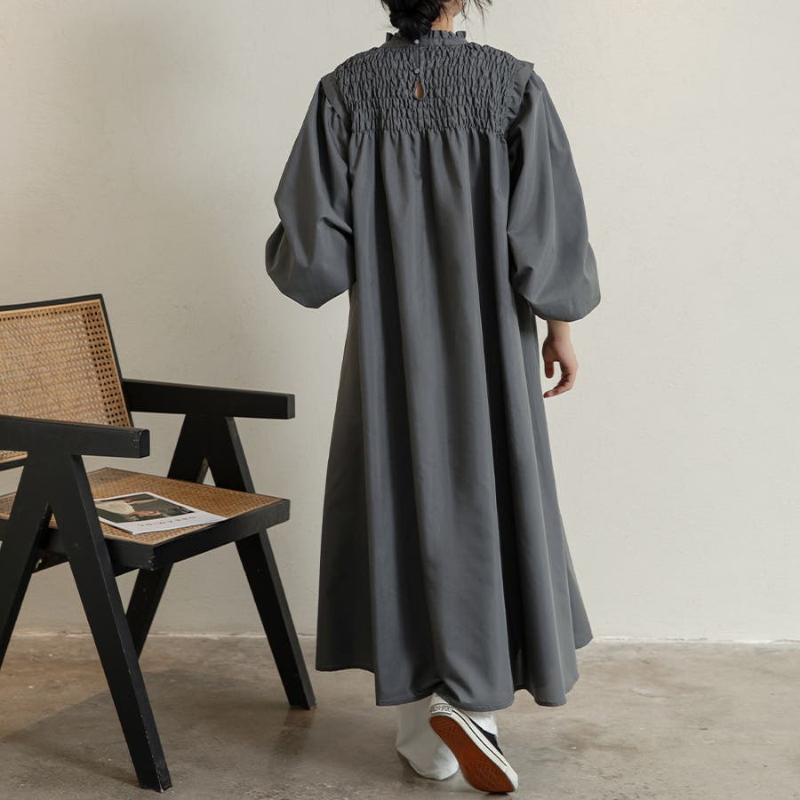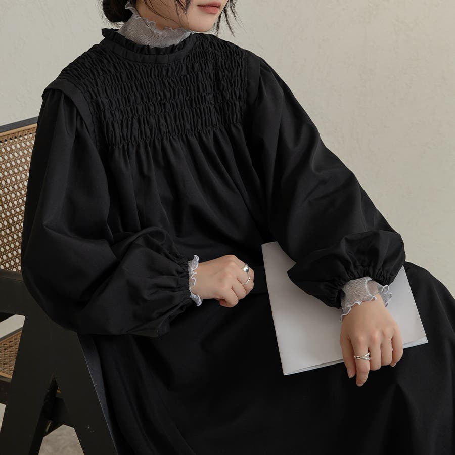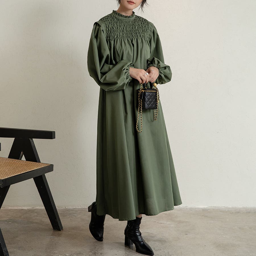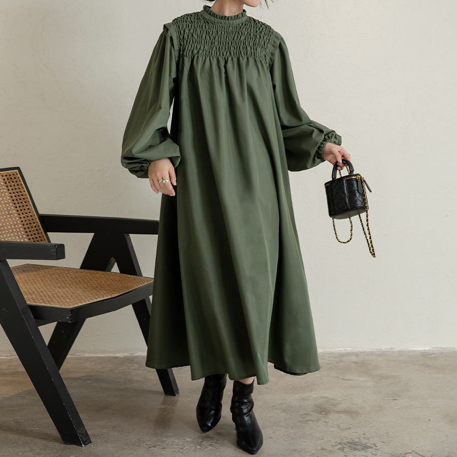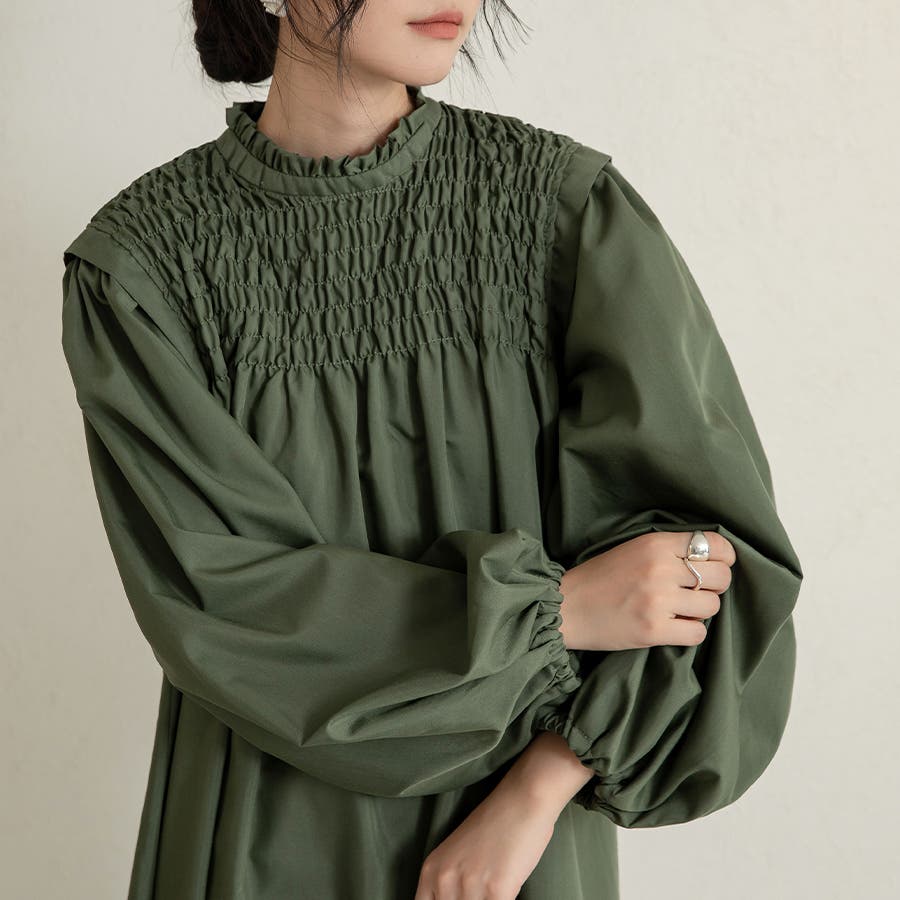 シャーリングワンピース スモッキング ボリュームスリーブ