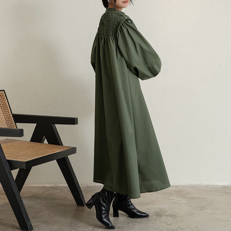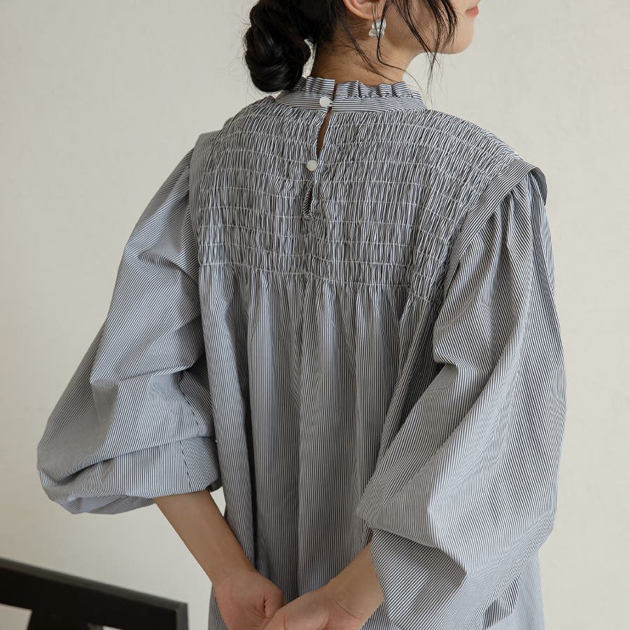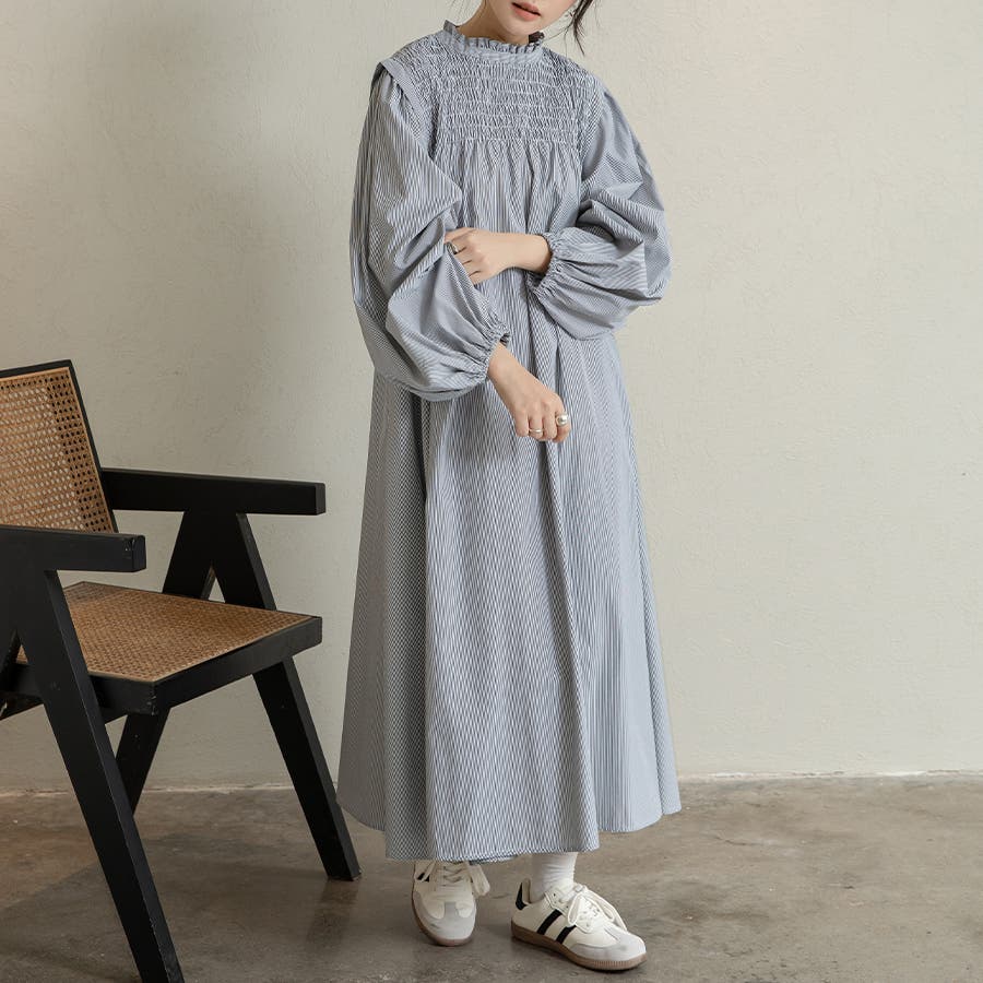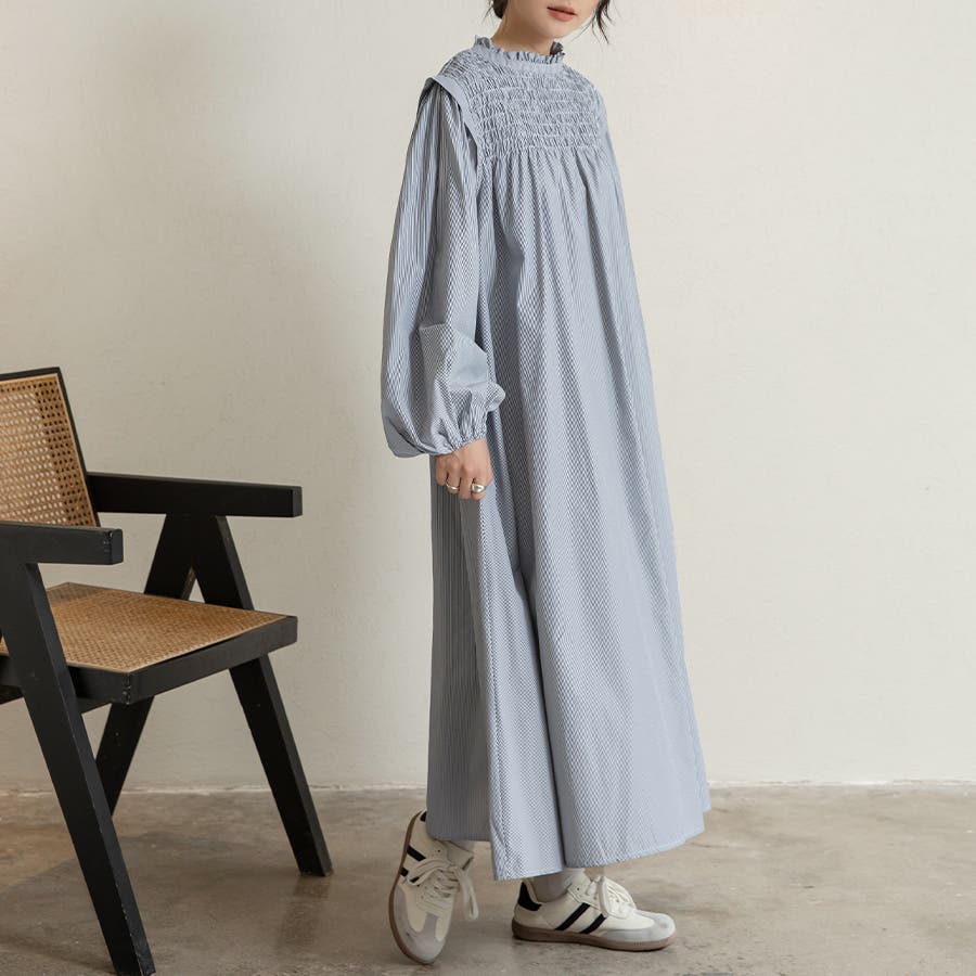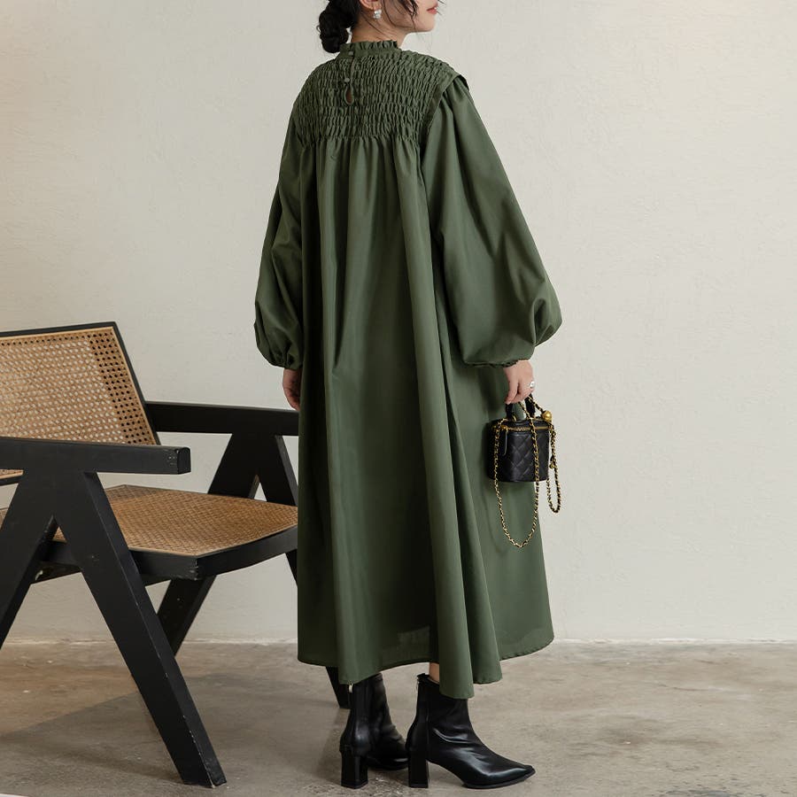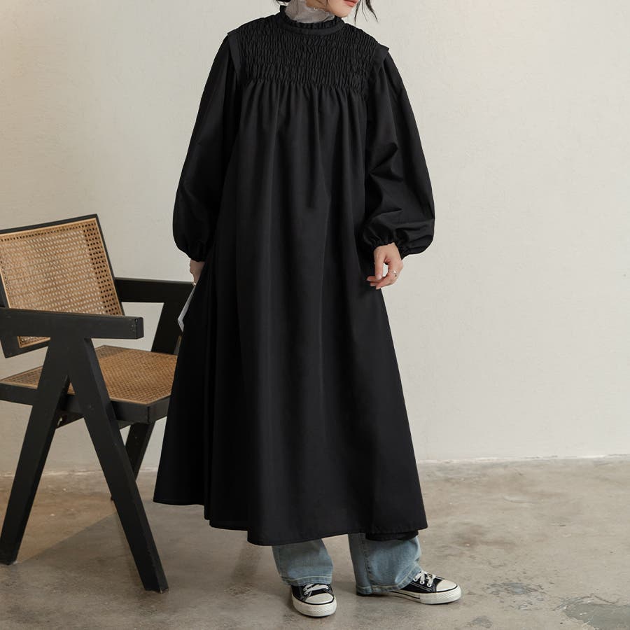 シャーリングワンピース スモッキング ボリュームスリーブ