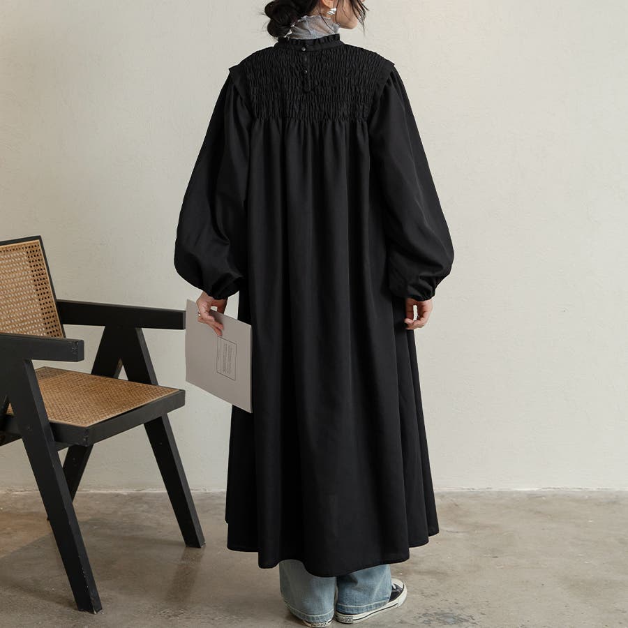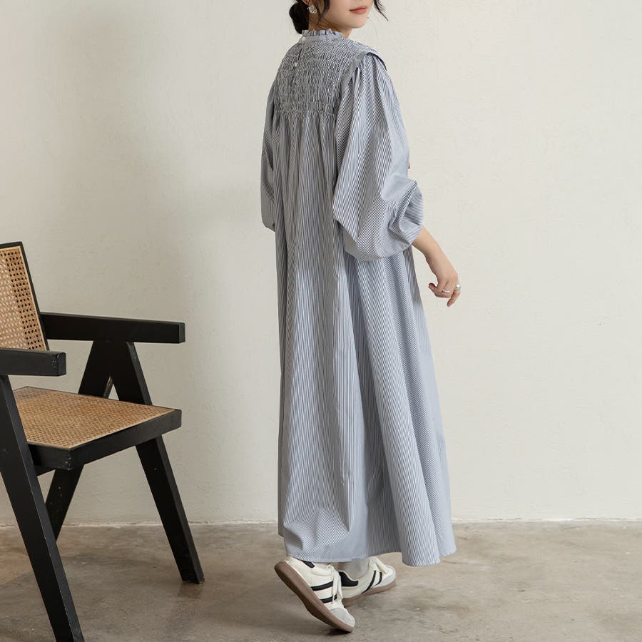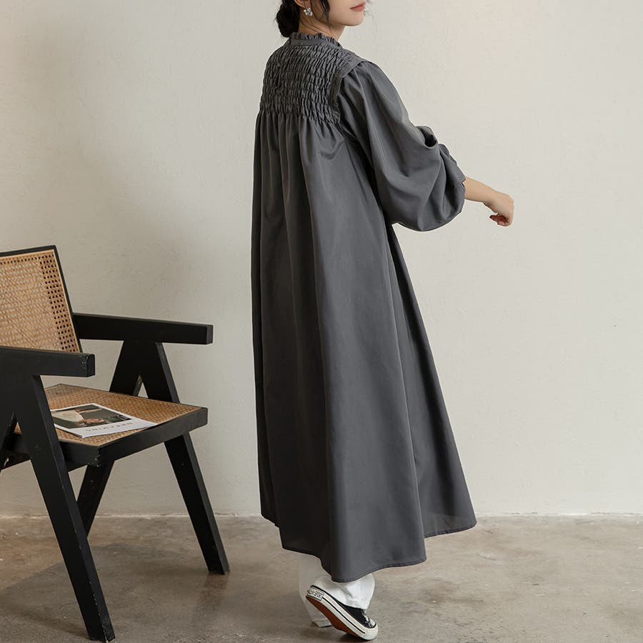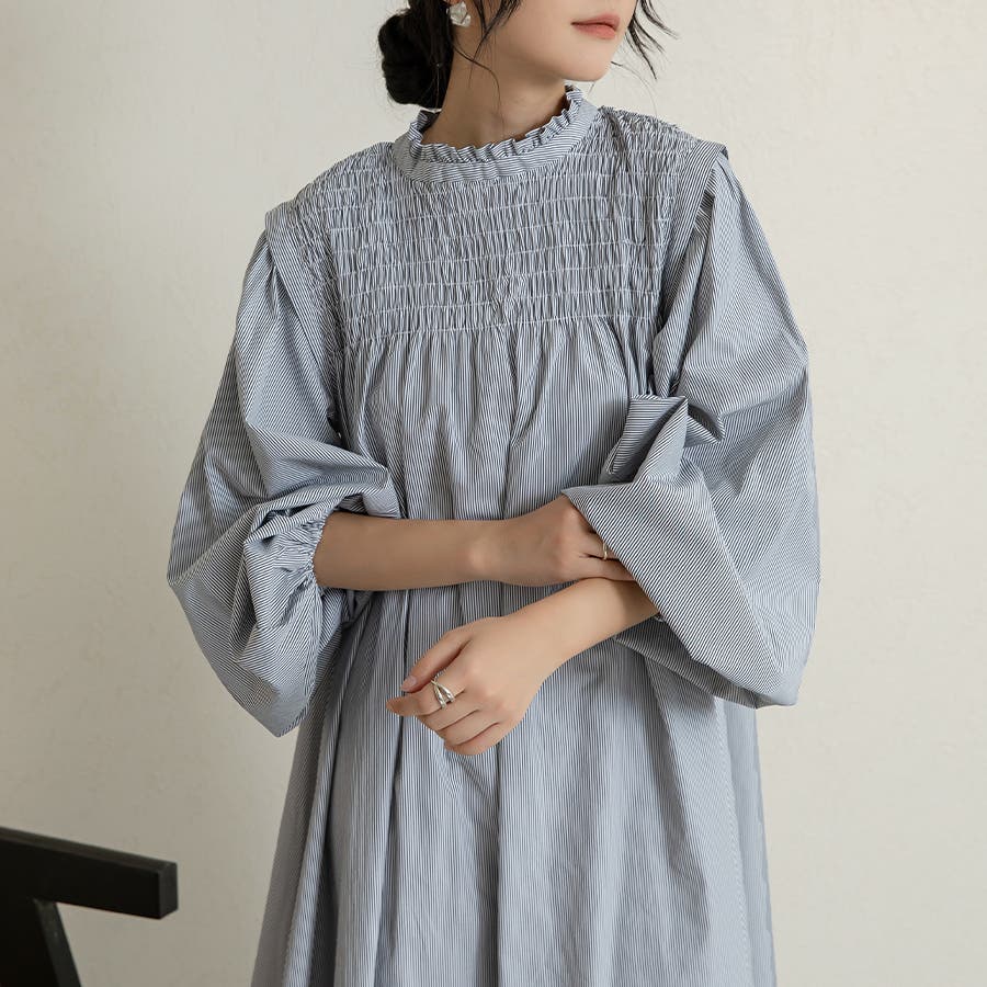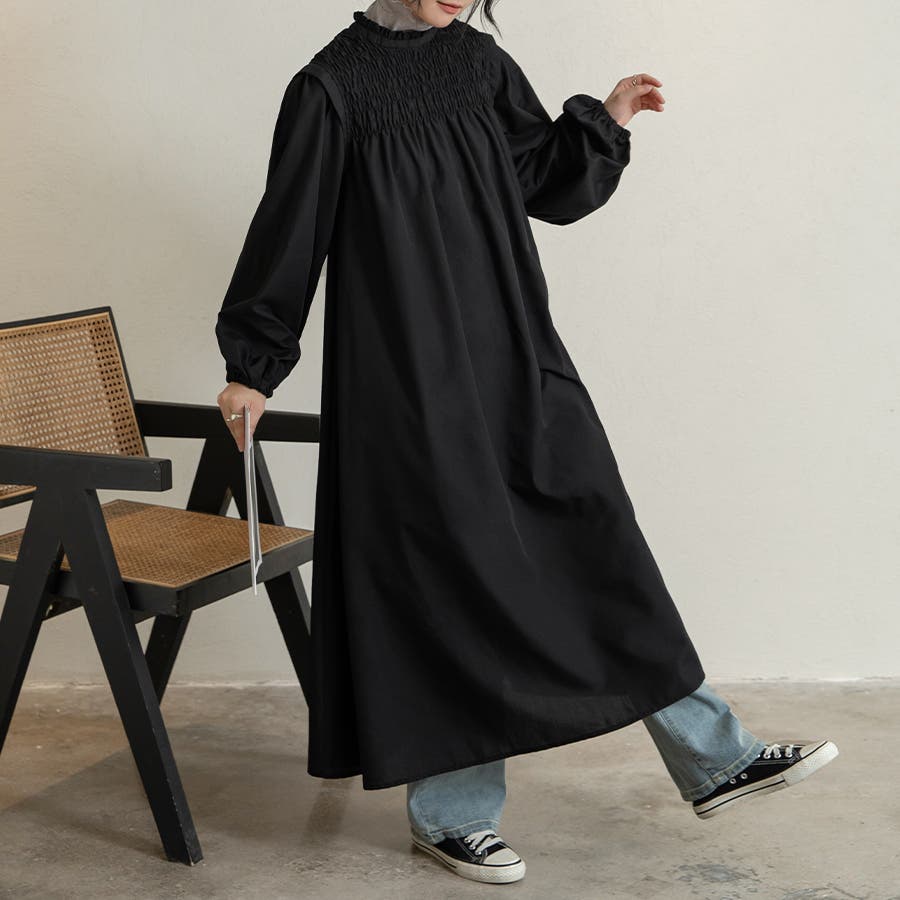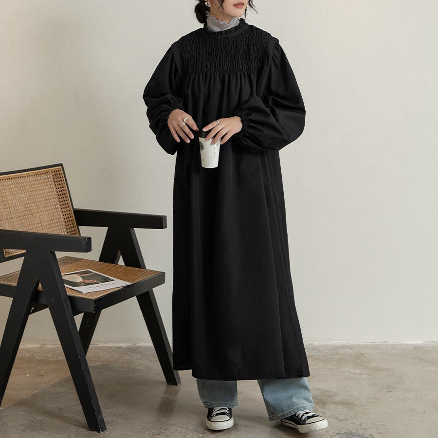シャーリングワンピース スモッキング ボリュームスリーブ