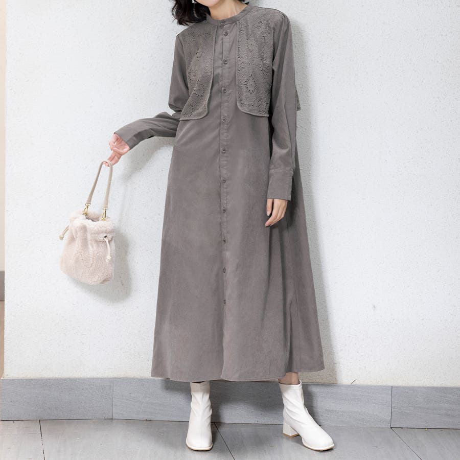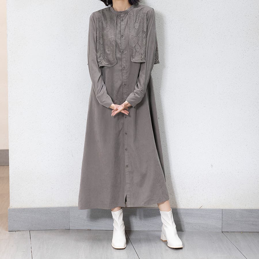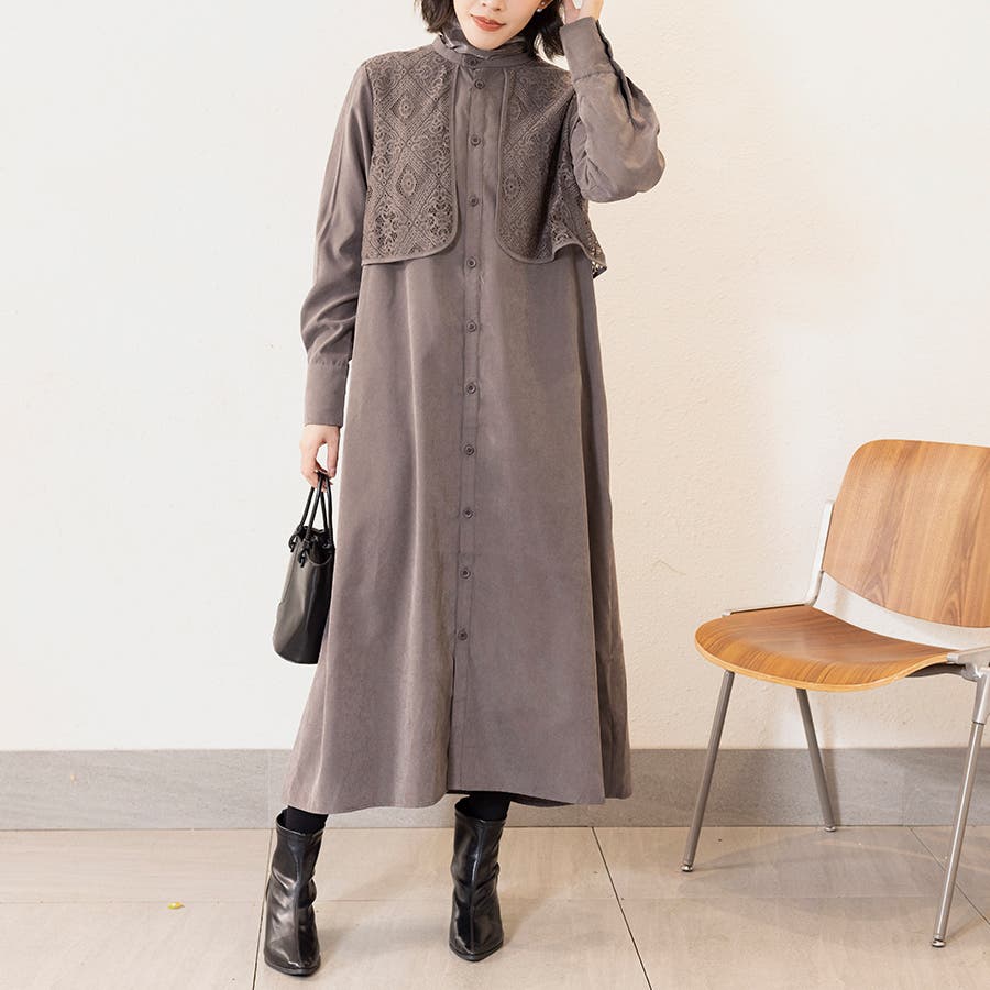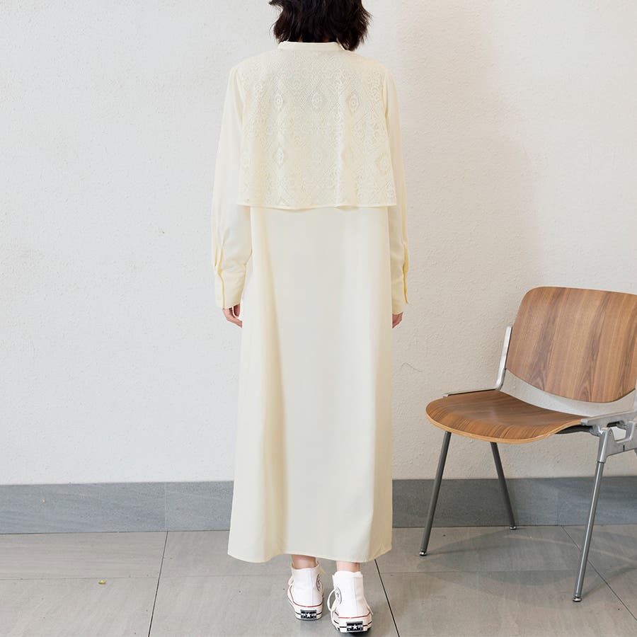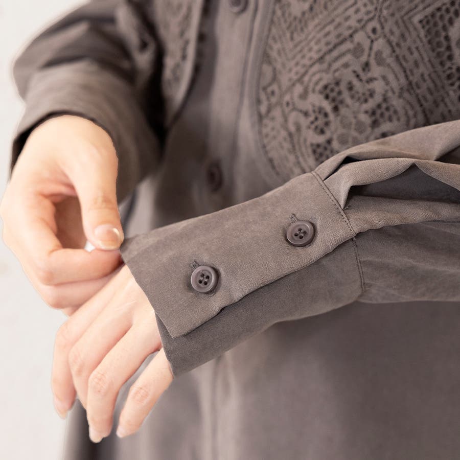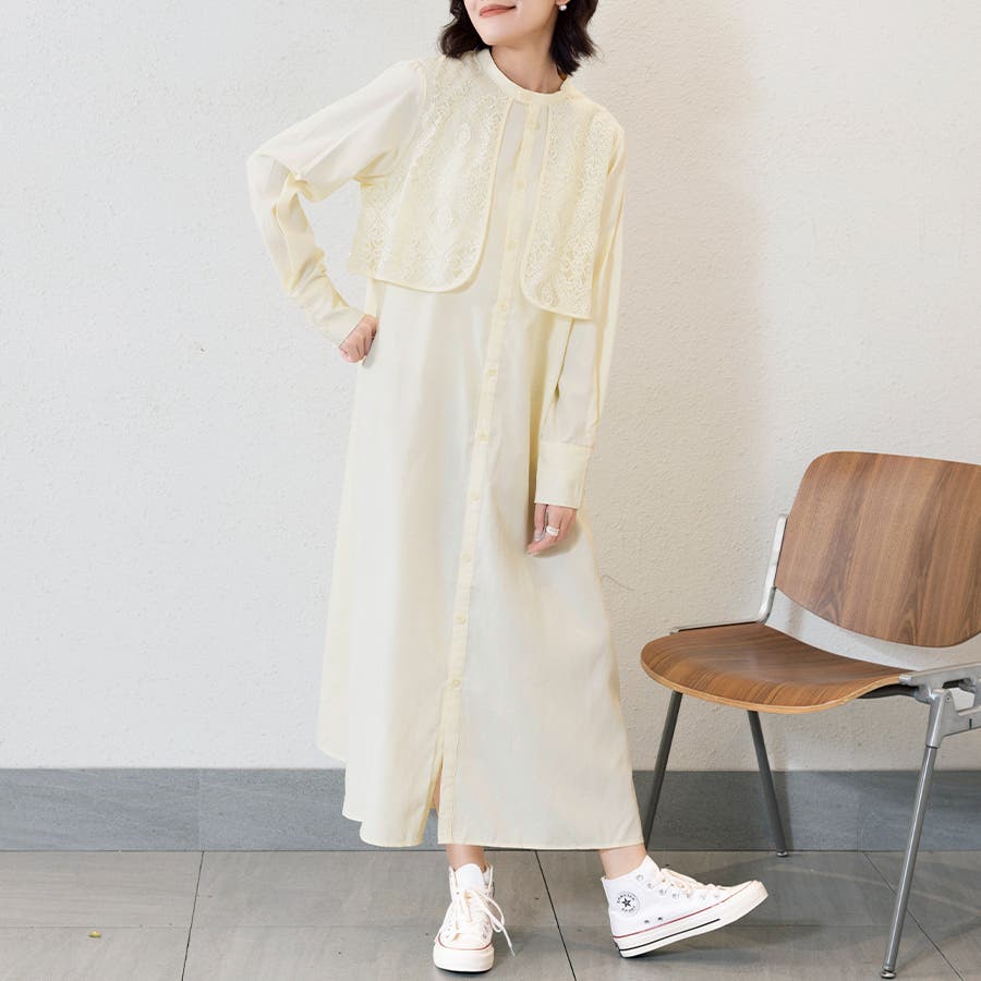 ワンピース ロング 長袖 ロングワンピース マキシ丈 シャツワンピ レース