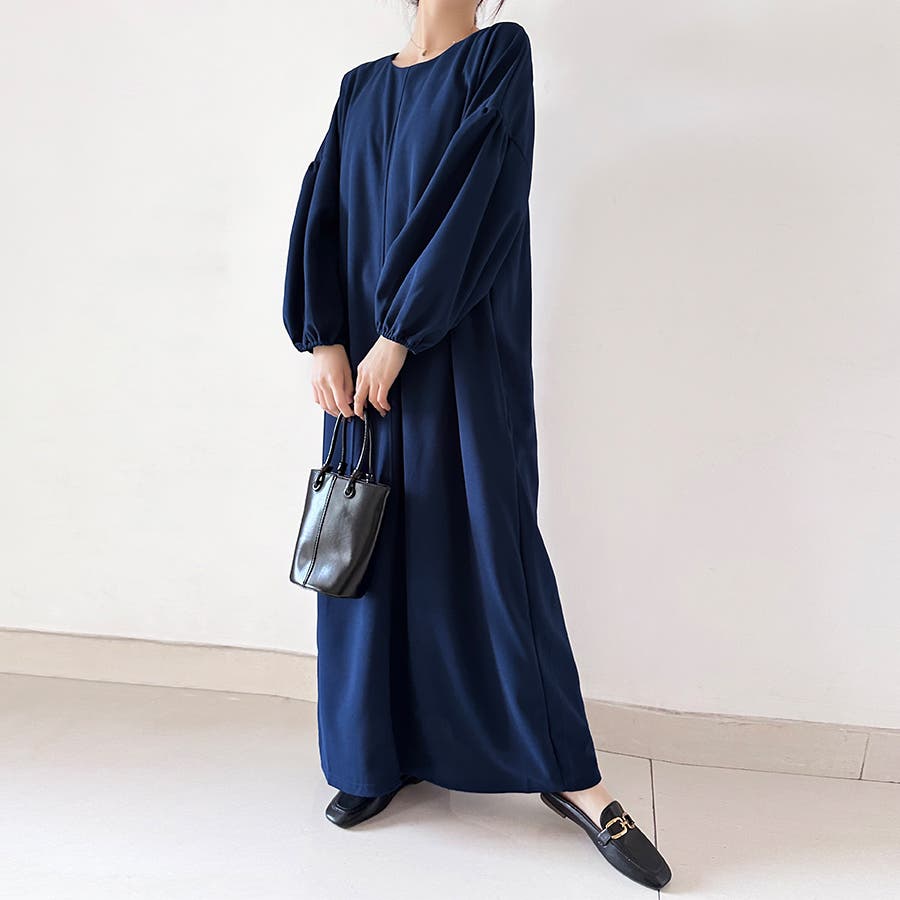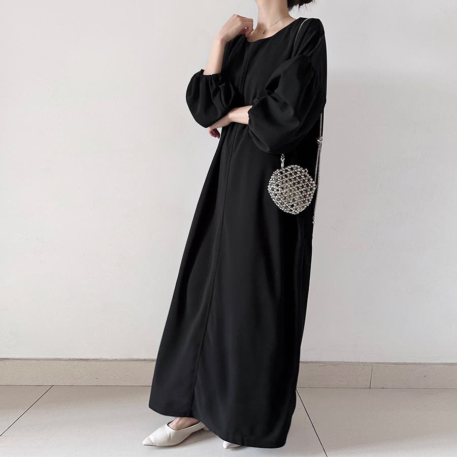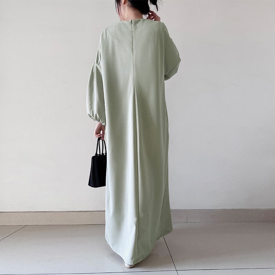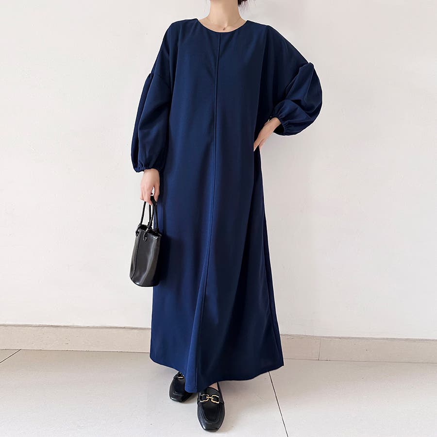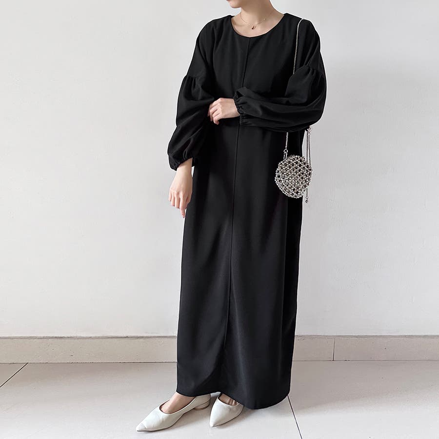 シンプルなのにボリュームスリーブで華やかで場所を選ばない、オーバーサイズロングワンピース♪
