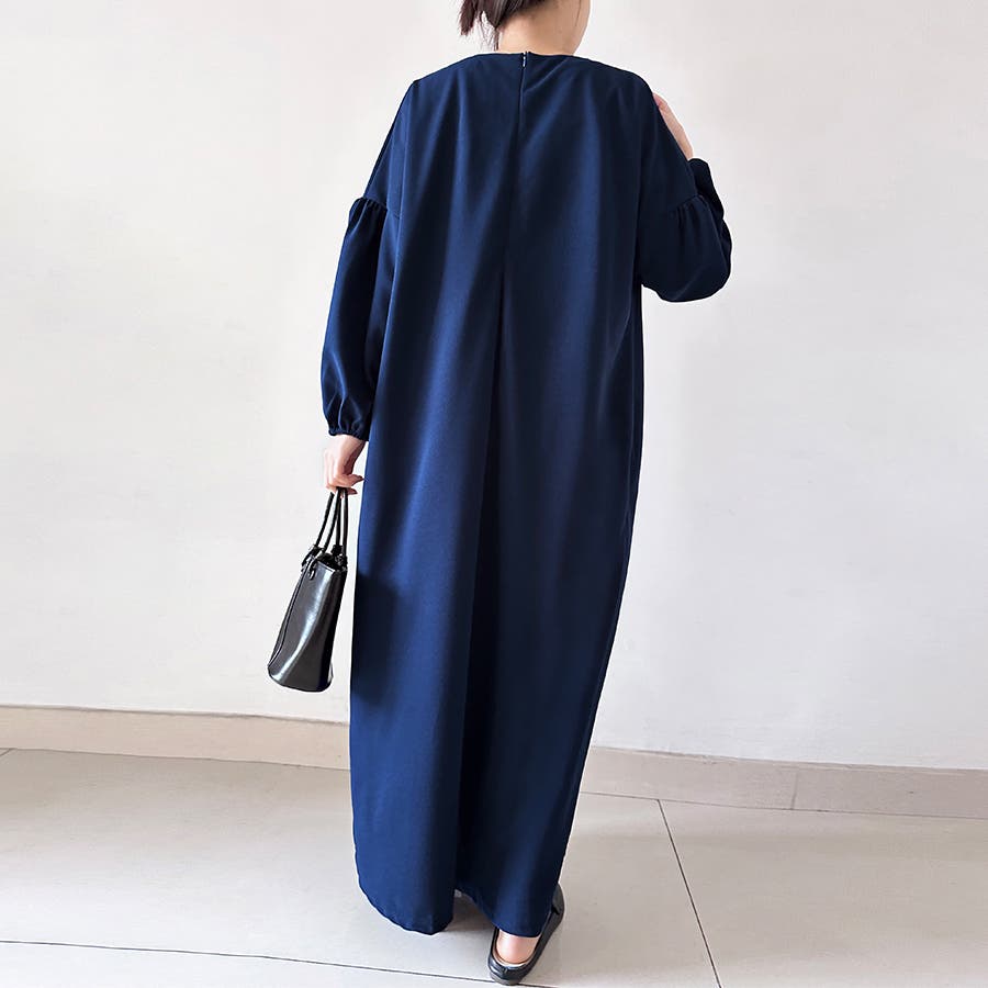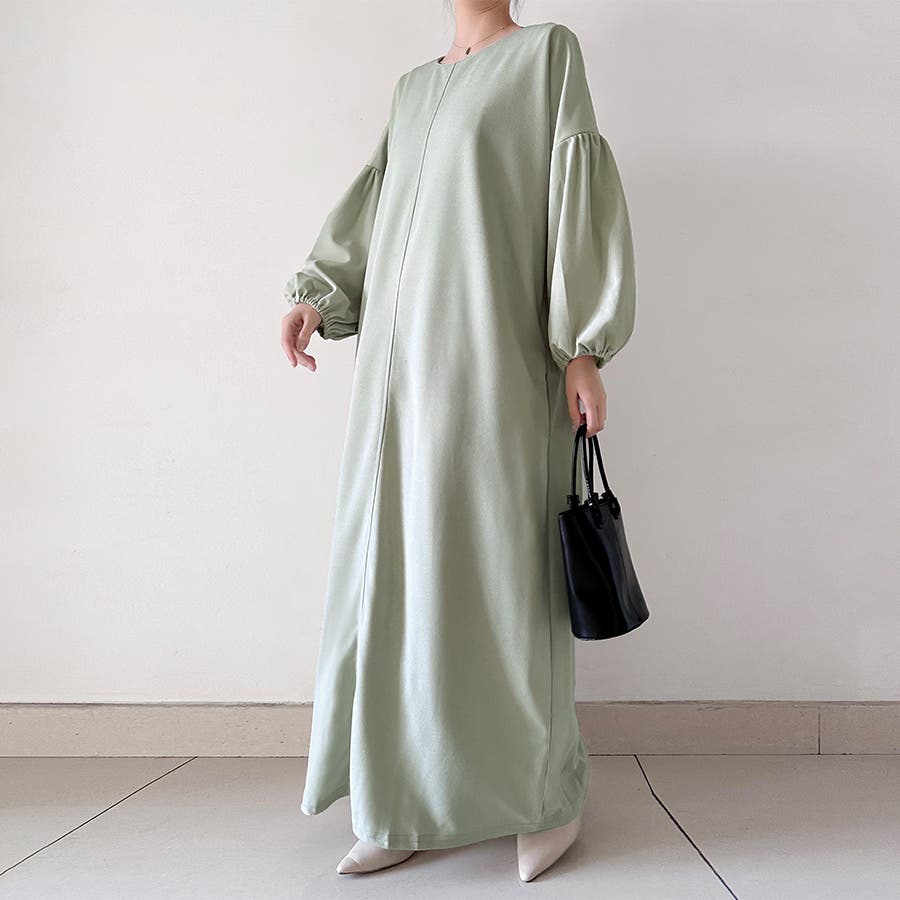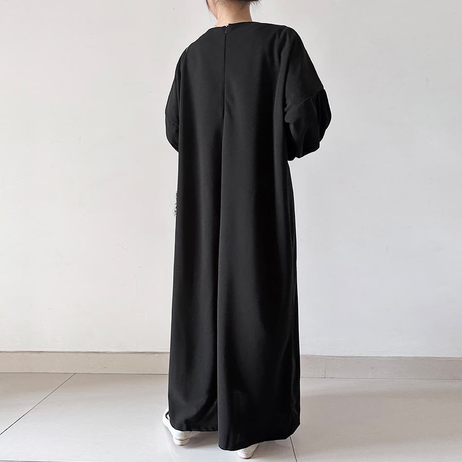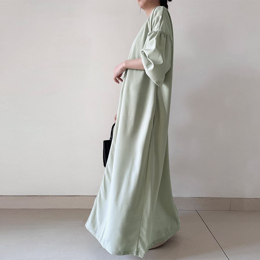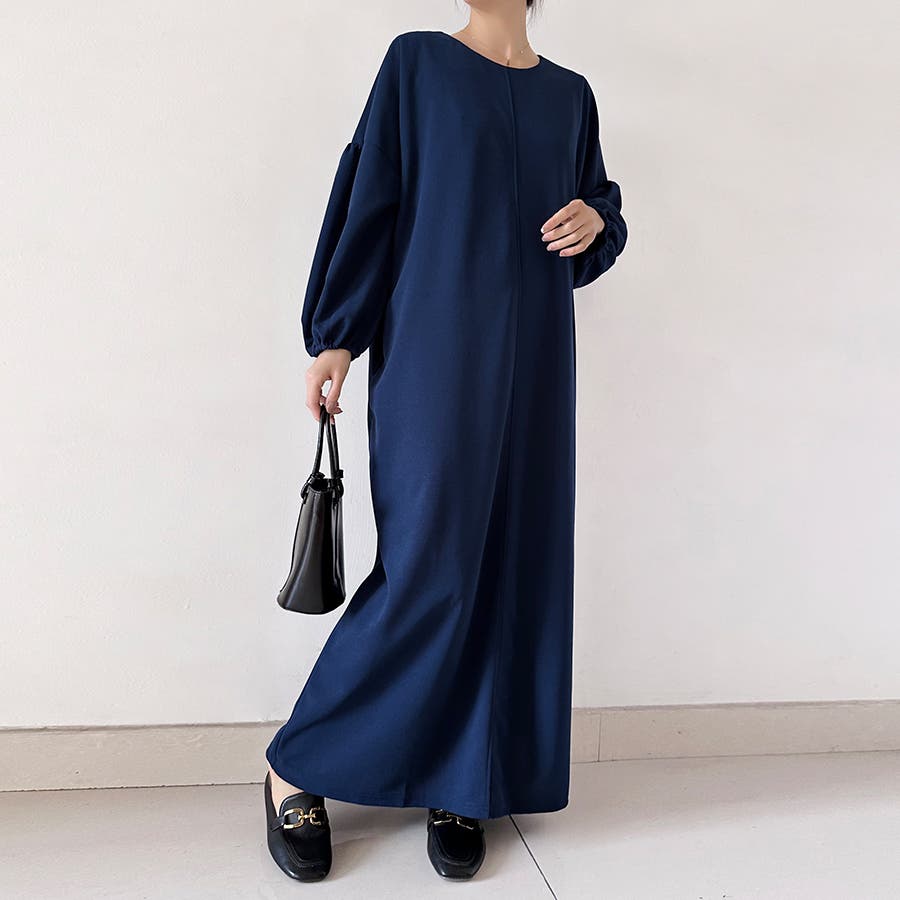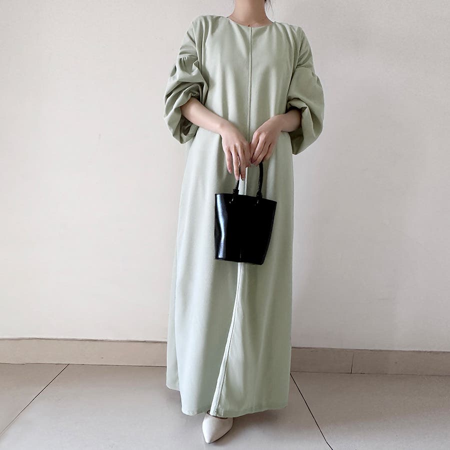 シンプルなのにボリュームスリーブで華やかで場所を選ばない、オーバーサイズロングワンピース♪