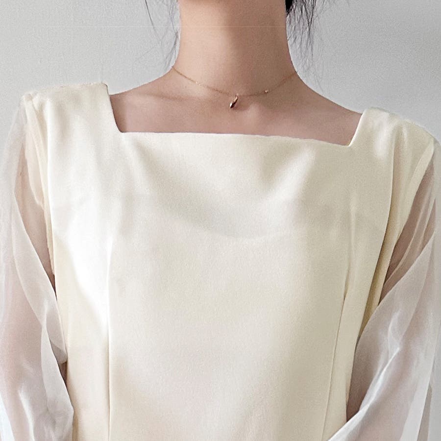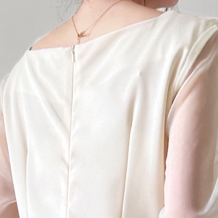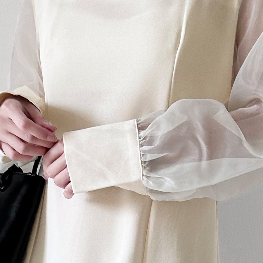 袖口のシアー素材は気になる二の腕もカバーしてくれ、スタイルアップ効果も!