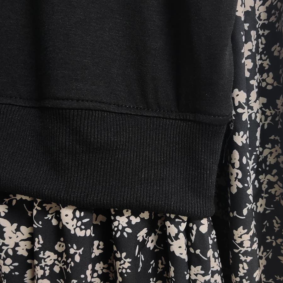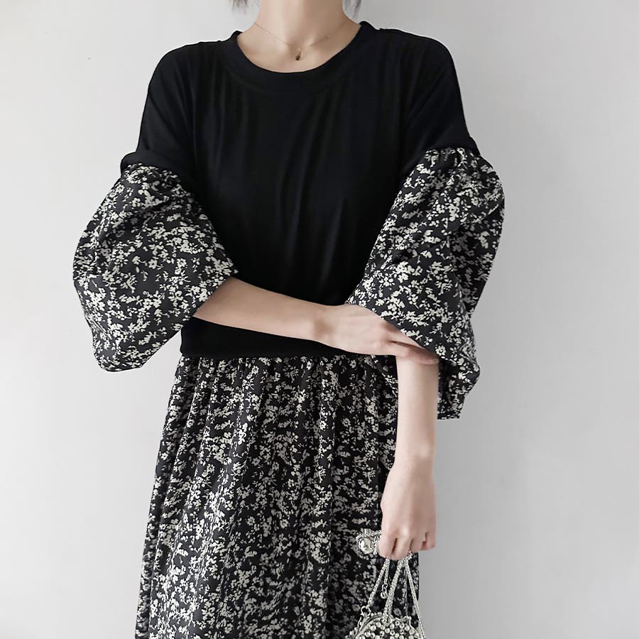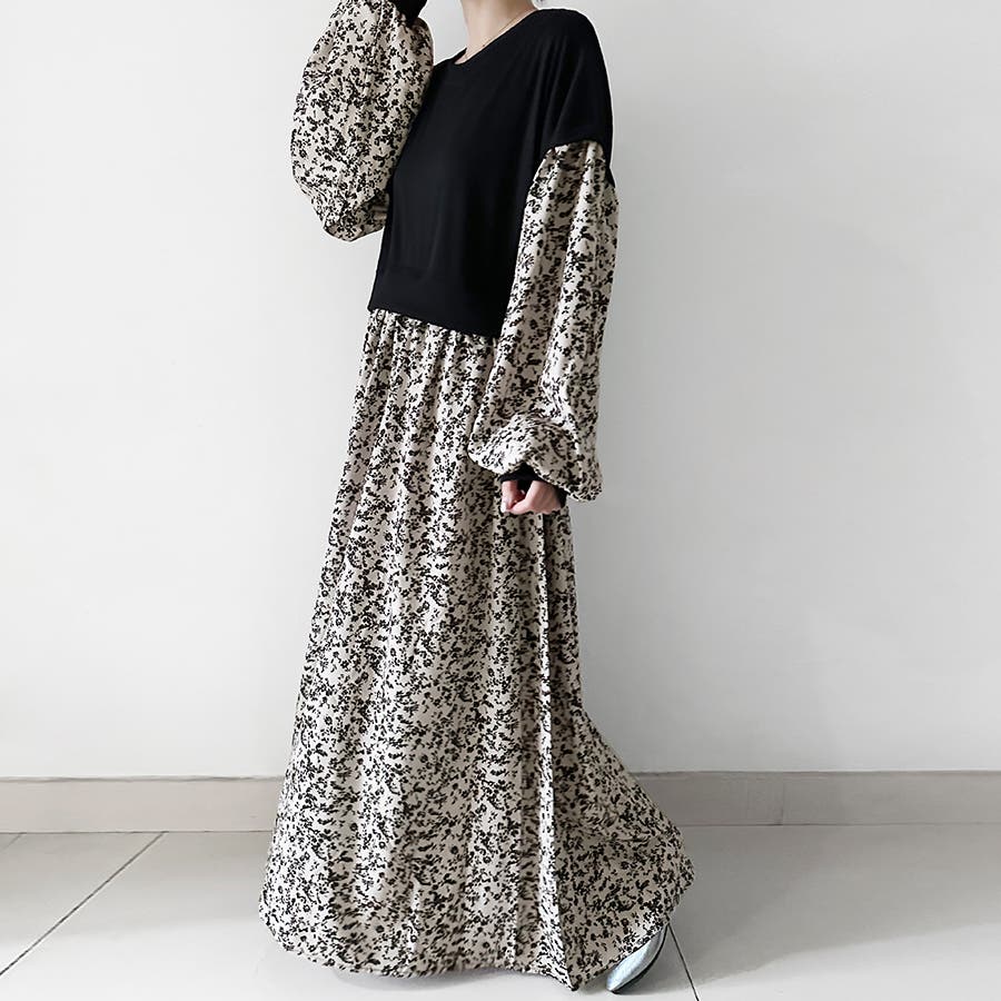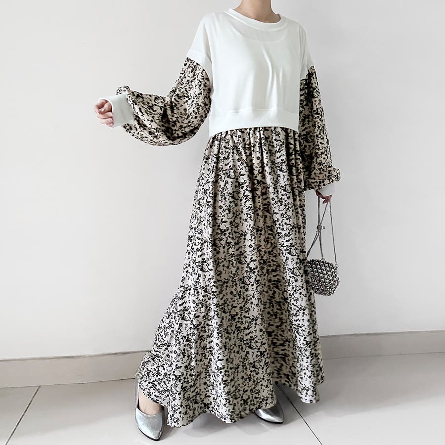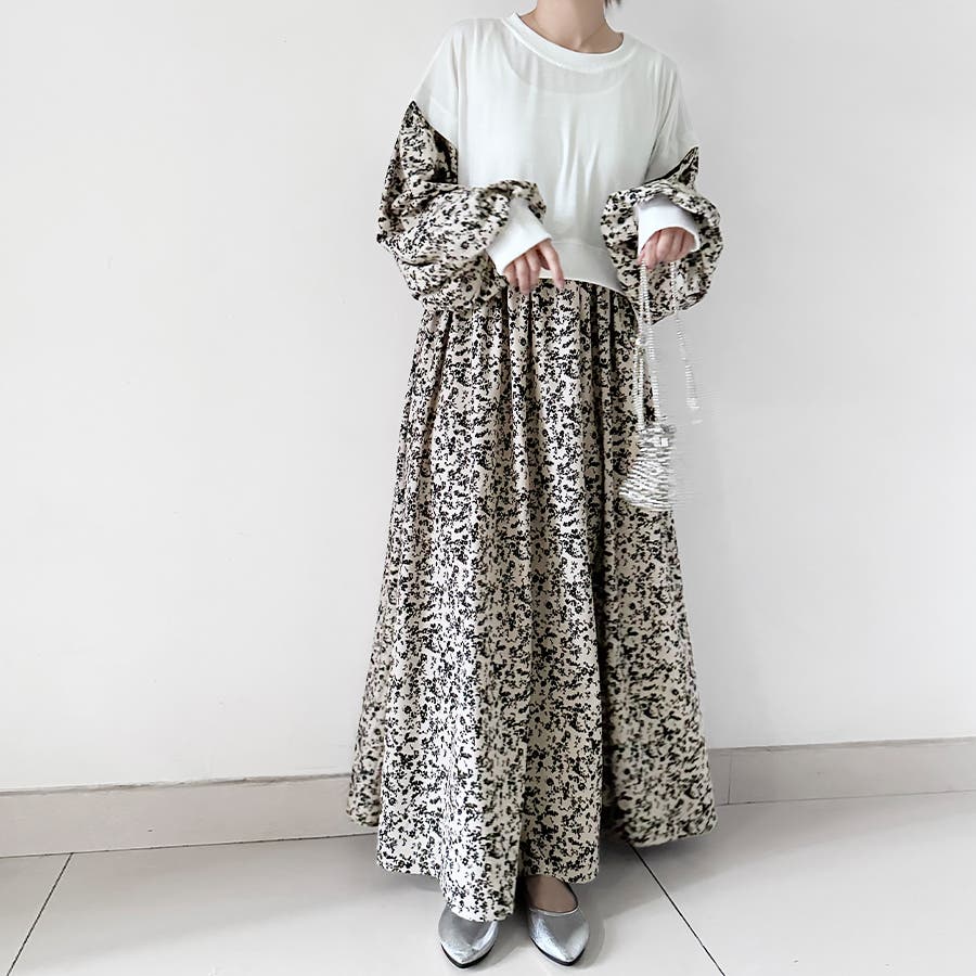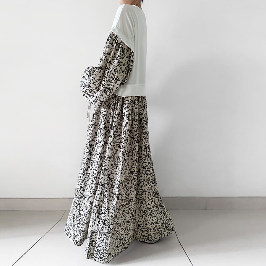 ゆったり着心地抜群なのに綺麗見えするドッキング花柄ロングワンピース♪