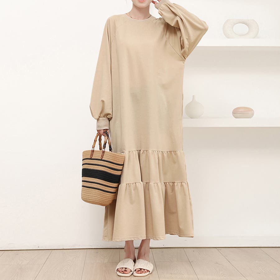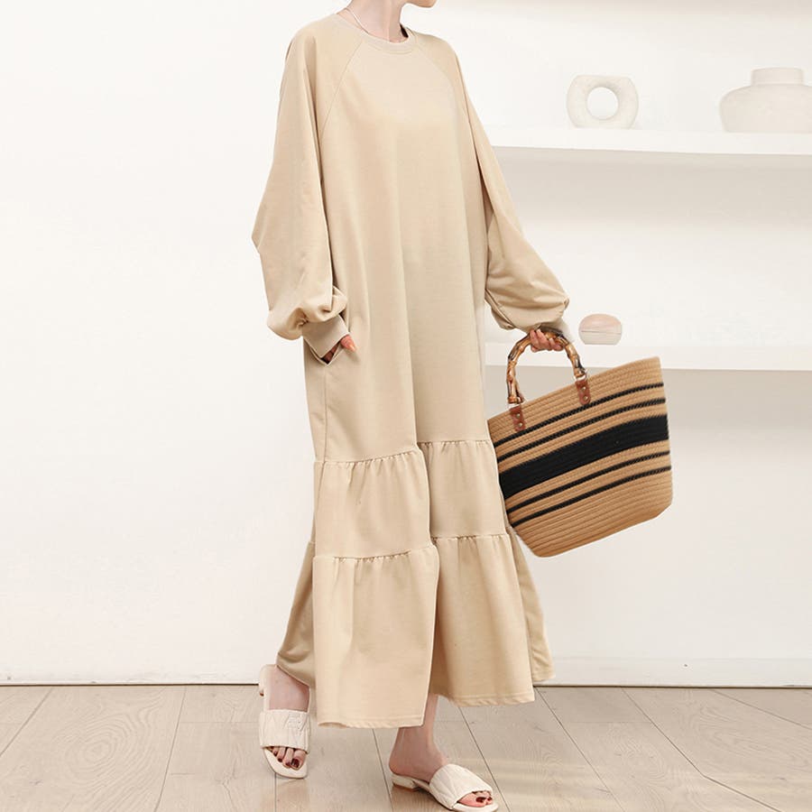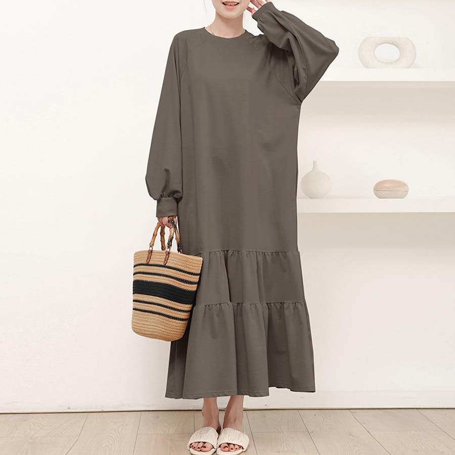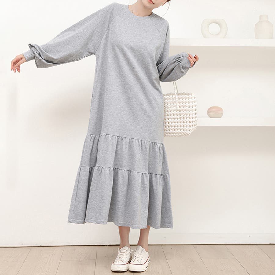 ラグラン袖ティアードワンピース