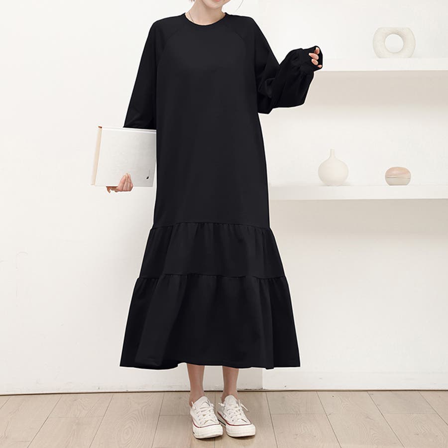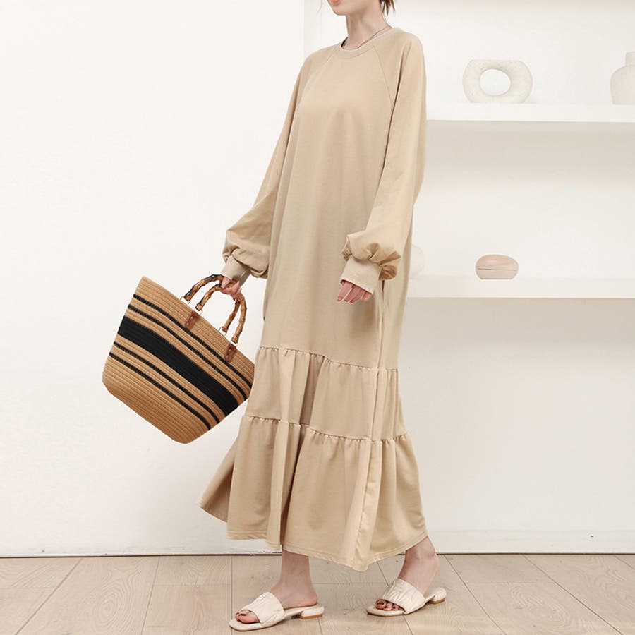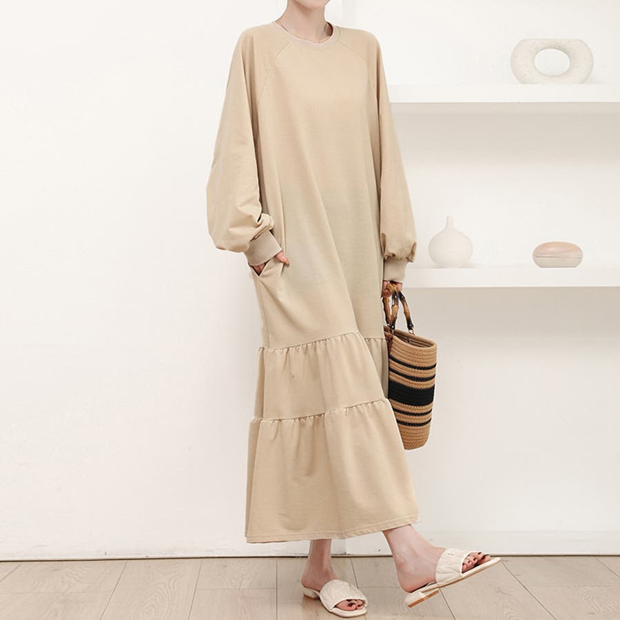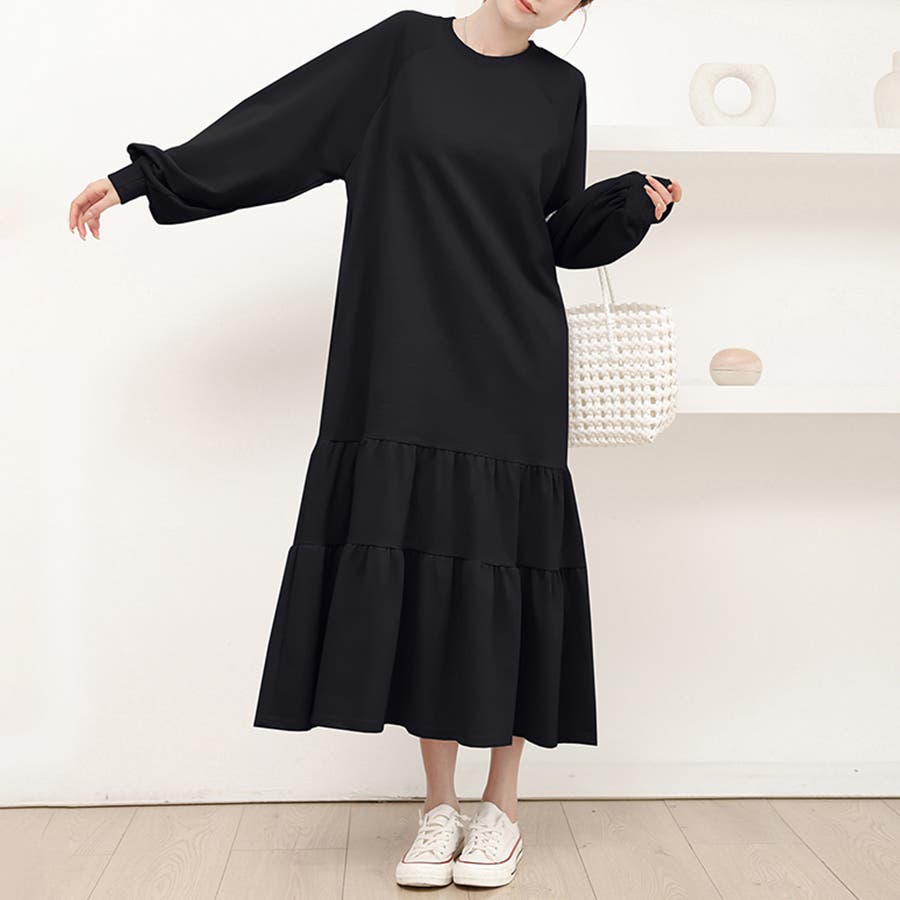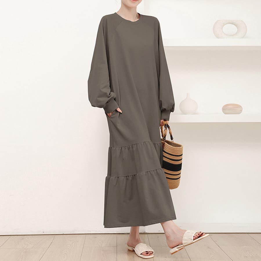 ラグラン袖ティアードワンピース