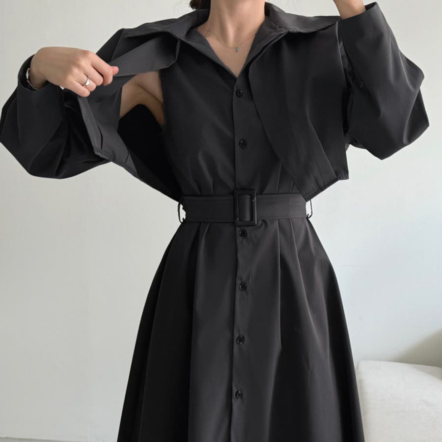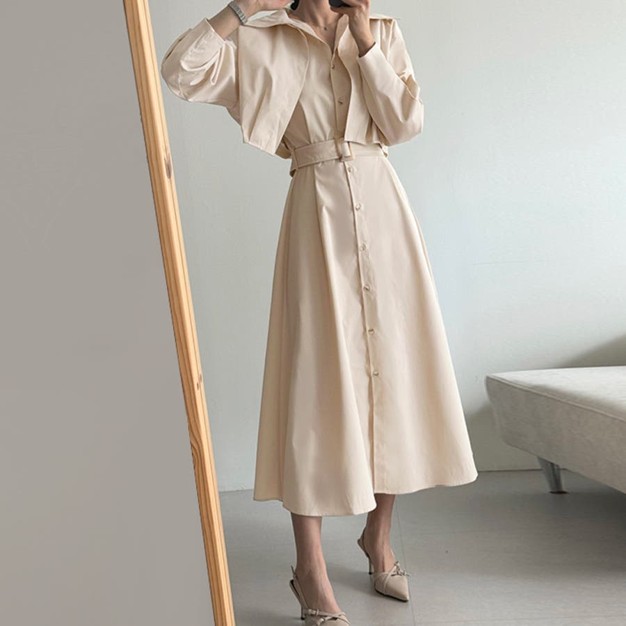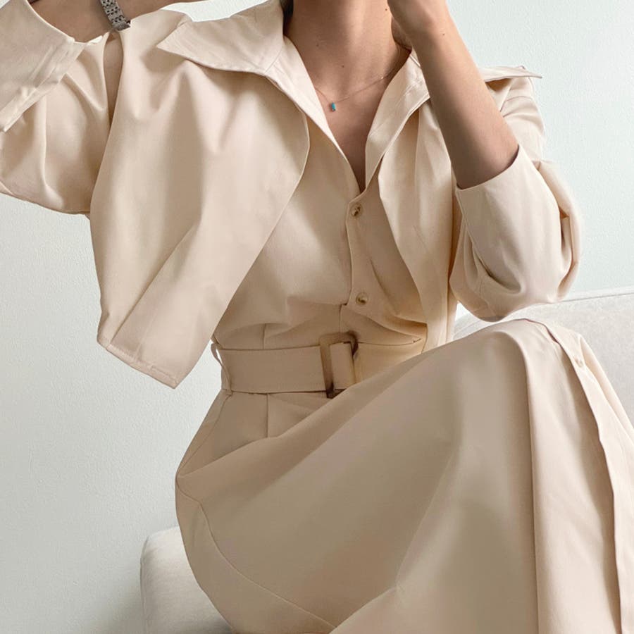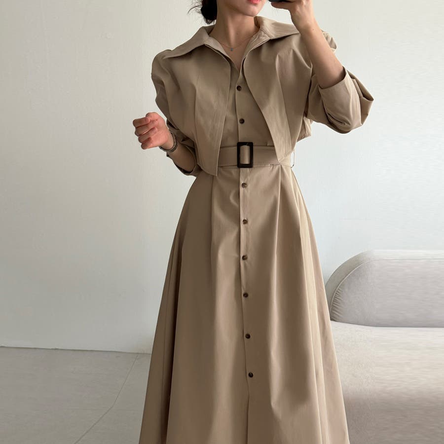 ショート丈ジャケット&ウエストベルト前開シャツワンピース