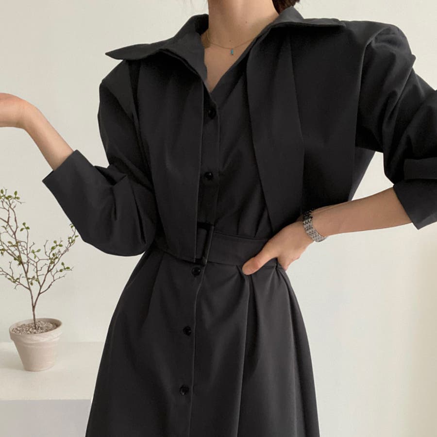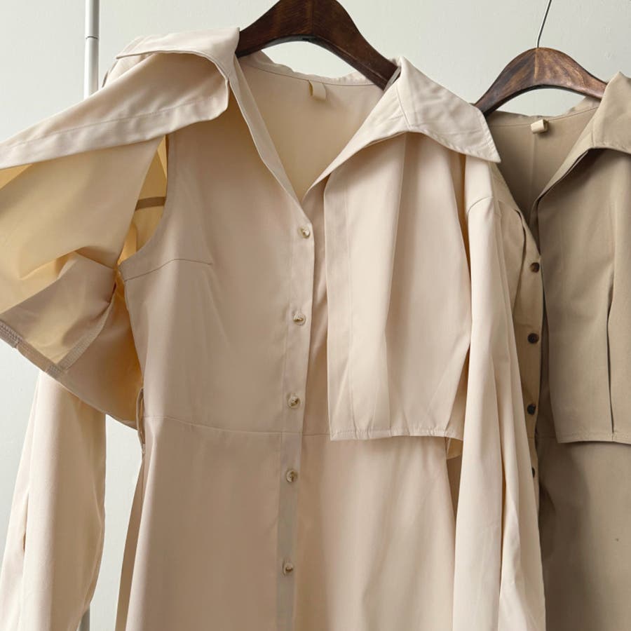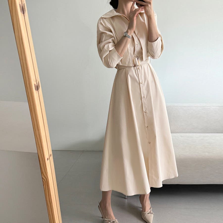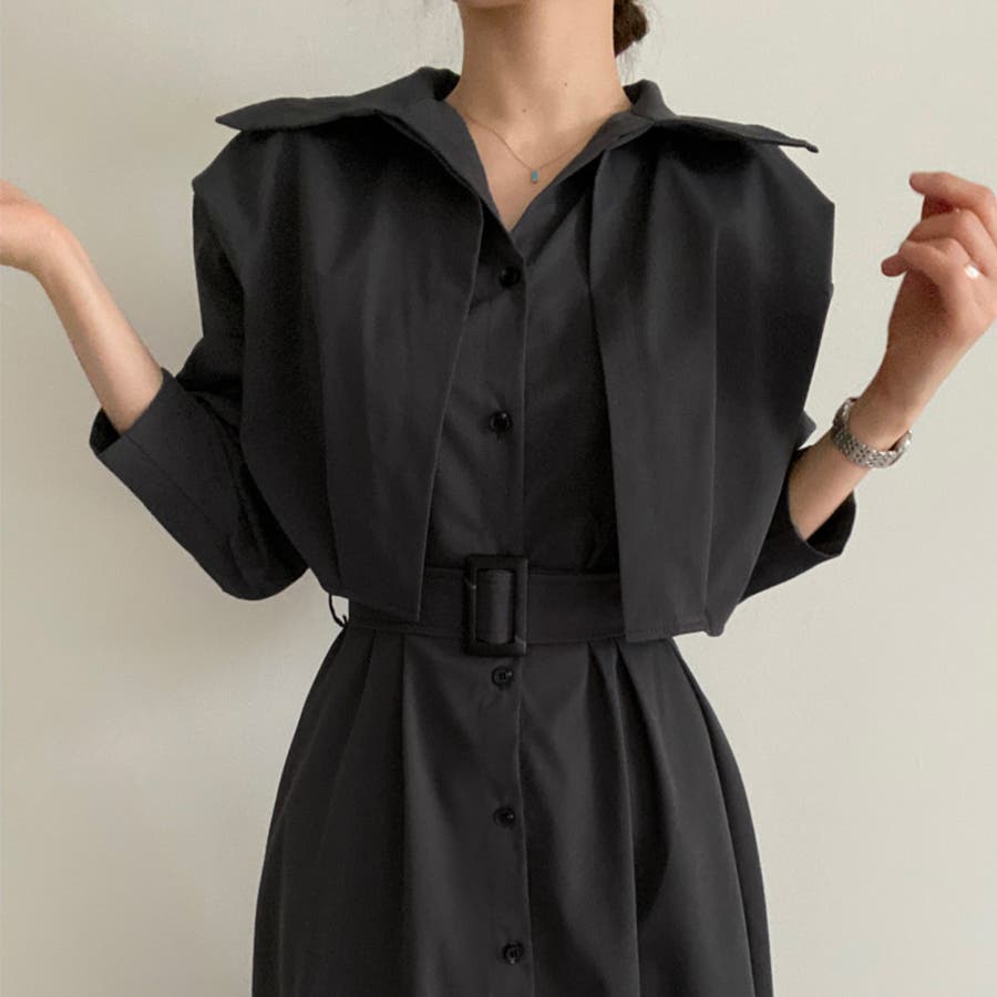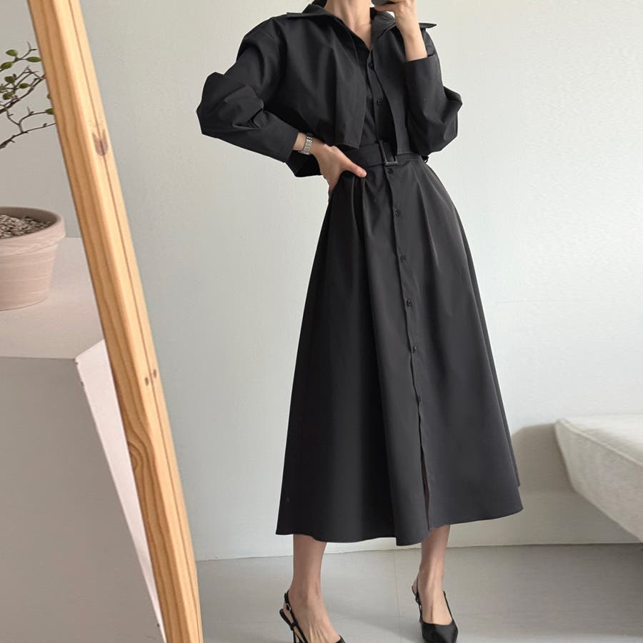 ショート丈ジャケット&ウエストベルト前開シャツワンピース