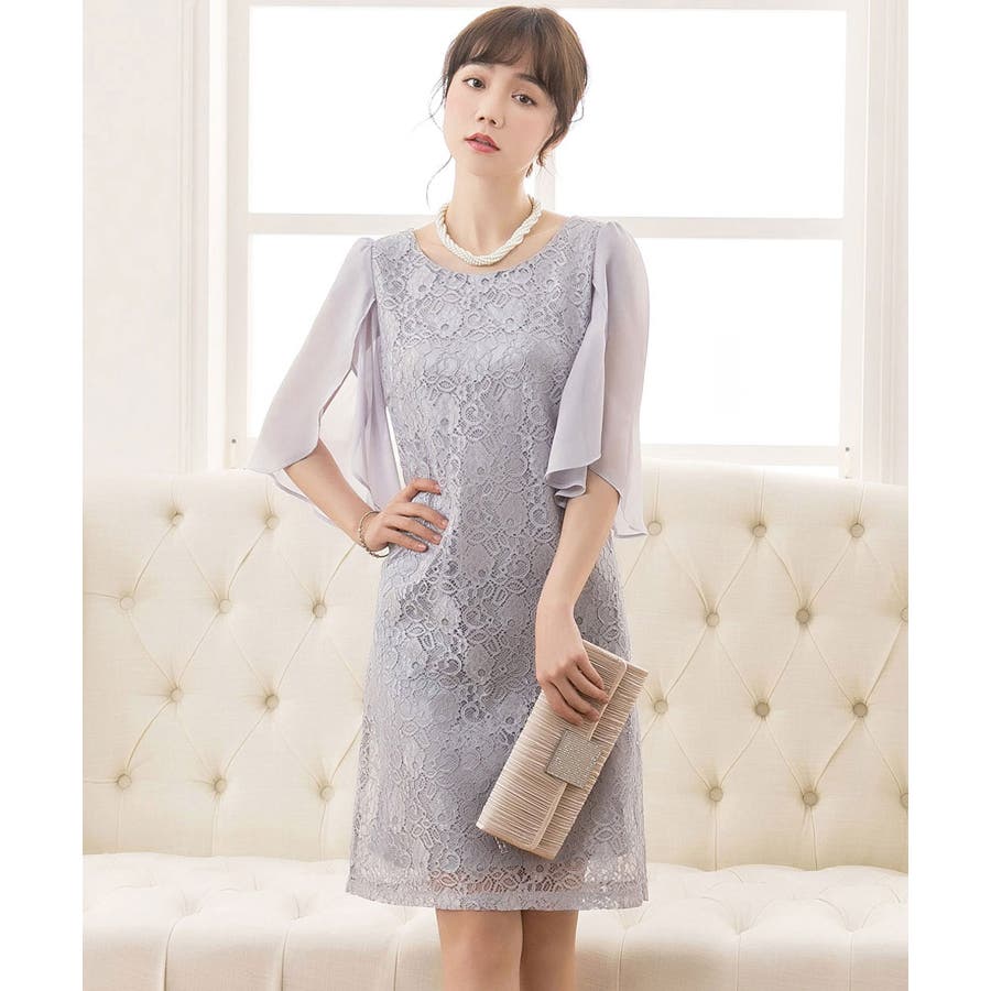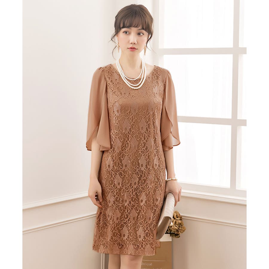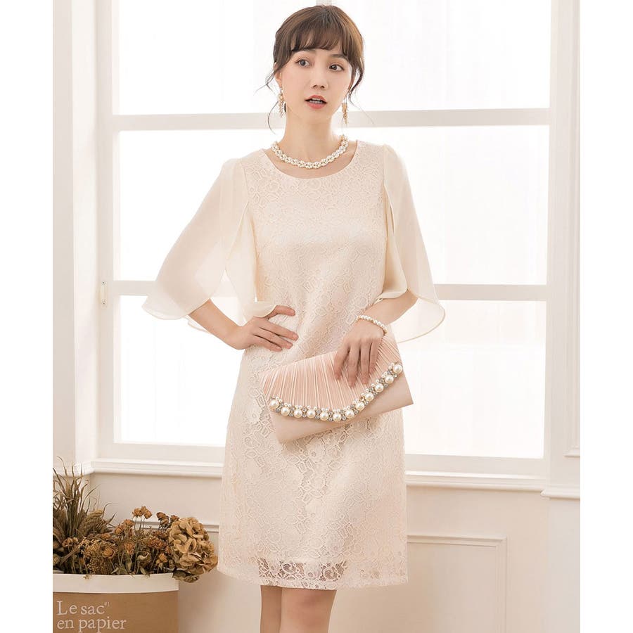 軽やかなシフォン素材のフリル袖と繊細なレースデザインで魅了するワンピース