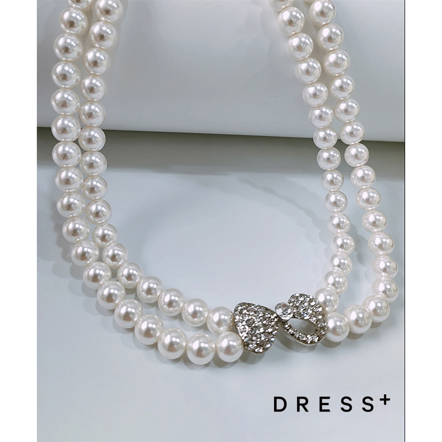 まるでリアルパールのような美しい輝きの艶めくフェイクパールネックレス。華やかなパールの輝きがデコルテを美しく飾り立てます。統一感のあるパールを2連に重ねたセンターにはリボン型のビジューをつけてよりフェミニンなデザインに。限りなくリアルに近い上質なフェイクパールを使用。艶めく輝きが上品リッチな質感です。着脱が簡単な差し込み式の留め具です。取り外す際も抑えを押しながら引き抜くだけなので手間を感じません。
