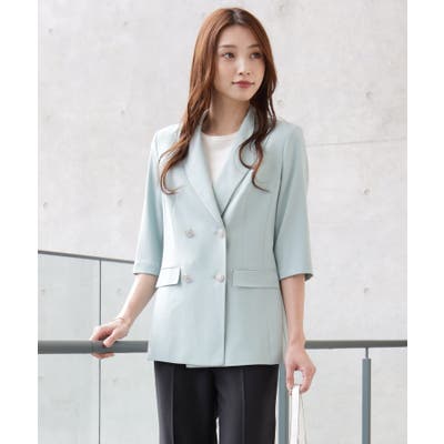 上品なミントグリーンが目を引く五分袖ジャケット。デイリーからオフィス、ちょっとしたお出かけまで、幅広いシーンで使える万能アイテムです。
