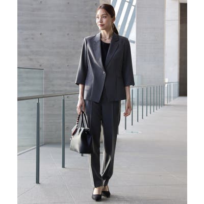 一つボタンのジャケットがカジュアル使いにも便利なセットアップスーツです。五分袖とクロップド丈のすっきり肌見せで涼しげな印象を与えます。それぞれ単品で使えるので、手持ちのアイテムをプラスして普段使いから行事、通勤服まで幅広いシーンで活躍します。
