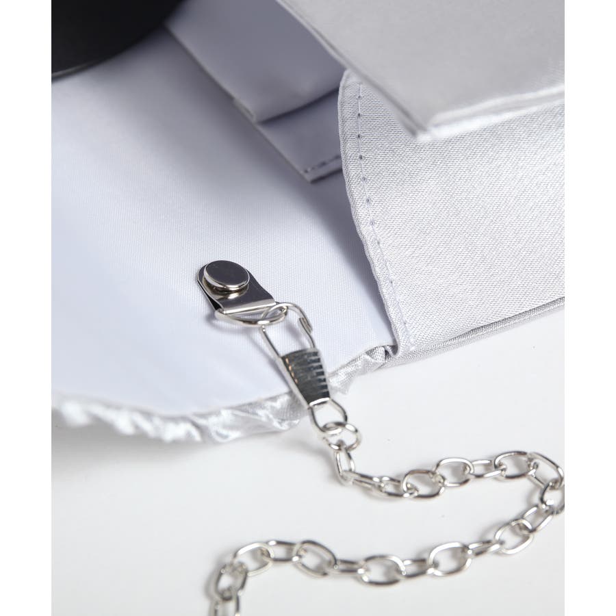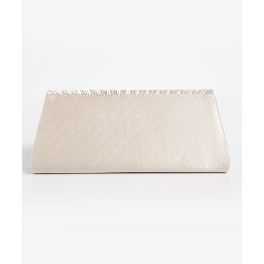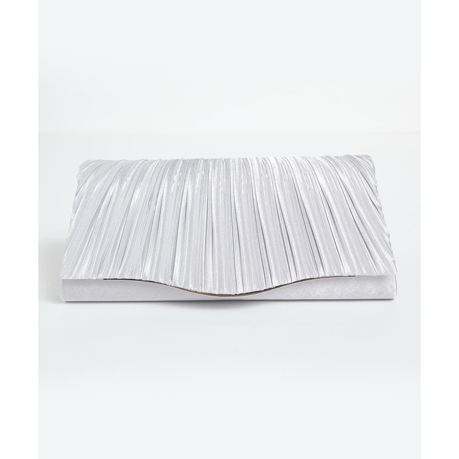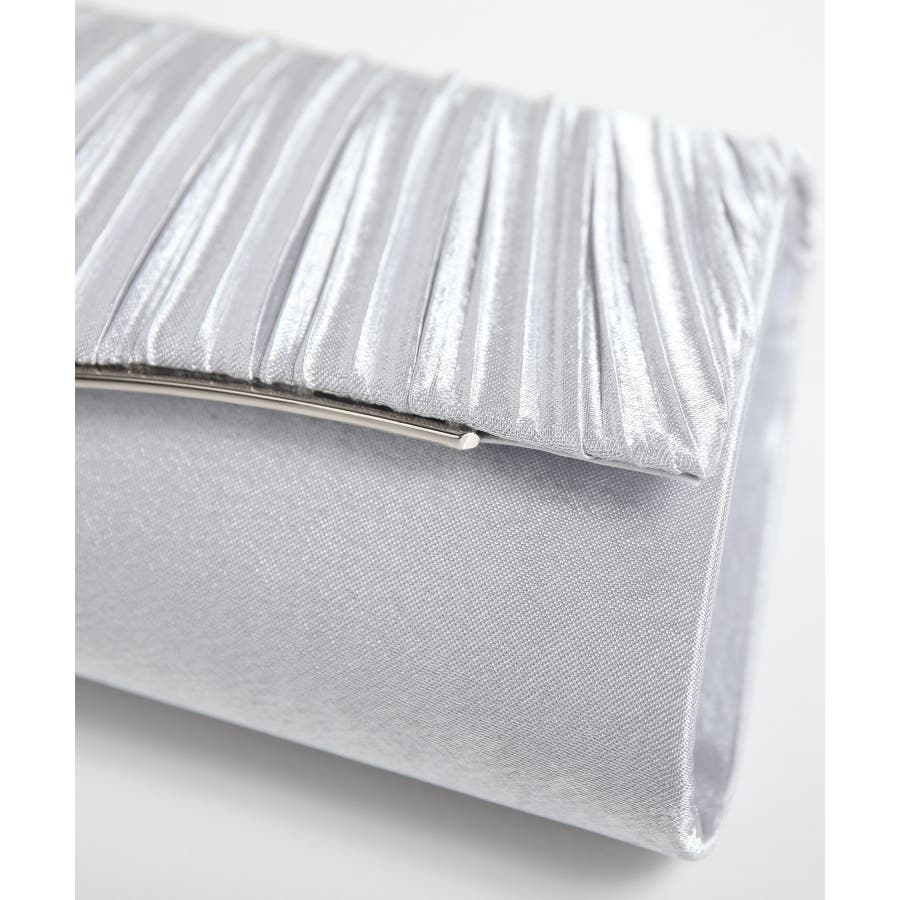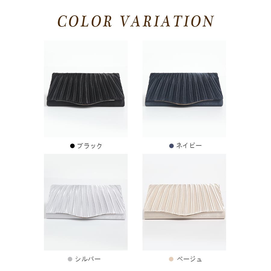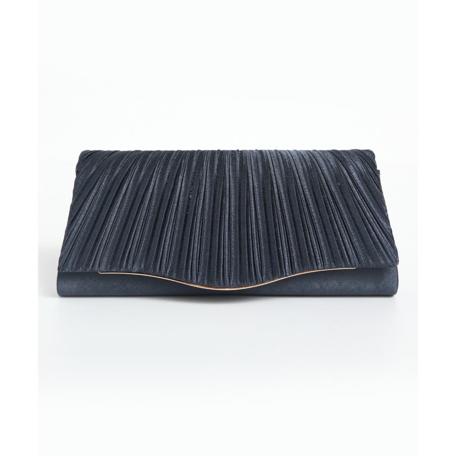 フラップ部分に配置したウェーブ型のメタルフレームが煌めきコーデを華やかに仕上げるパーティークラッチバッグ。