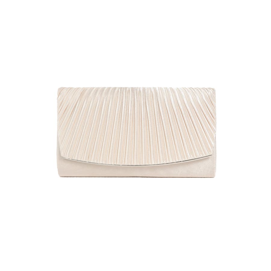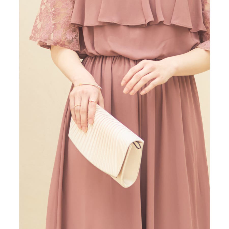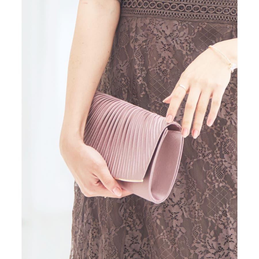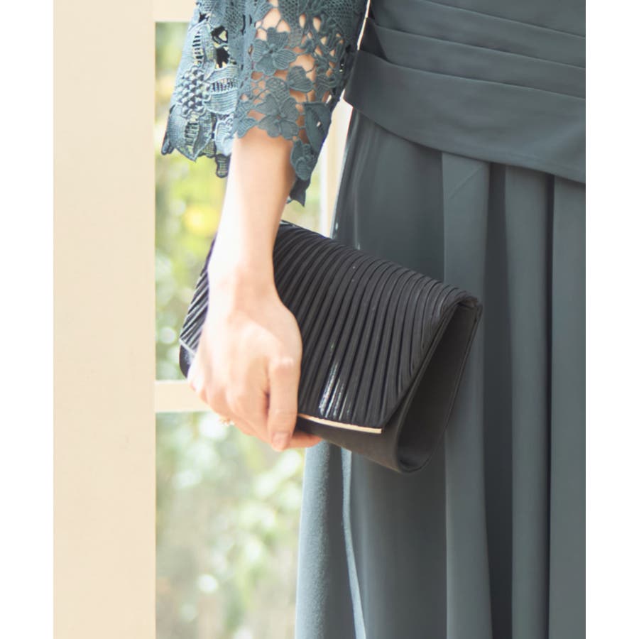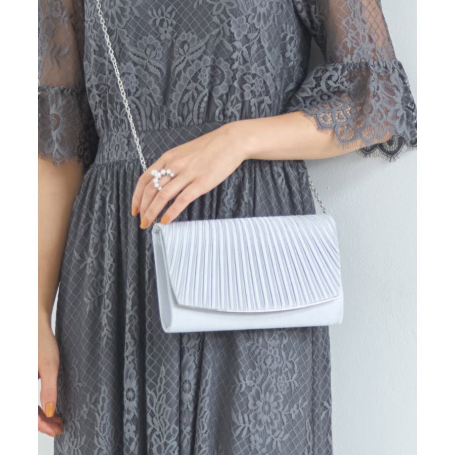 繊細なタックプリーツが煌めきコーデを華やかに仕上げるパーティークラッチバッグ。