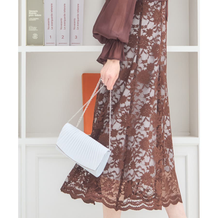 細やかなセパレート状のプリーツデザインがサテンの艶感を際立たせフォマールシーンにぴったりなラグジュアリームードに。