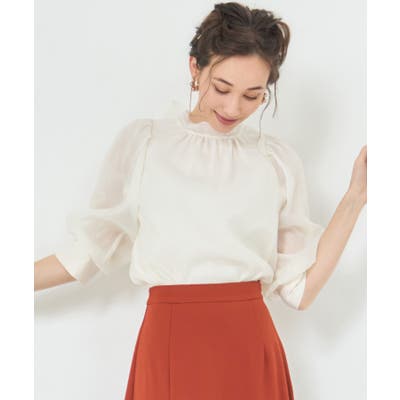 オーガンジーのシアー感がトレンドライクな七分袖ブラウス