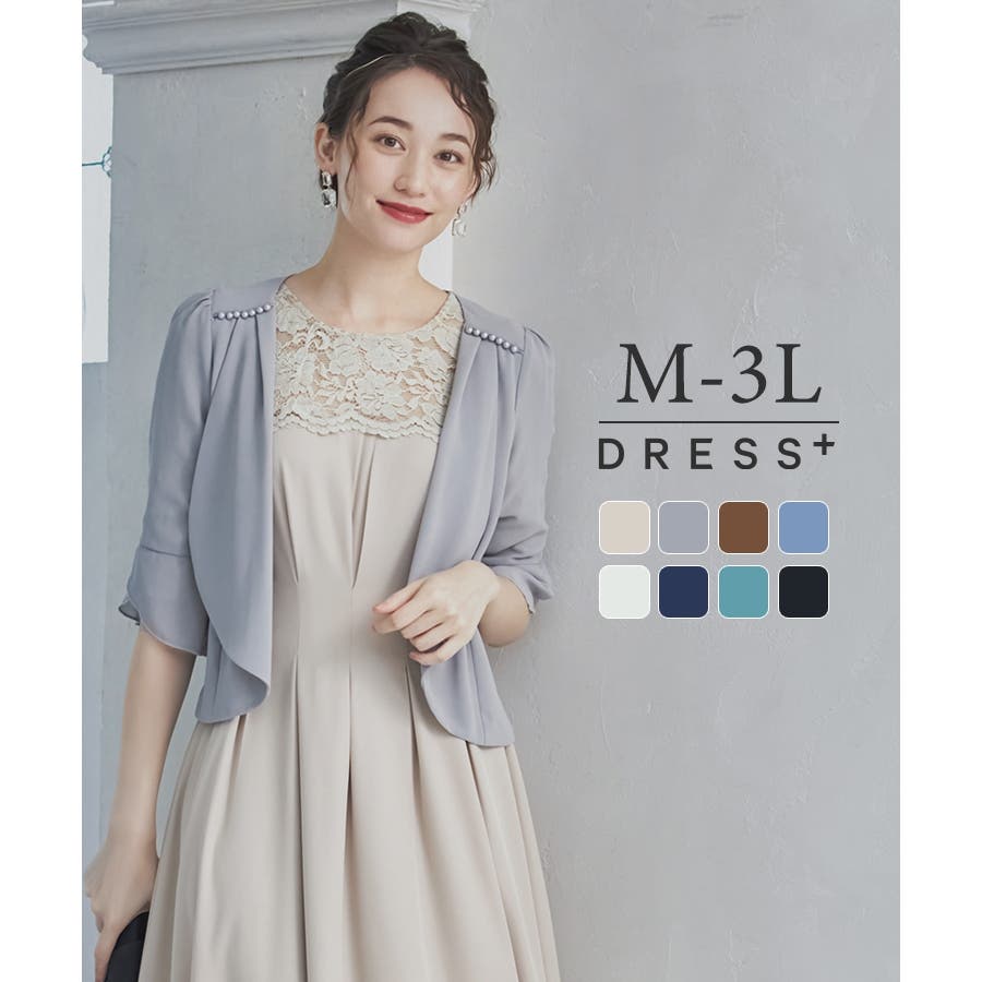 結婚式の親族で、落ち着いたボレロを探していたので、ジャケットほど堅くならずにとてもよさそう。着てみて、レースワンピースにあわすのでゆったりめでサイズはLを選びました。重ねてちょうどいいサイズでよかったです。肩のパールも綺麗めでいい感じです。