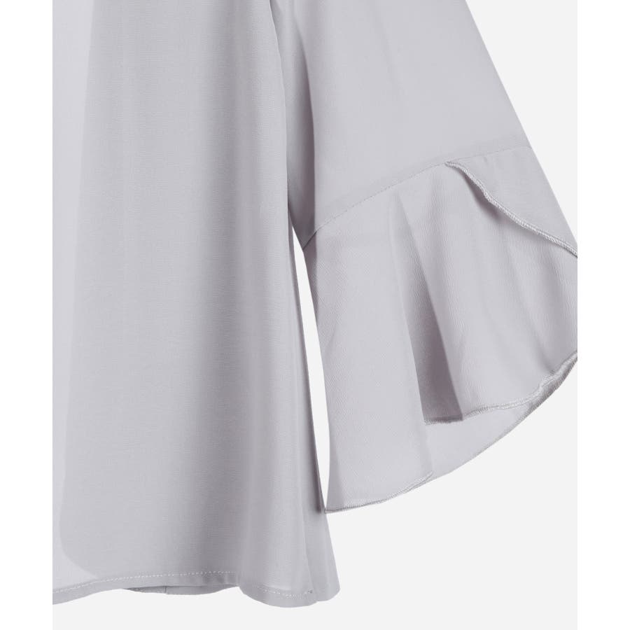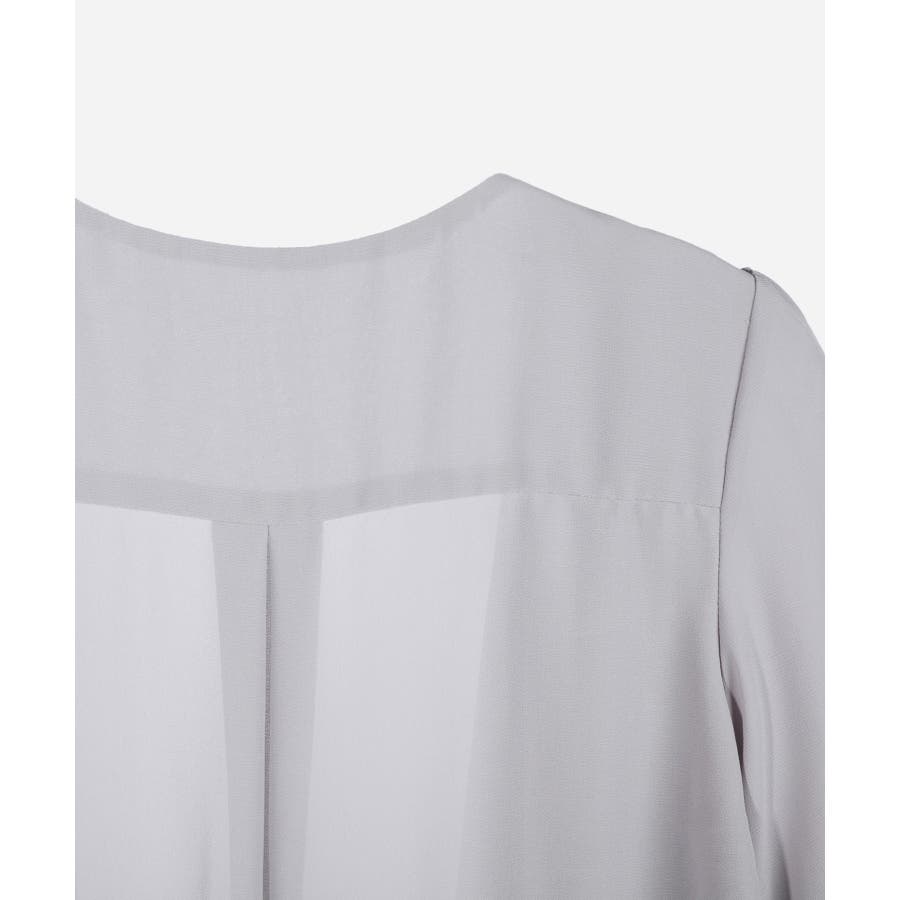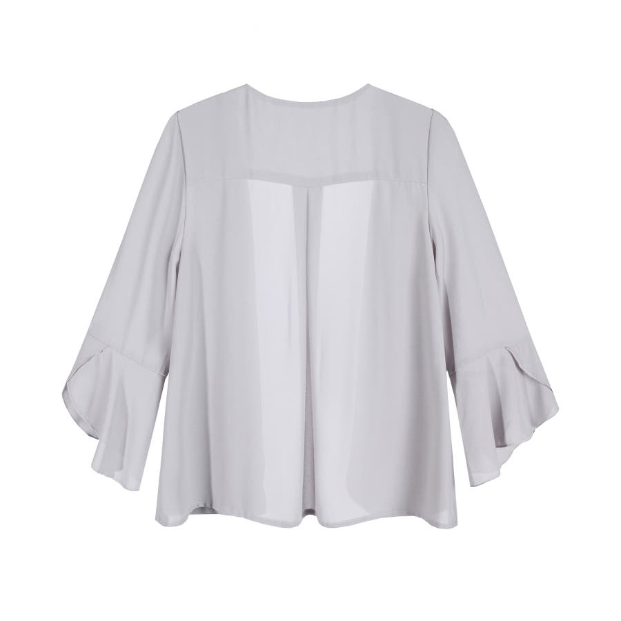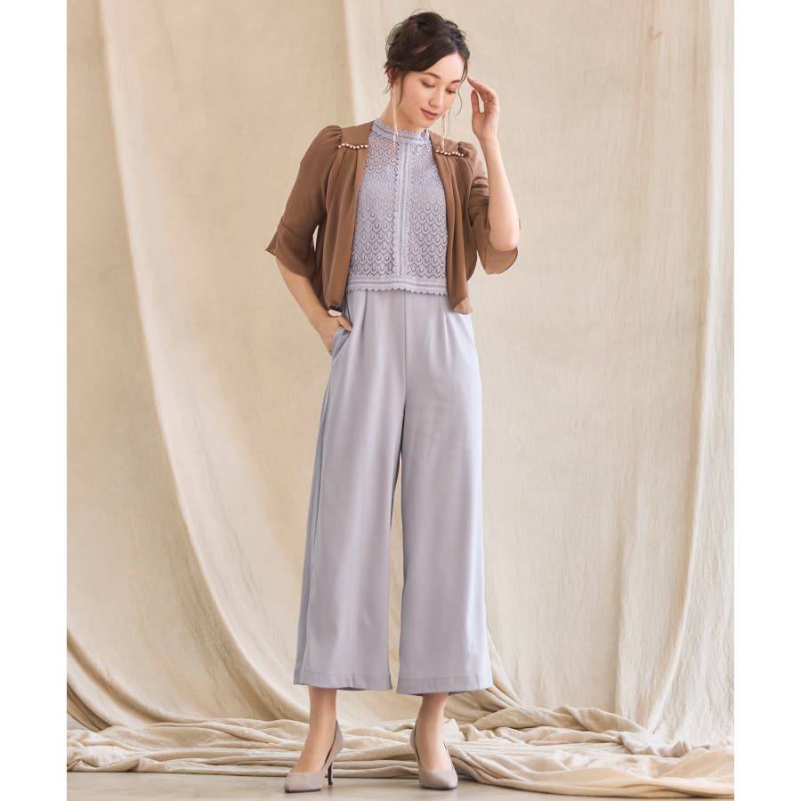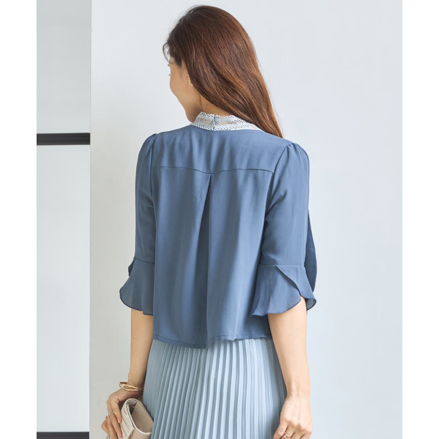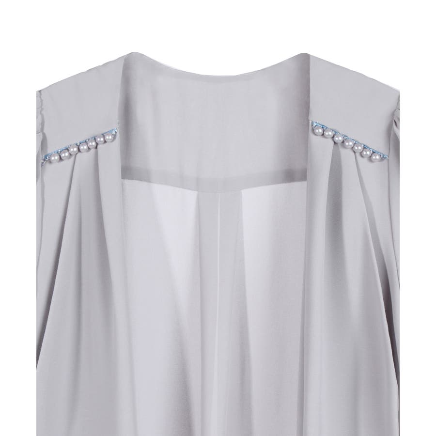 着回し力抜群のフリルシフォン風ボレロ。フリルをたっぷりとあしらった、フェミニンなボレロです。透け感のある柔らかなシフォン風素材によって、レイヤードしても重たくなりすぎず、軽やかな印象に。羽織るだけで簡単におしゃれ見えが実現できるアイテムです。フロントの大きく開いたデザインによって、胸元のアクセサリーやドレスの美しさを引き立てます。ドレスとのバランスが取りやすく、着回し力も抜群です。背面のインバーテッドプリーツによって、背中のラインにピッタリとフィット。無駄のない美しいシルエットを実現します。肩周りも動かしやすく、ノンストレスで着こなせるのもポイントです。両肩にあしらったバールビジューが、ラグジュアリー感をプラス。華やかなパーティーシーンで、繊細な輝きを放ちます。