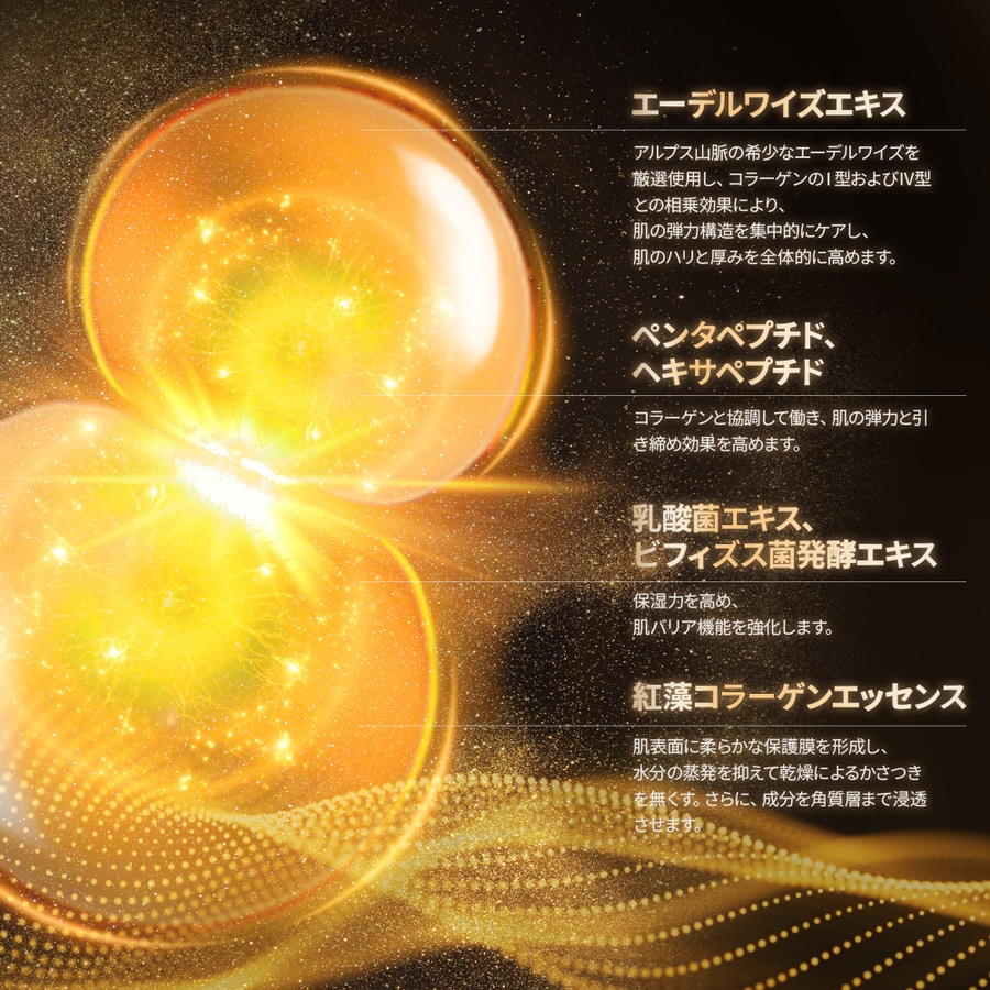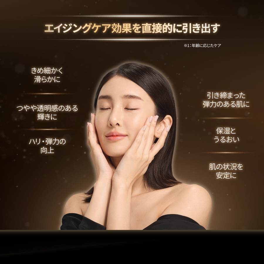 ハリを引き締めふっくらとしたボリューム感を与え、たっぷりのうるおいでみずみずしく保湿。