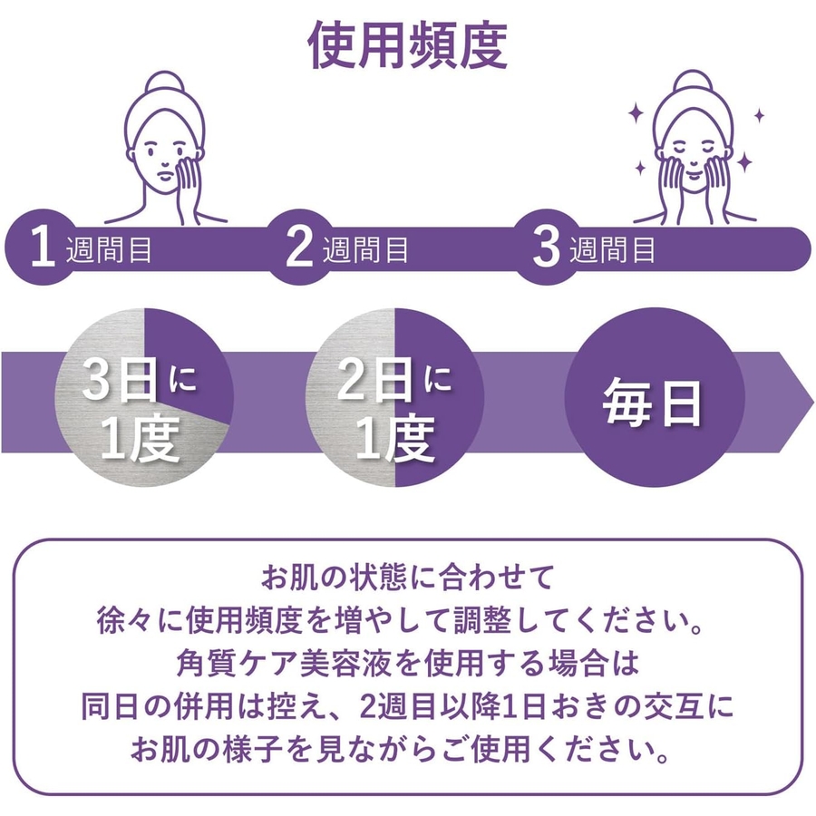 ※角質ケア美容液を使用する場合は同日の併用は控え、2週目以降1日おきの交互にお肌の様子を見ながらご使用ください。