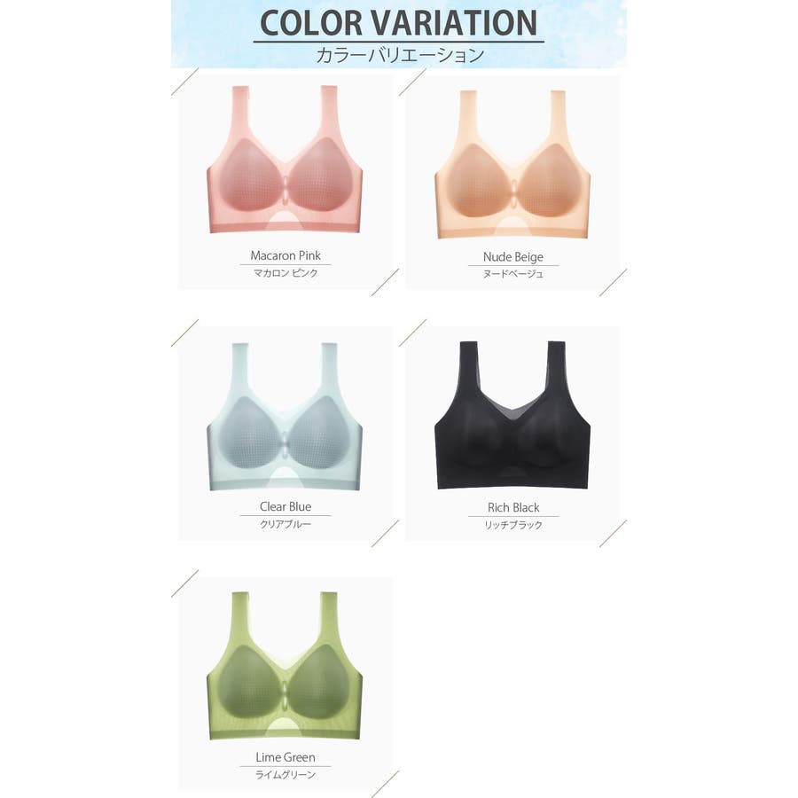 夏の暑さに対応するノンワイヤー、極薄で接触冷感、ひんやりクールな着心地で、シームレス設計が肌にやさしくフィット。