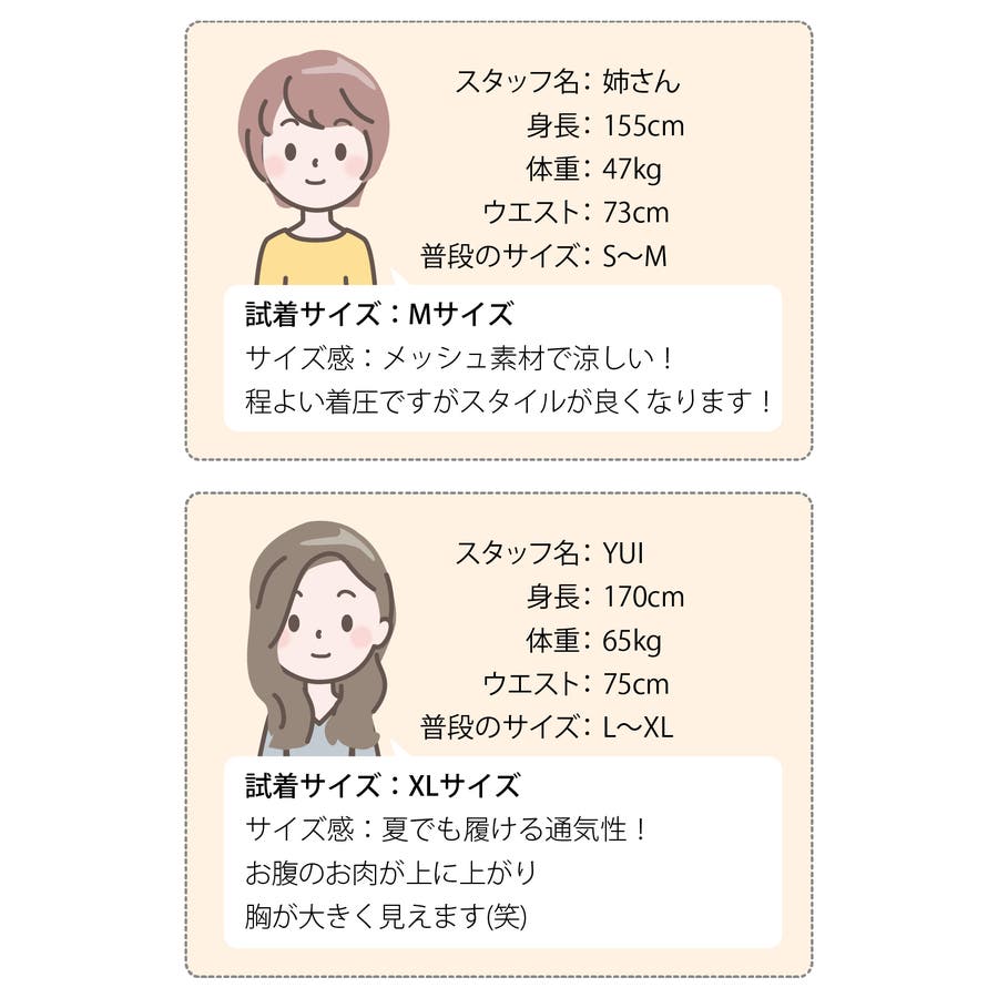 お腹はしっかり抑えてくれますがヒップは比較的楽です。さん (40代 / 女性 )購入アイテム:カラー ブラックサイズ XLサイズサイズ感:ぴったり