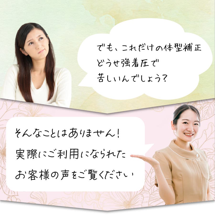 コメント:ウエスト補正は75cmから72cmの-3cmでしたが、お腹のお肉が上に上がり胸が大きく見え、トータルスタイルが良くなりました。