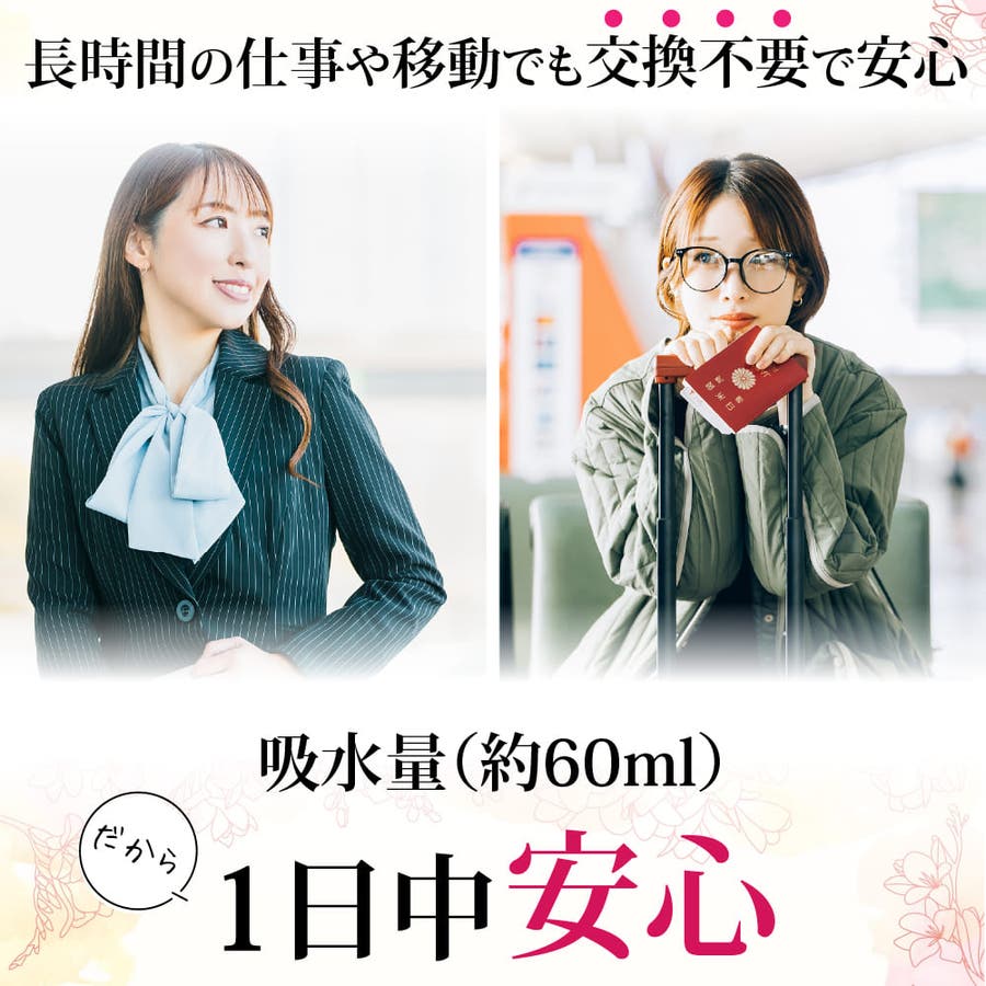 約60mlの吸水量だからトイレに行く回数も少なくすみます。