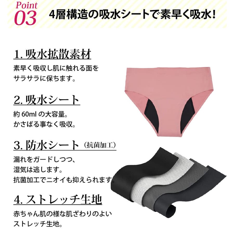 商品カテゴリ:サニタリー ショーツ 生理用 ショーツ 生理ショーツ 吸収型 軽失禁ショーツ 失禁ショーツ 尿もれ 尿漏れ 肌荒れ 肌あれ かぶれ 産褥ショーツ 初潮パンツ 寝る時用 おやすみ用 横漏れ 横もれ 横モレ しない 漏れない レディース 大きいサイズ Sサイズ Mサイズ Lサイズ LLサイズ 2Lサイズ XLサイズ 3Lサイズ 2XLサイズ XXLサイズ 4Lサイズ 3XLサイズ XXXLサイズ 5Lサイズ 4XLサイズ XXXXLサイズ ピンク ライトピンク ブラック ベージュ ラテ グリーン 黒 緑 10代 20代 30代 40代 50代 60代 母の日 実用的