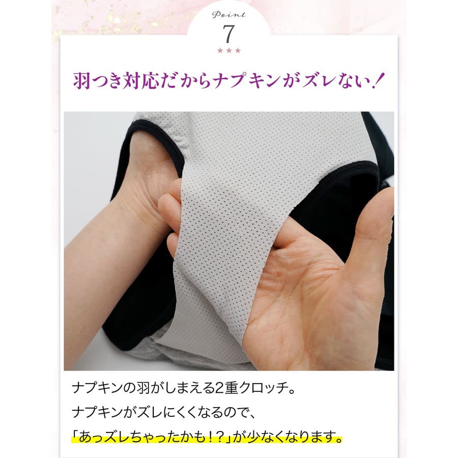 羽つきナプキン対応だから、ナプキンもズレにくいので、憂うつな日も気持ちよく。