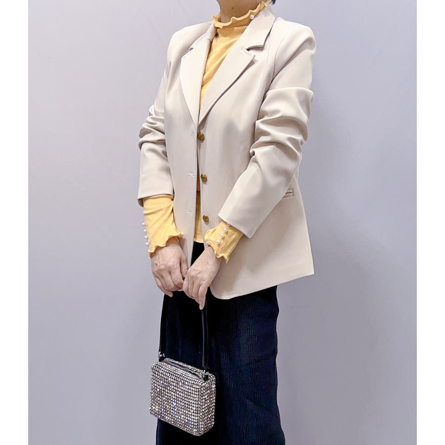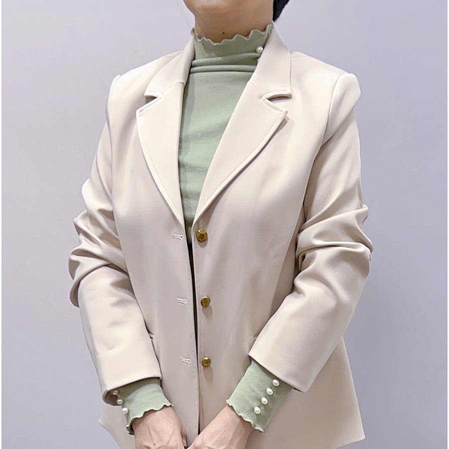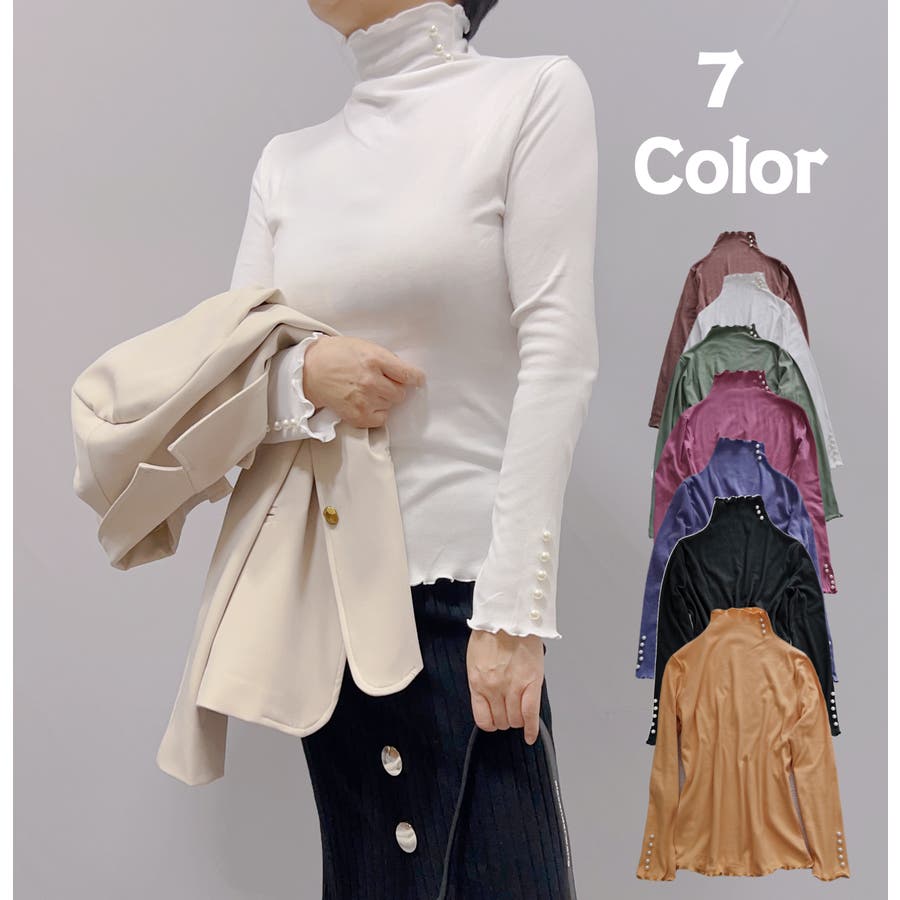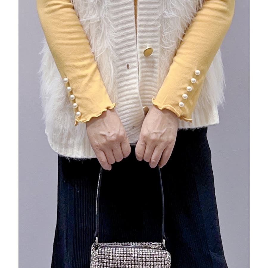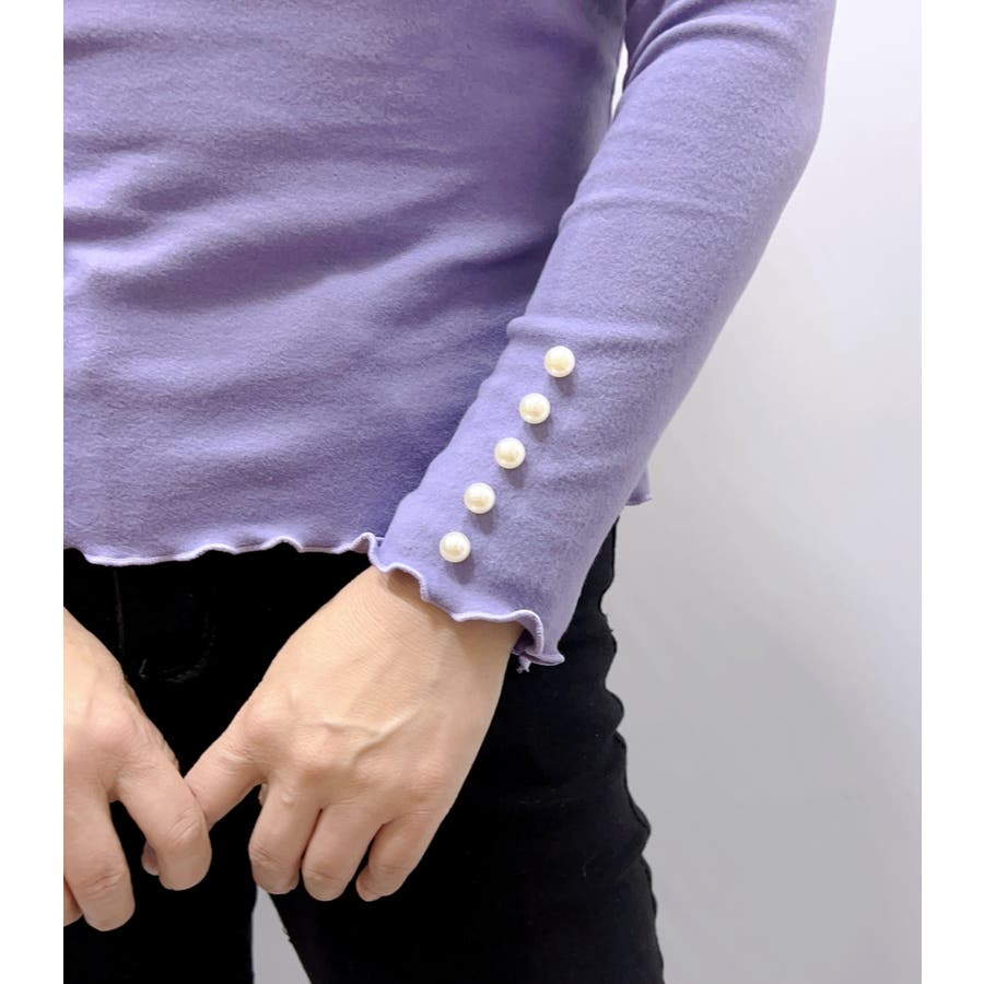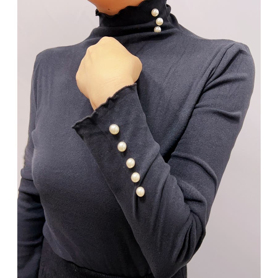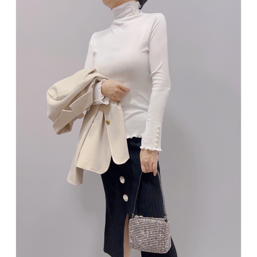パールの付いた、タイトシルエットのハイゲージニットプルオーバー。