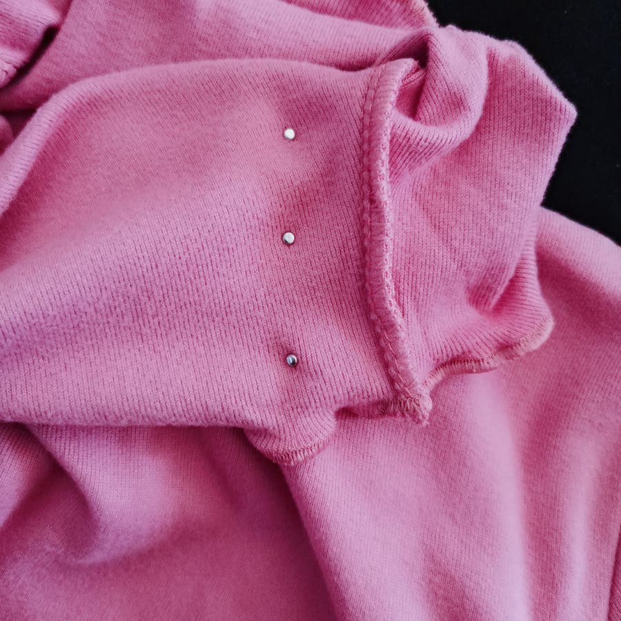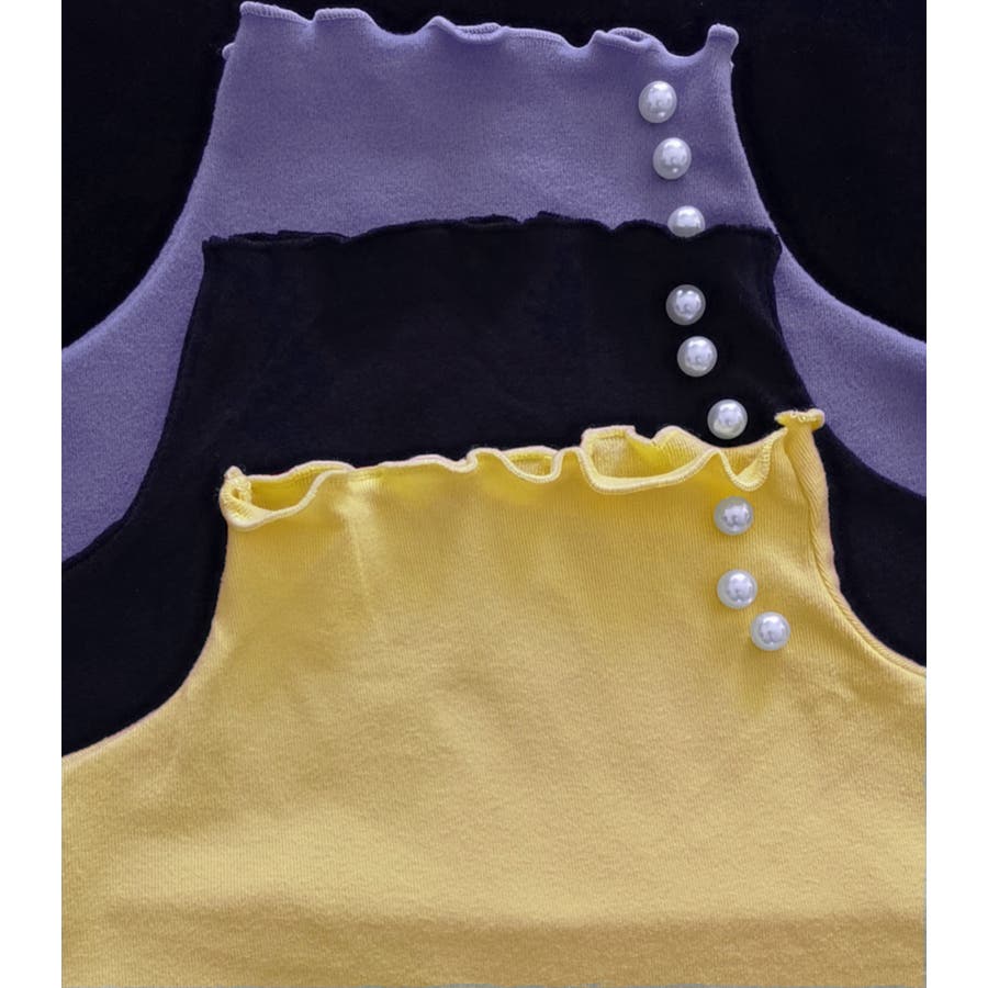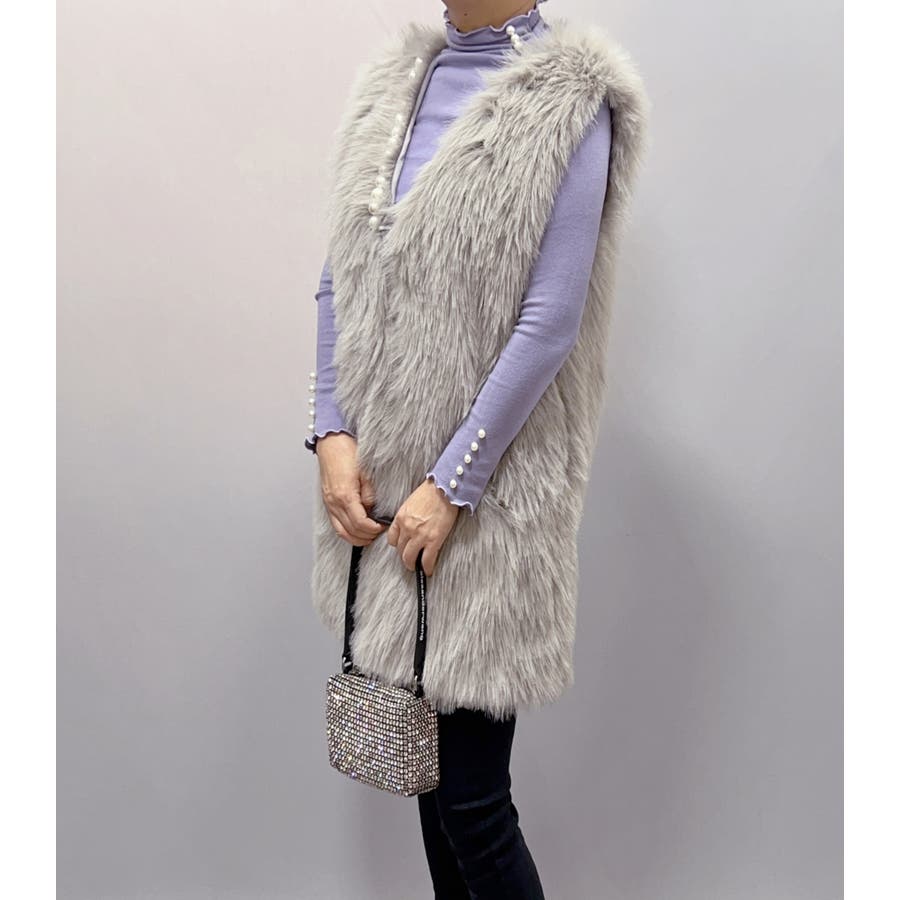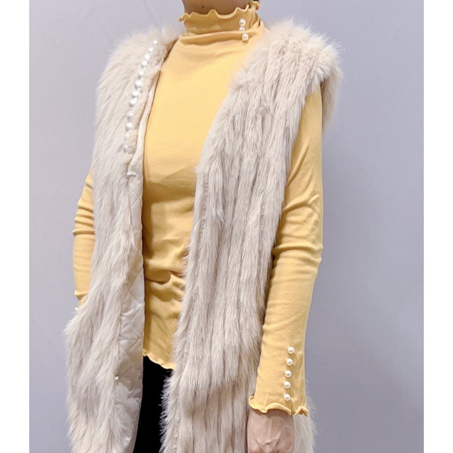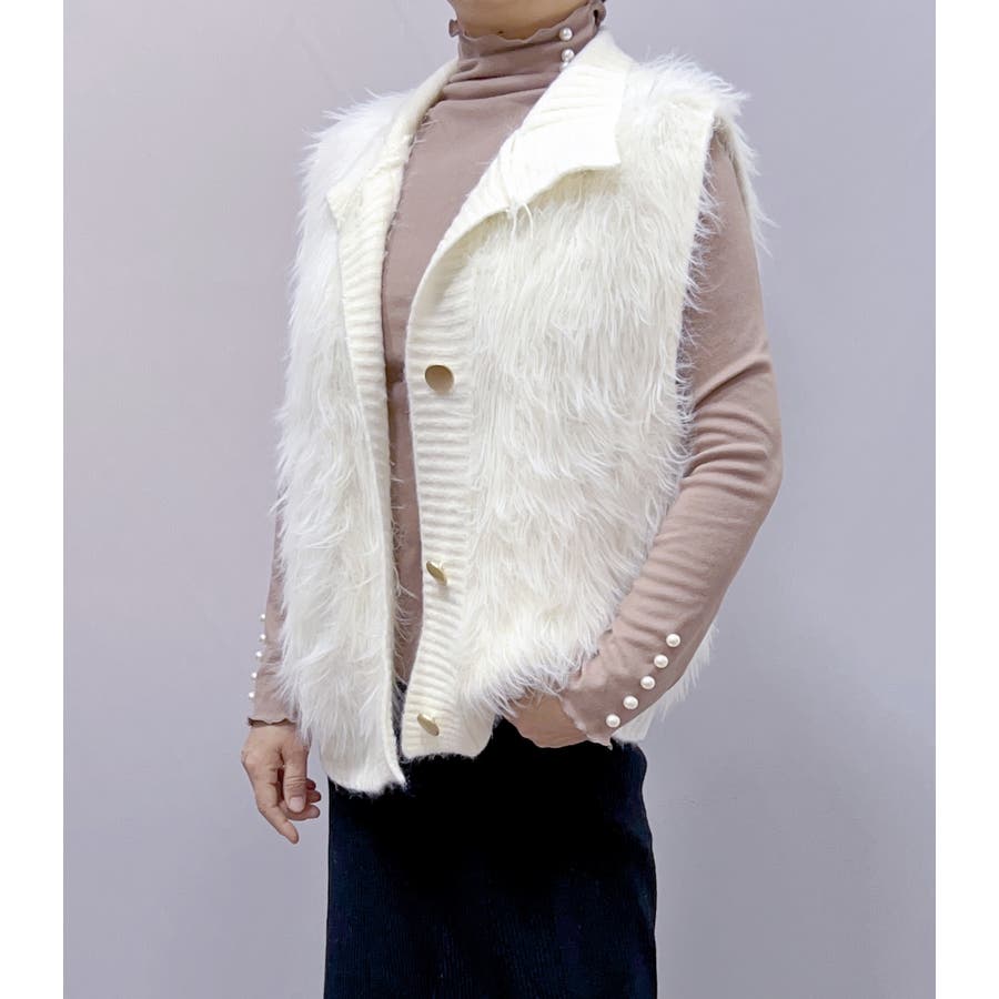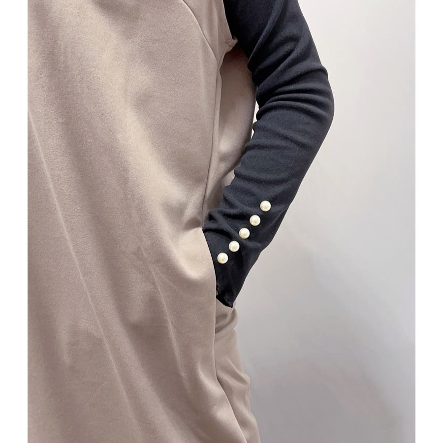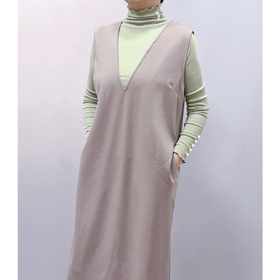 パールの付いた、タイトシルエットのハイゲージニットプルオーバー。