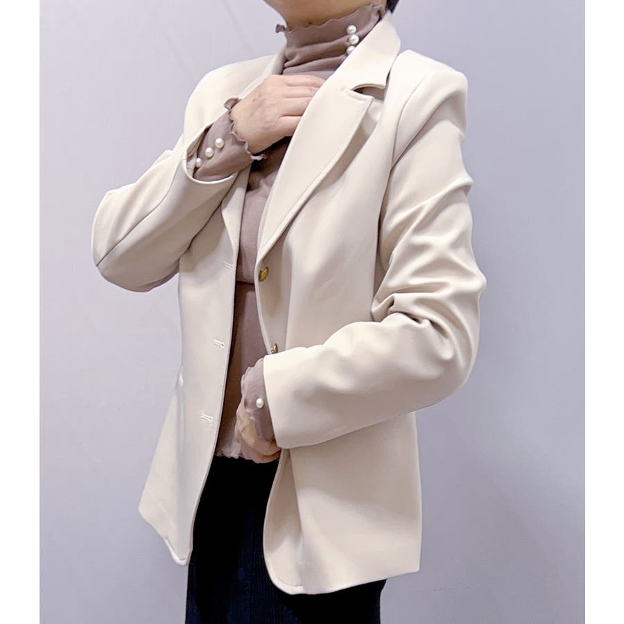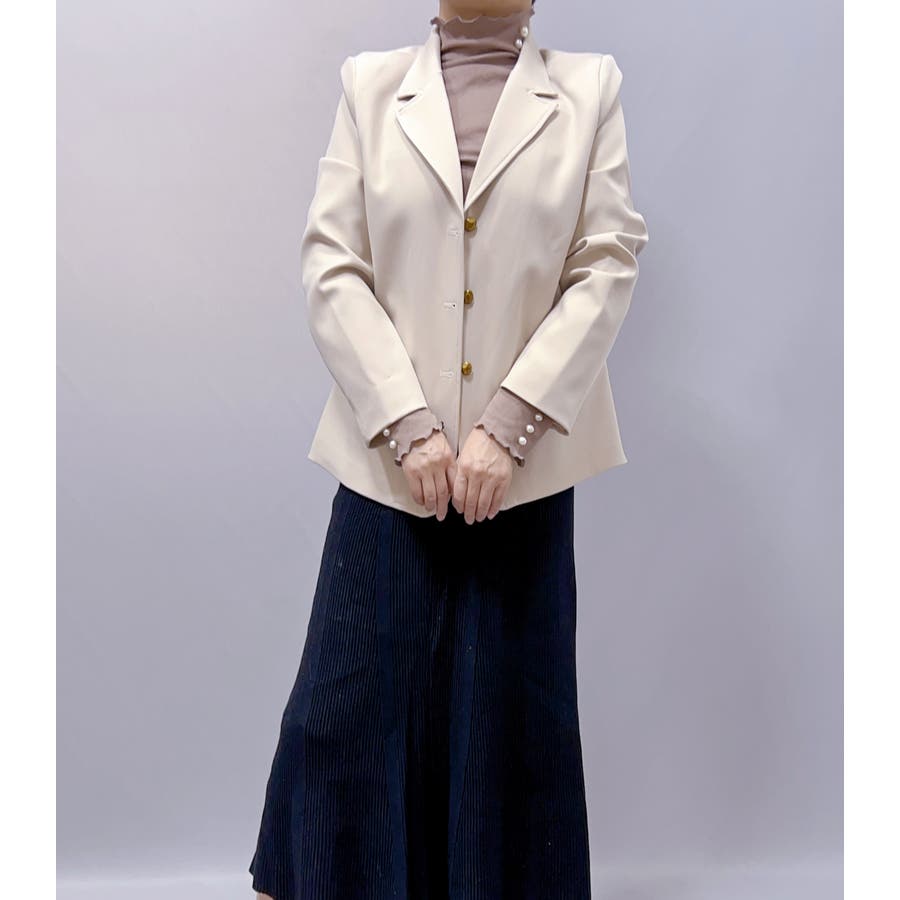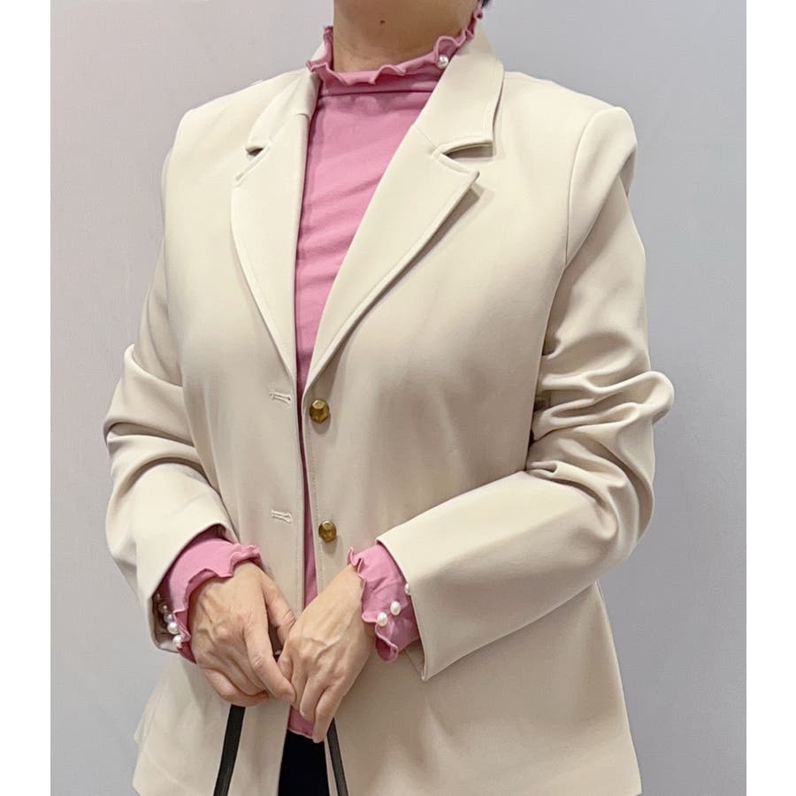 手の甲あたりまでくる袖口のフリルが上品でかわいく、女性らしさをぐっと引き立てます。