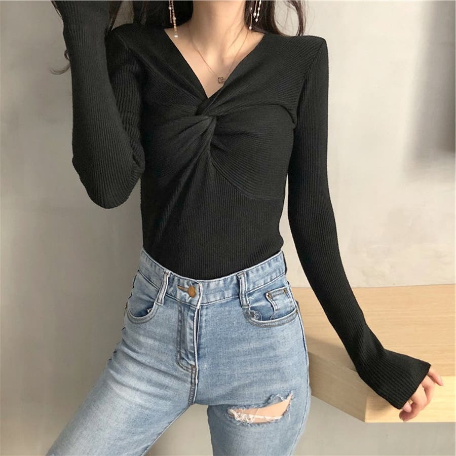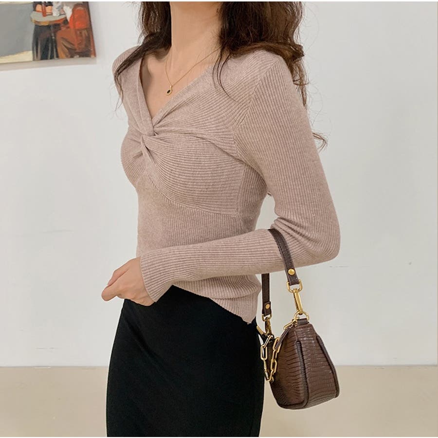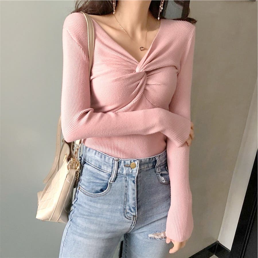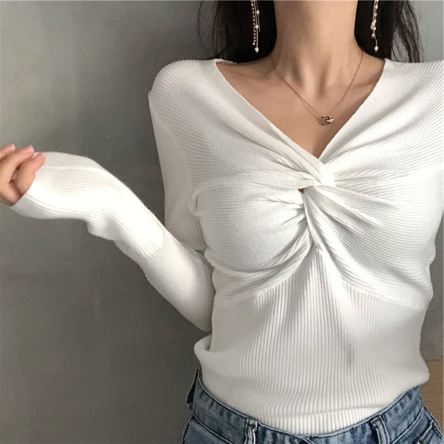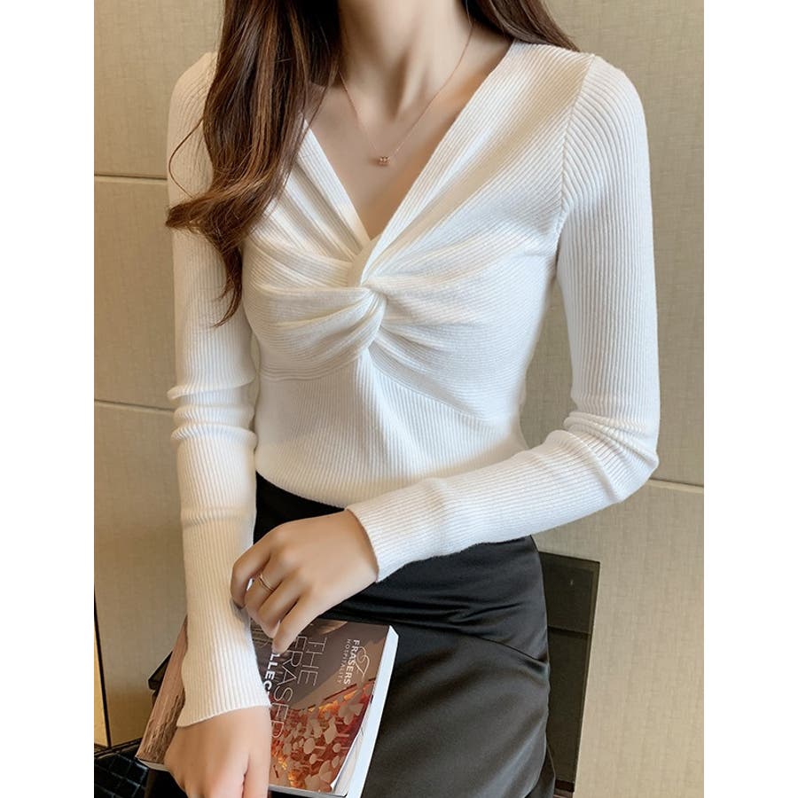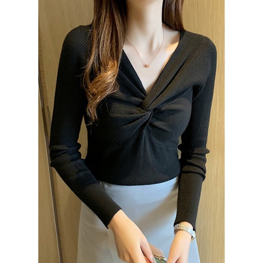 商品カテゴリ:ニット トップス レディース リブ セーター プルオーバー Vネック カシュクール きれいめ セクシー 長袖 春 秋 冬 10代 20代 30代 40代 デザイントップス シンプル 大人カジュアル トップス