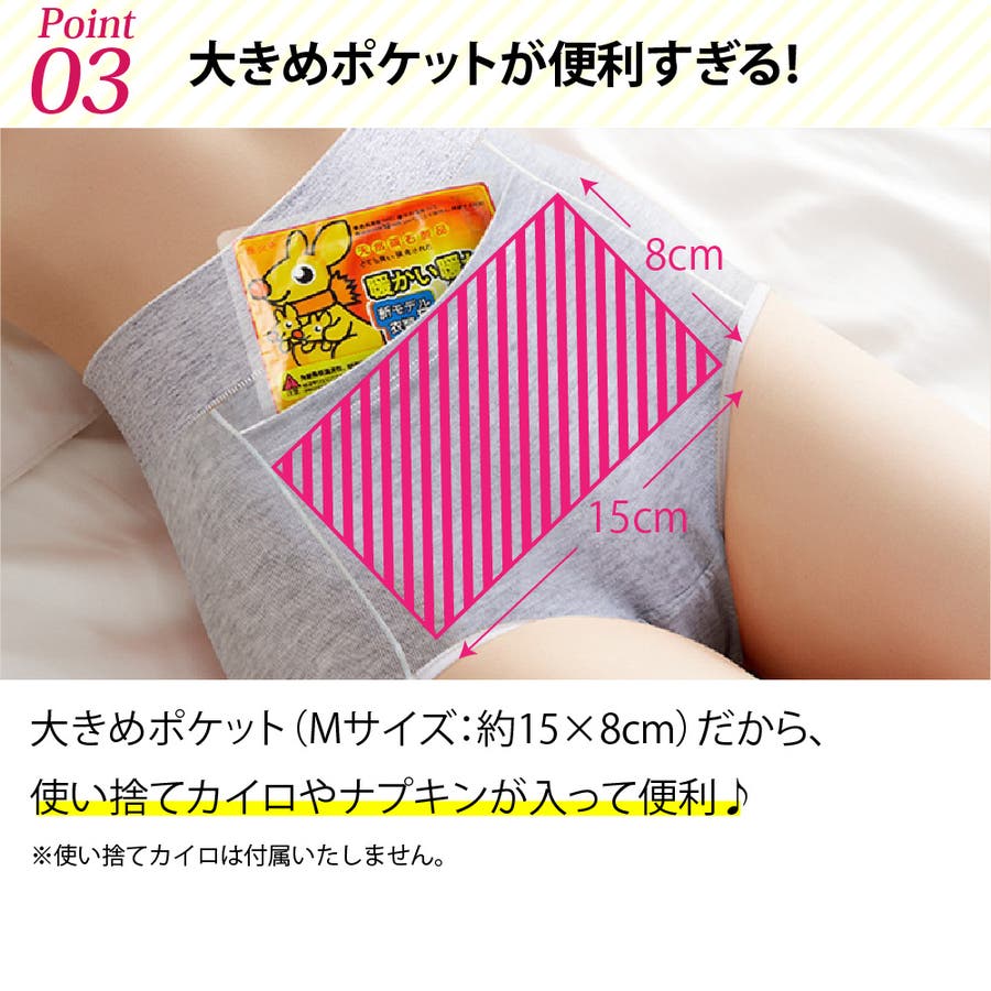 大きめのポケットには寒い季節は使い捨てカイロ、また交換用のナプキンをいれたり出来て便利。