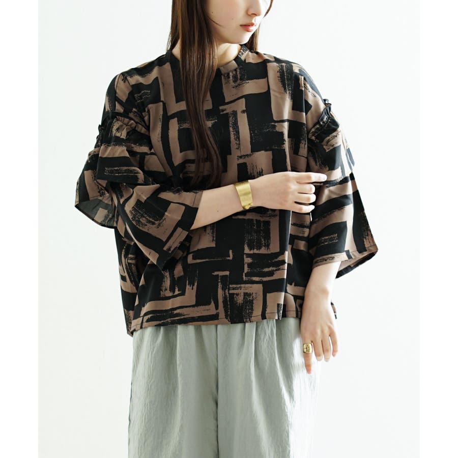 zootie(ズーティー):ニュアンス柄 フリル袖ブラウス